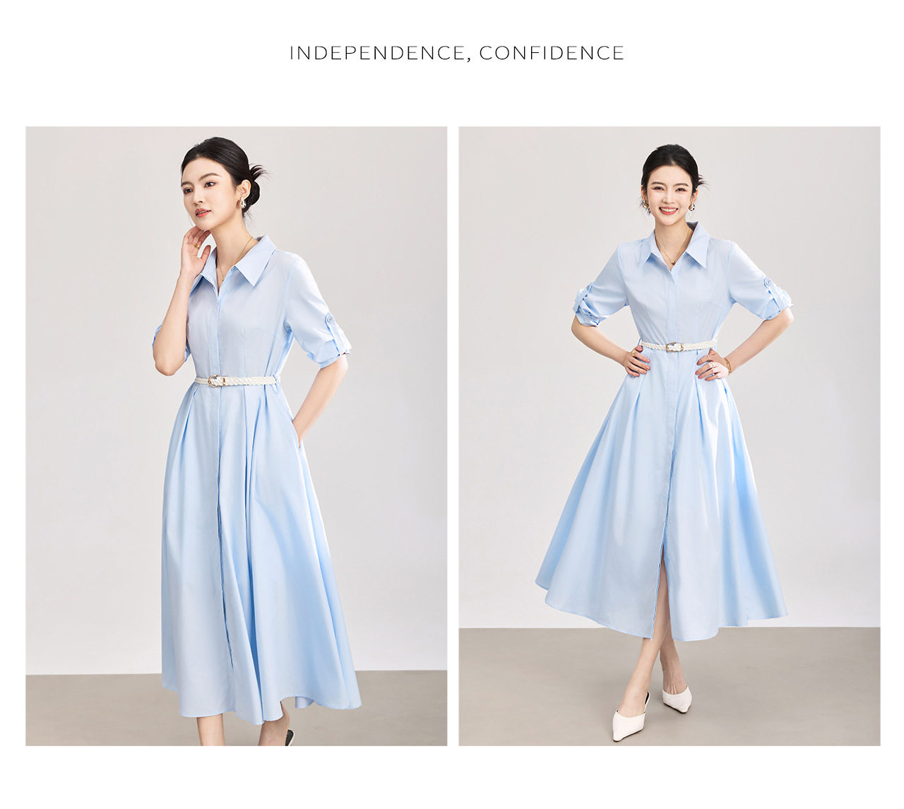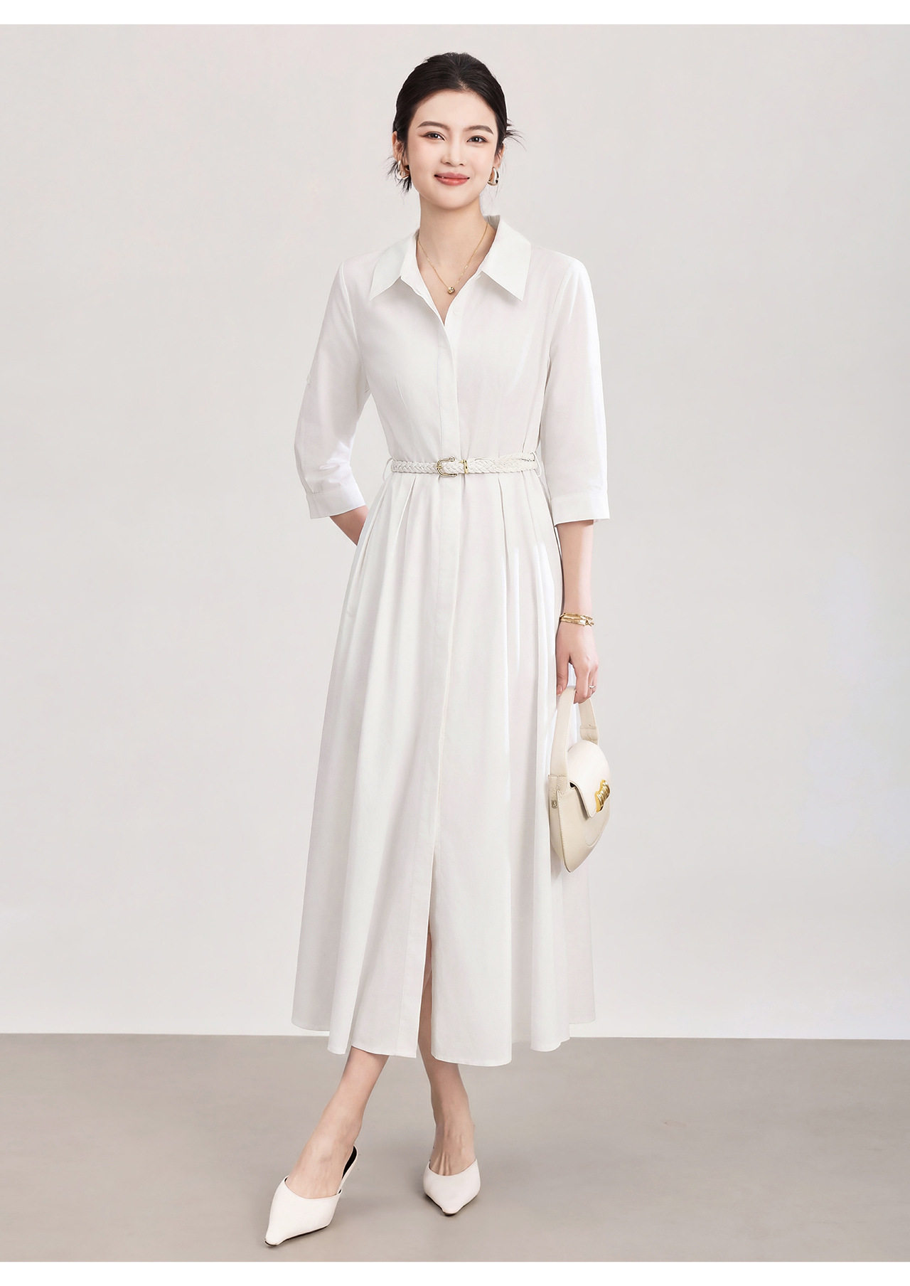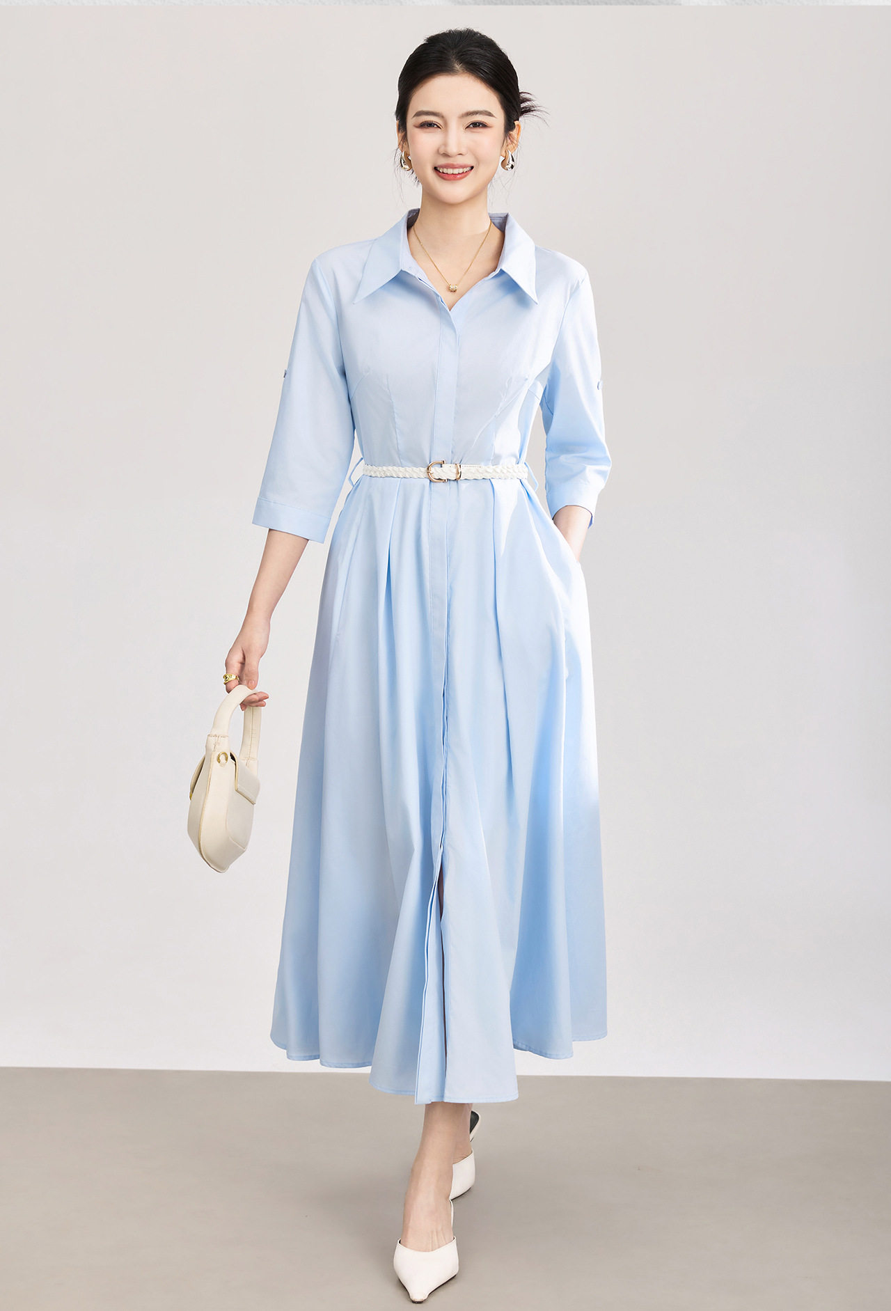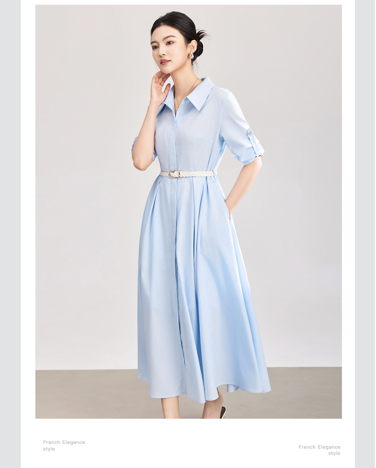 「高货wl」全新升级【铂金会员358/天猫479/差价121】(05644)洛诗琳淡雅气质翻领连衣裙2026春夏通勤天丝棉收腰衬衫裙