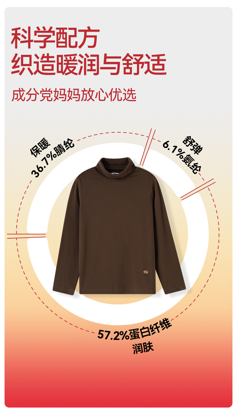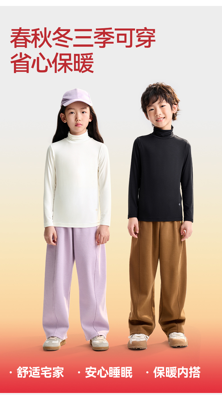 【羊绒蛋白润肤衫/5A抗菌】男女童高翻领长袖针织衫秋季新款安奈儿童装EM531552