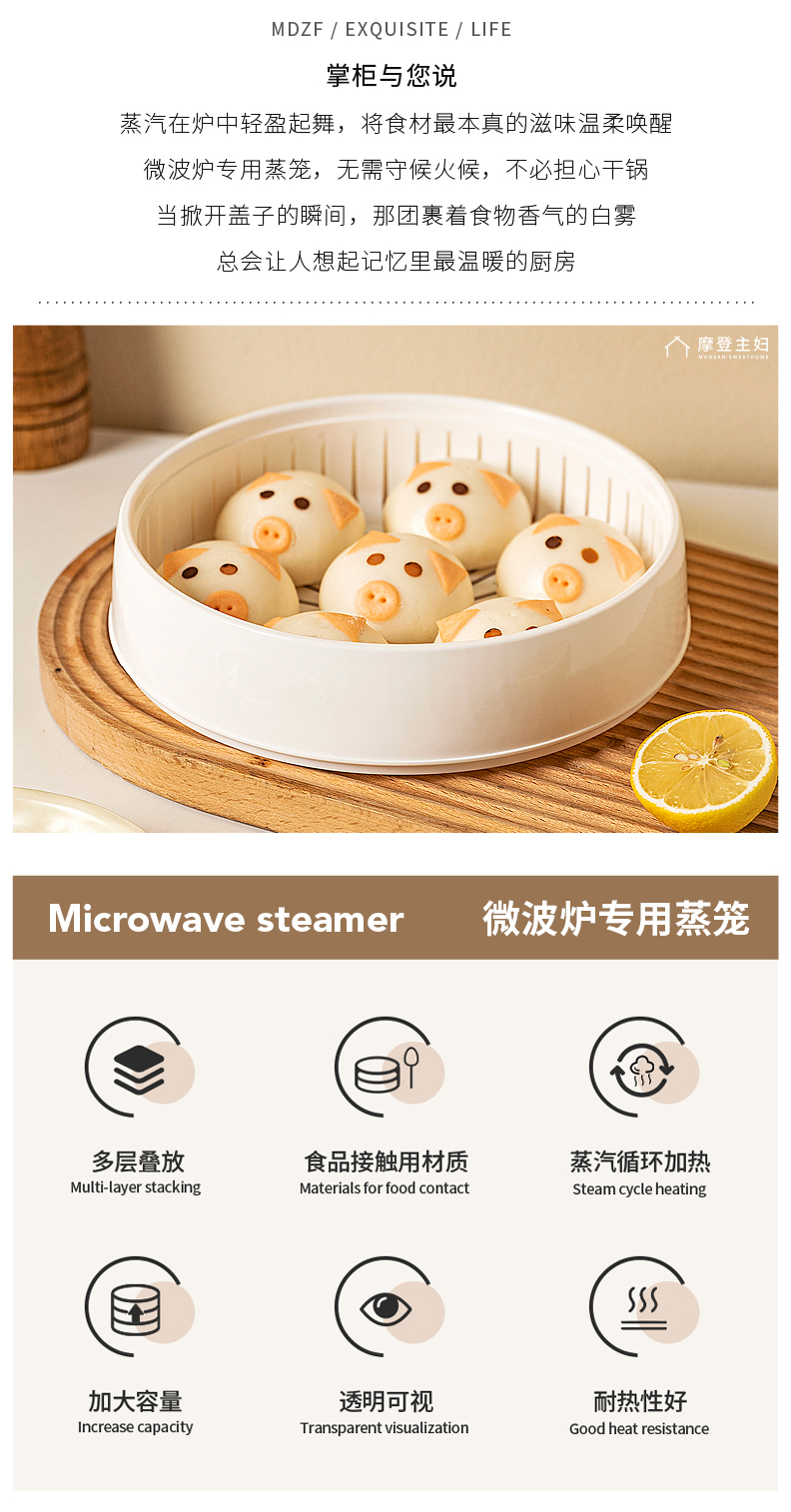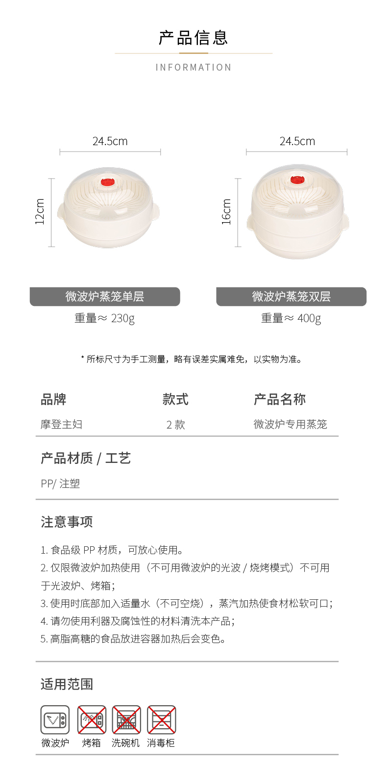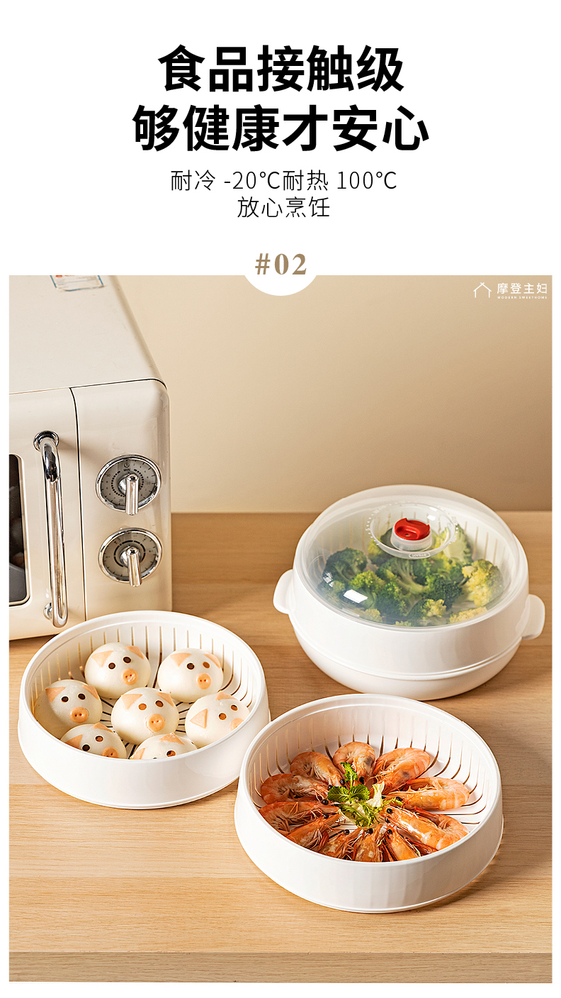 摩登主妇微波炉加热蒸笼蒸盒食品级双层热菜容器蒸米饭专用容器皿
