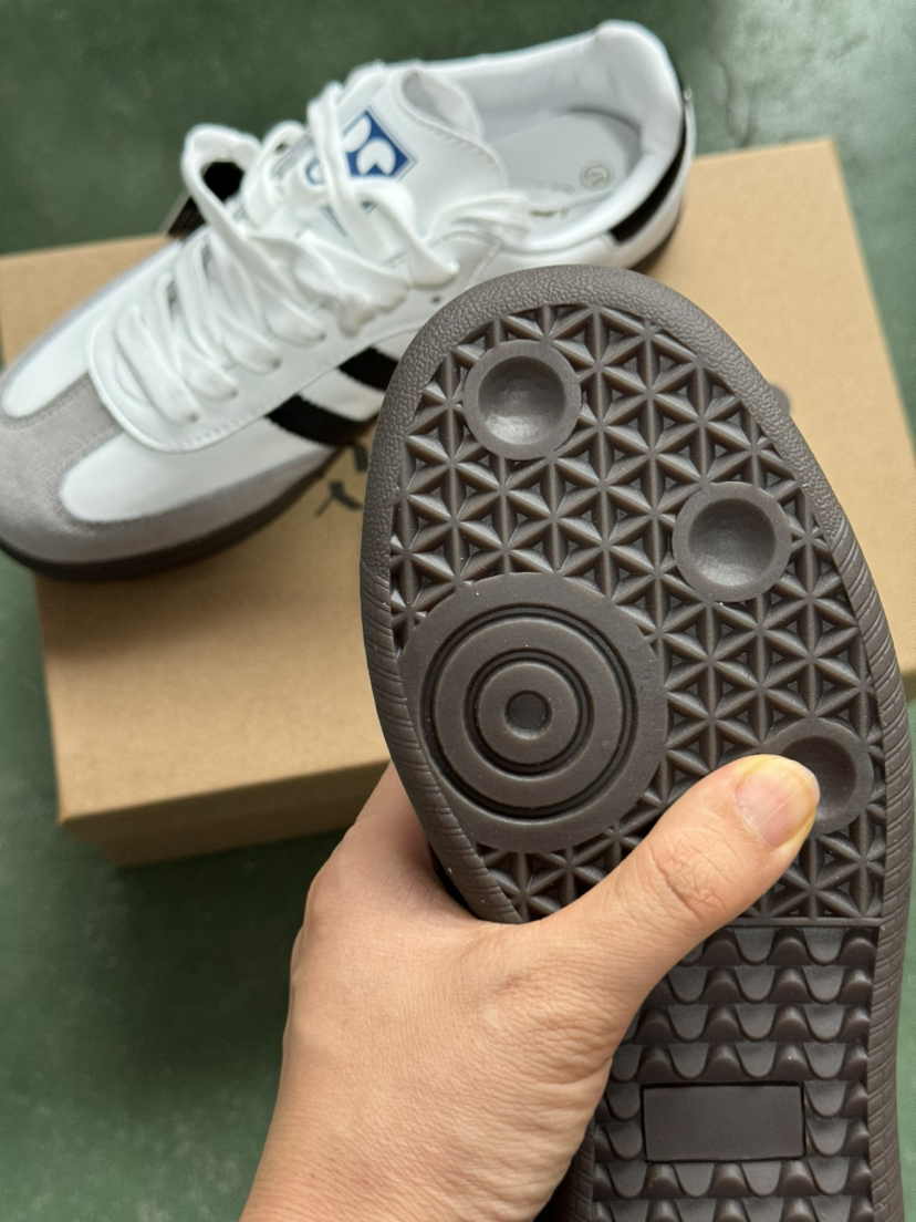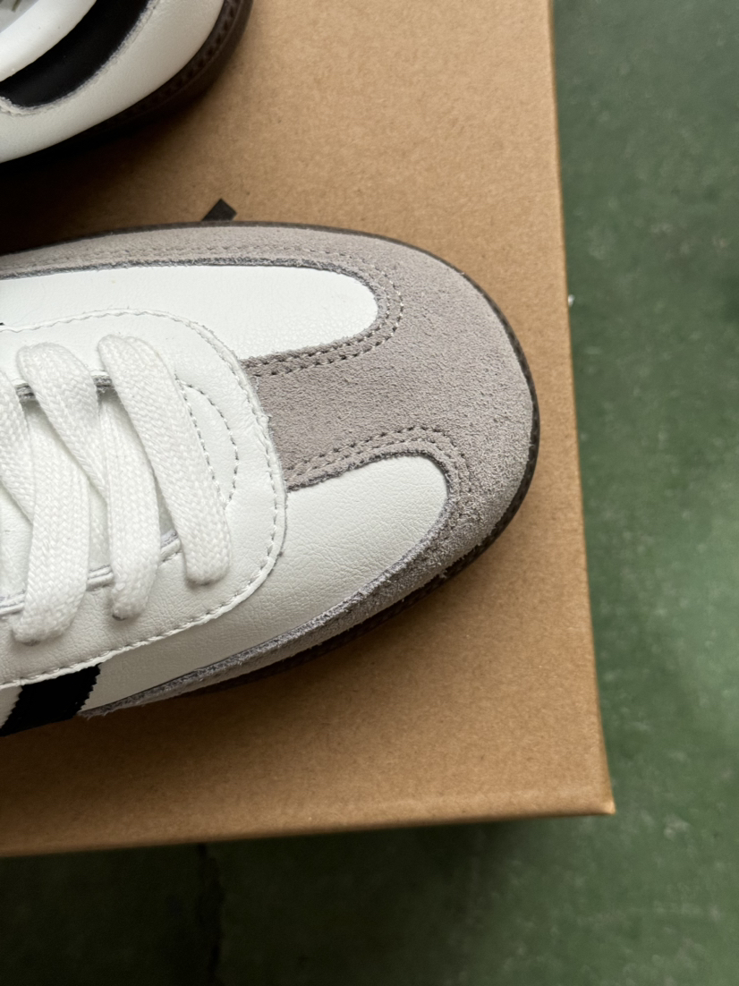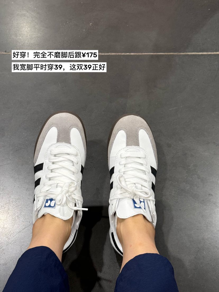 鞋底包边处细纹设计,更为整体造型增加复古质感,百搭白色,裤子裙子一网打尽,逛街、约会、出游、办公室,不同场景不同风格任意切换!这款德训鞋既舒适又能兼具少女感!鞋子和衣服—样也是讲"立挺感"的,鞋子楦型非常的赞,整个鞋型给人圆润而不钝的感觉,线条流畅,将脚型修饰得很秀气,上脚搭配衣服很好看,点睛之笔~经典耐看,闭眼入哦