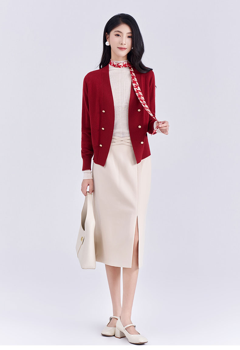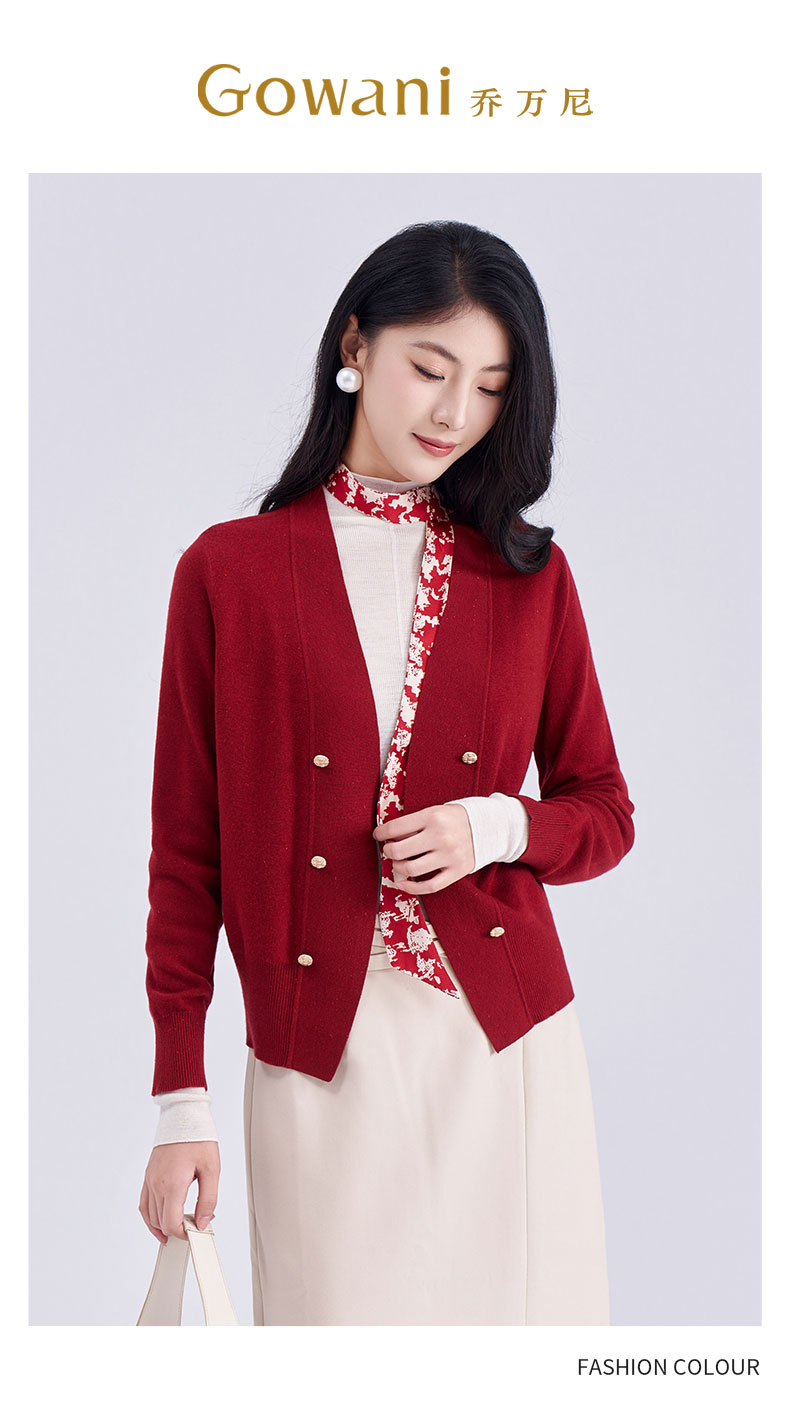 乔万尼2025新品复古氛围羊毛V领设计开衫针织衫ED4M815