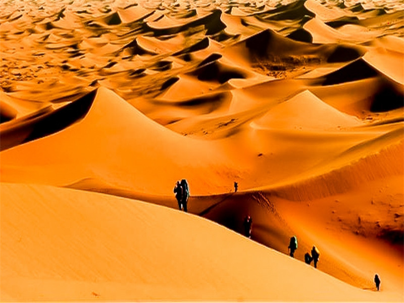 今天是景色最美的一天,高耸的沙丘,蔚蓝的湖泊,曼妙的沙漠曲线都在你的脚下,全程大约27公里,晚上18:00之前可抵达太阳湖营地。