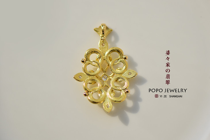 用两种不同的黄金工艺打造出这款吊坠。