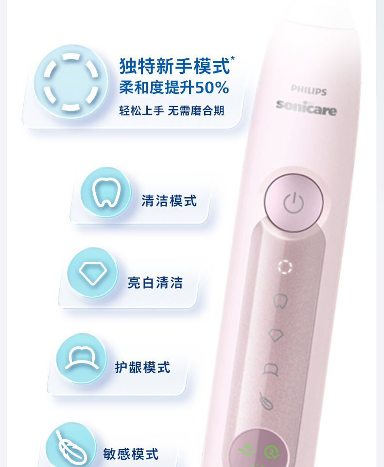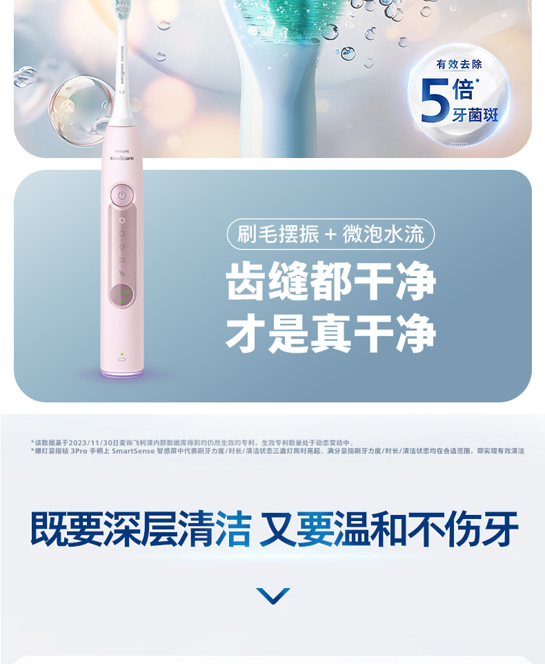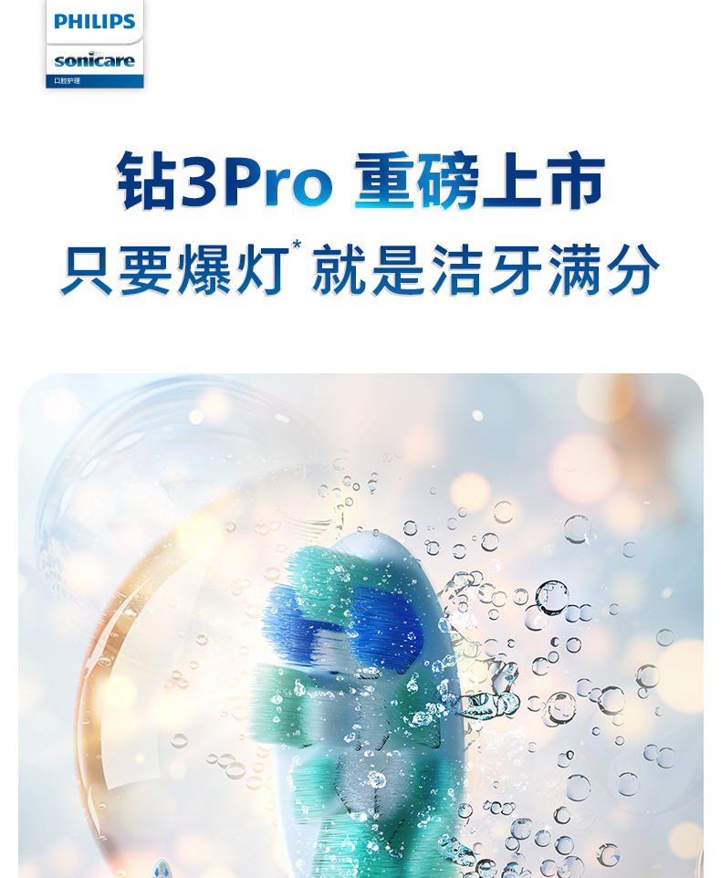 PHILIPS飞利浦钻石3系Pro系列成人声波电动牙刷(HX5262)