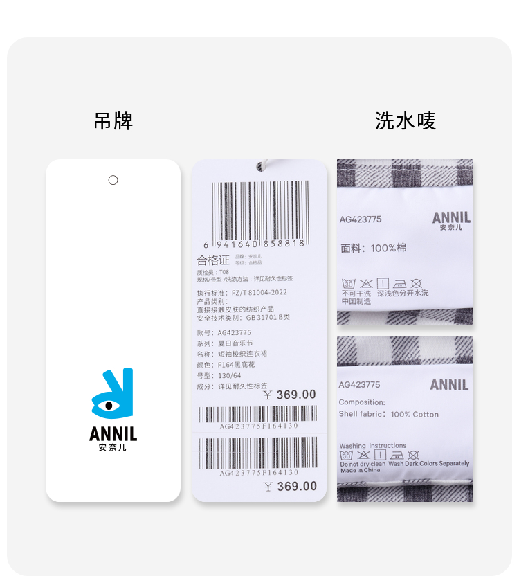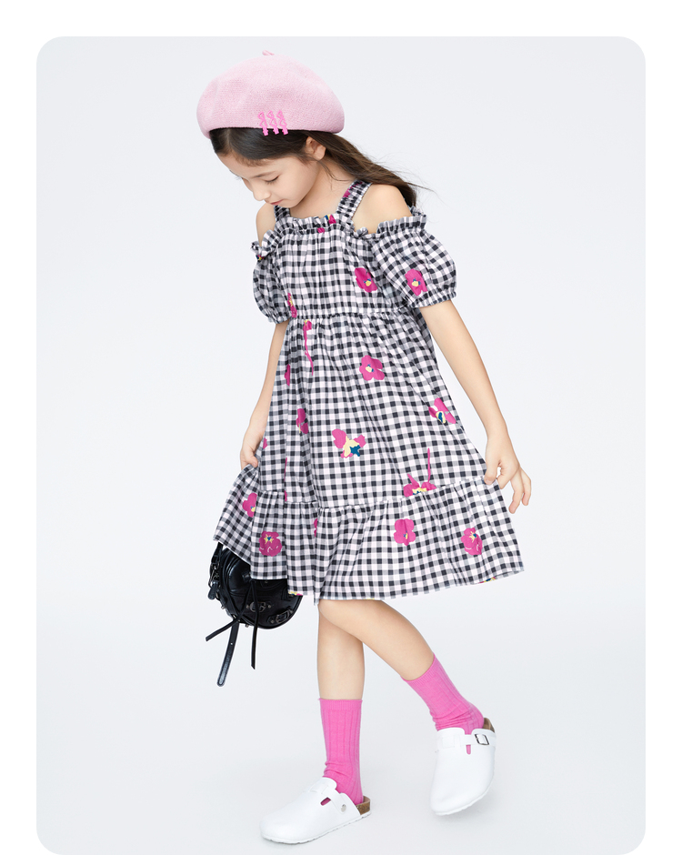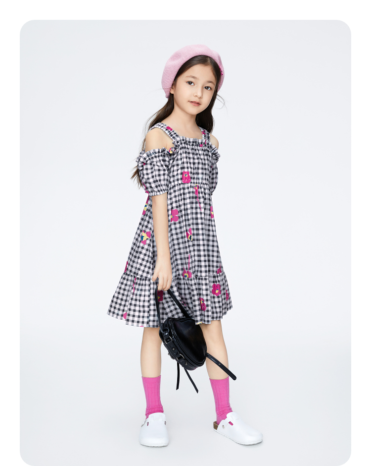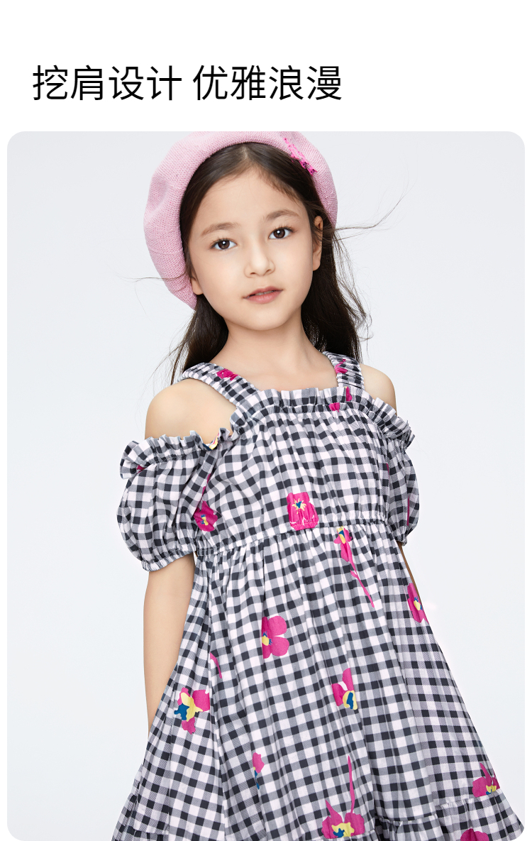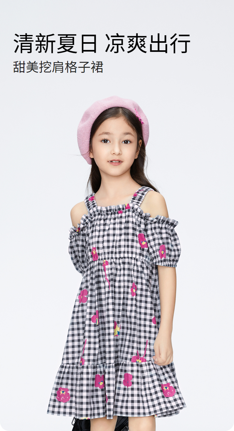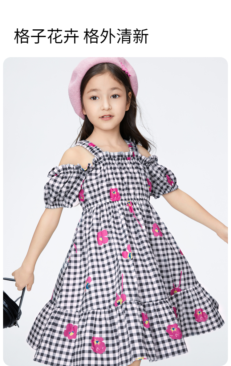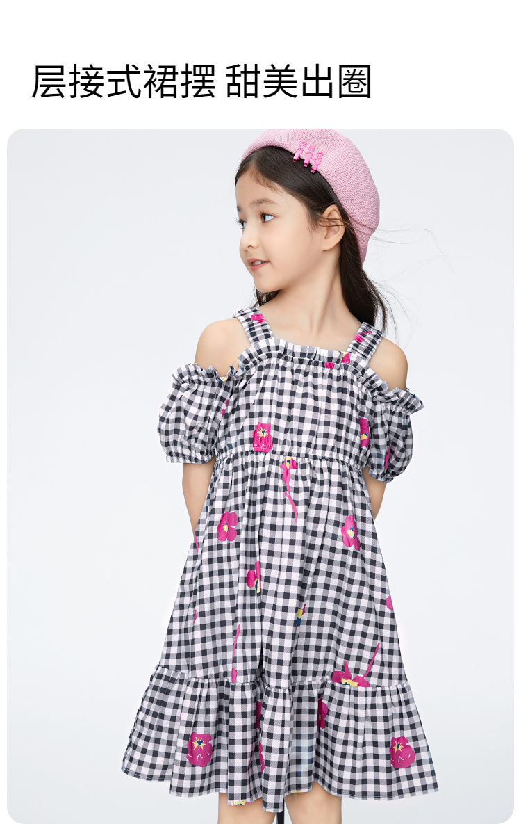 女童纯棉格子裙短袖连衣裙新款安奈儿童装实体店同款AG423775