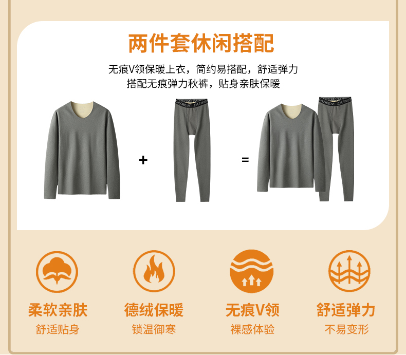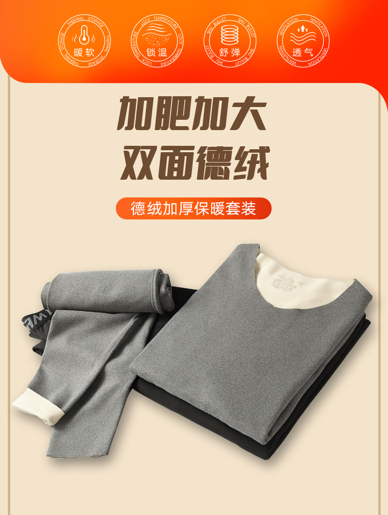 【新款DSF】大依优型大码男装德绒保暖套装内衣弹力加绒舒适保暖秋衣秋裤