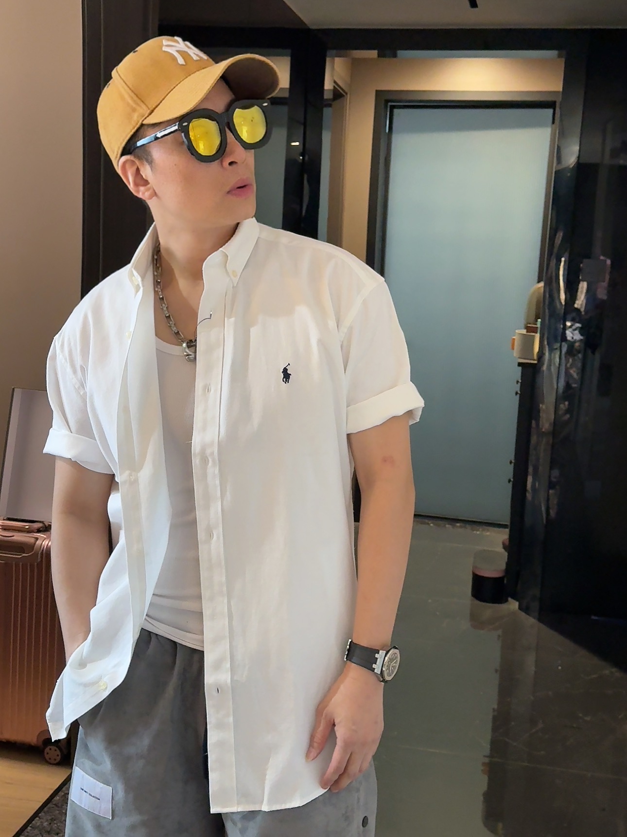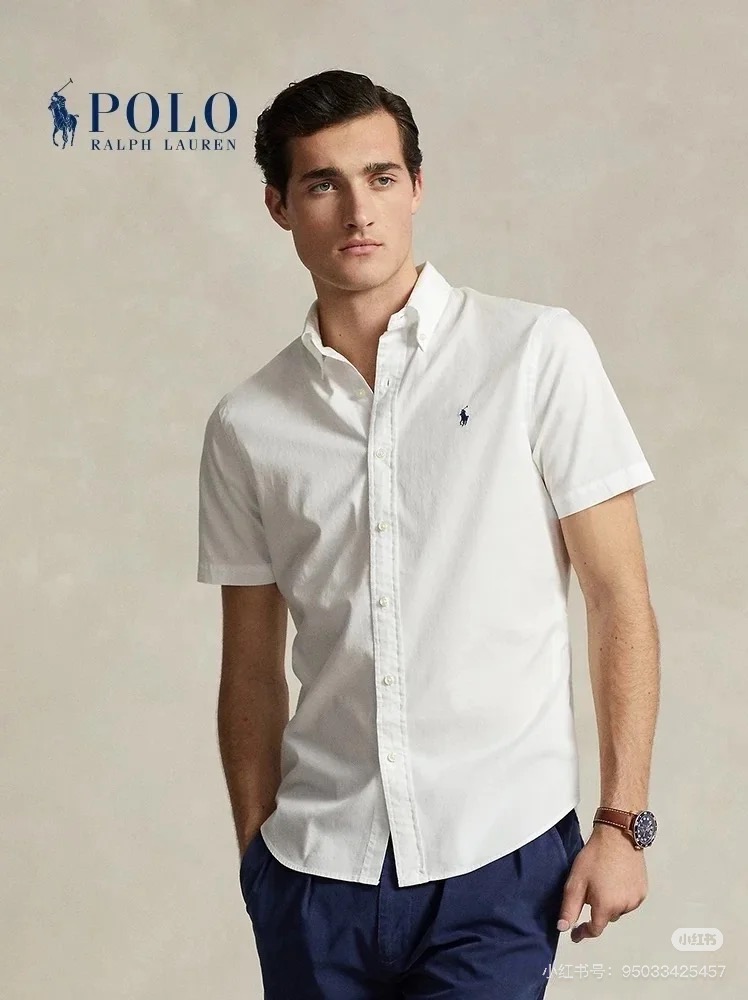 继续 数量不多 拼手速!这款和上一款面料不同⚠️ 加厚牛精棉面料。质感清爽有型吸汗!拉夫的经典面料系列! Ralph Lauren/2025 拉夫劳伦男士经典衬衫短袖纯色刺绣 牛津纺修身休闲夏季衬衣!