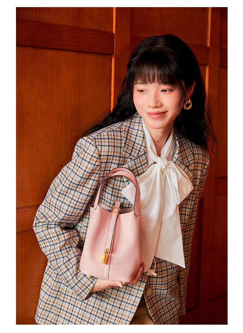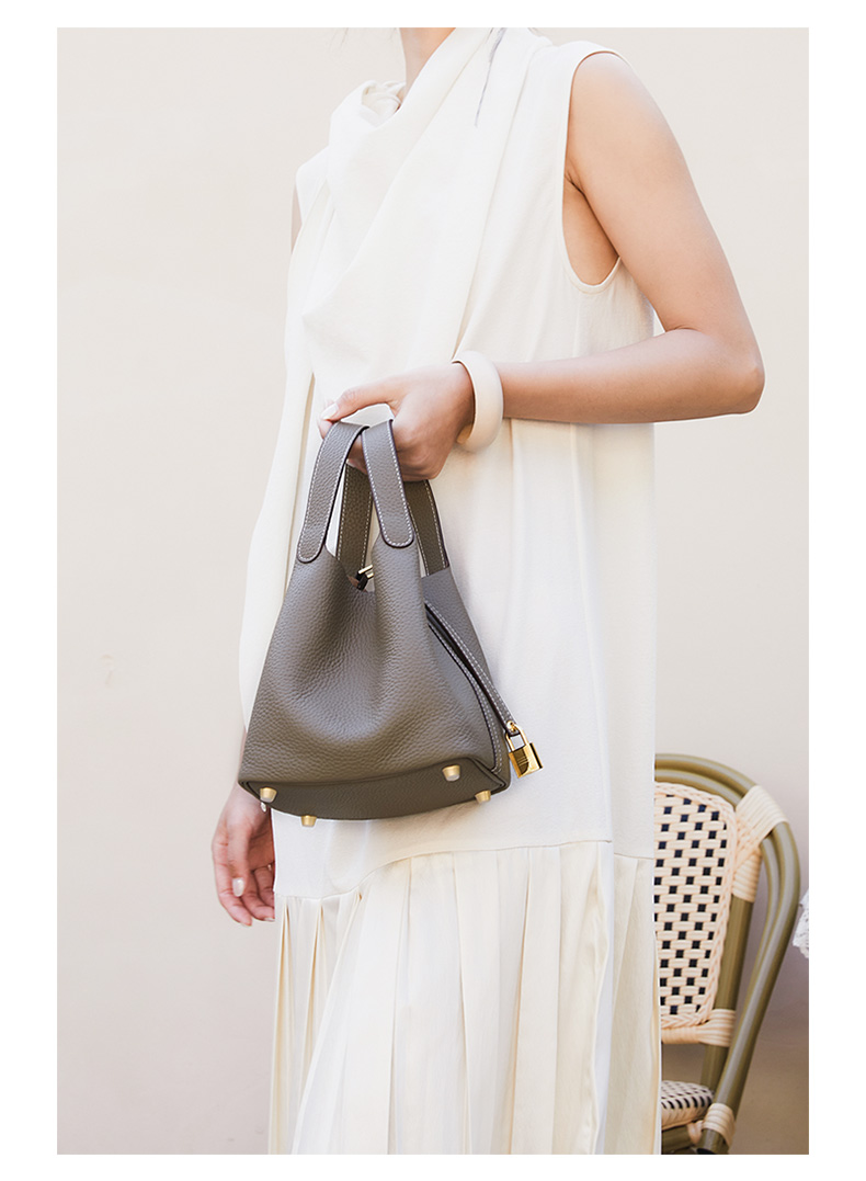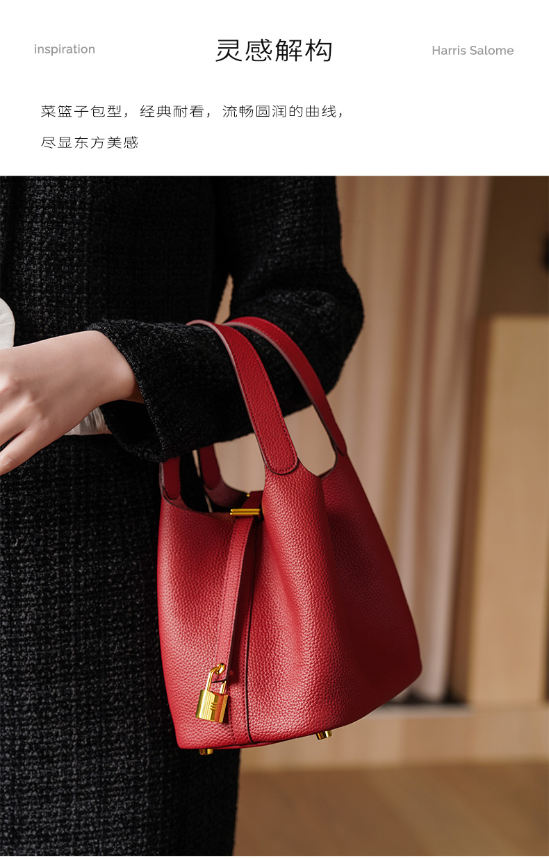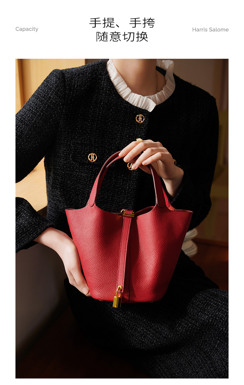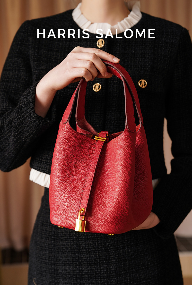 HARRIS SALOME金扣莱蓝子大容量通勤包牛皮手提手挎包水桶包