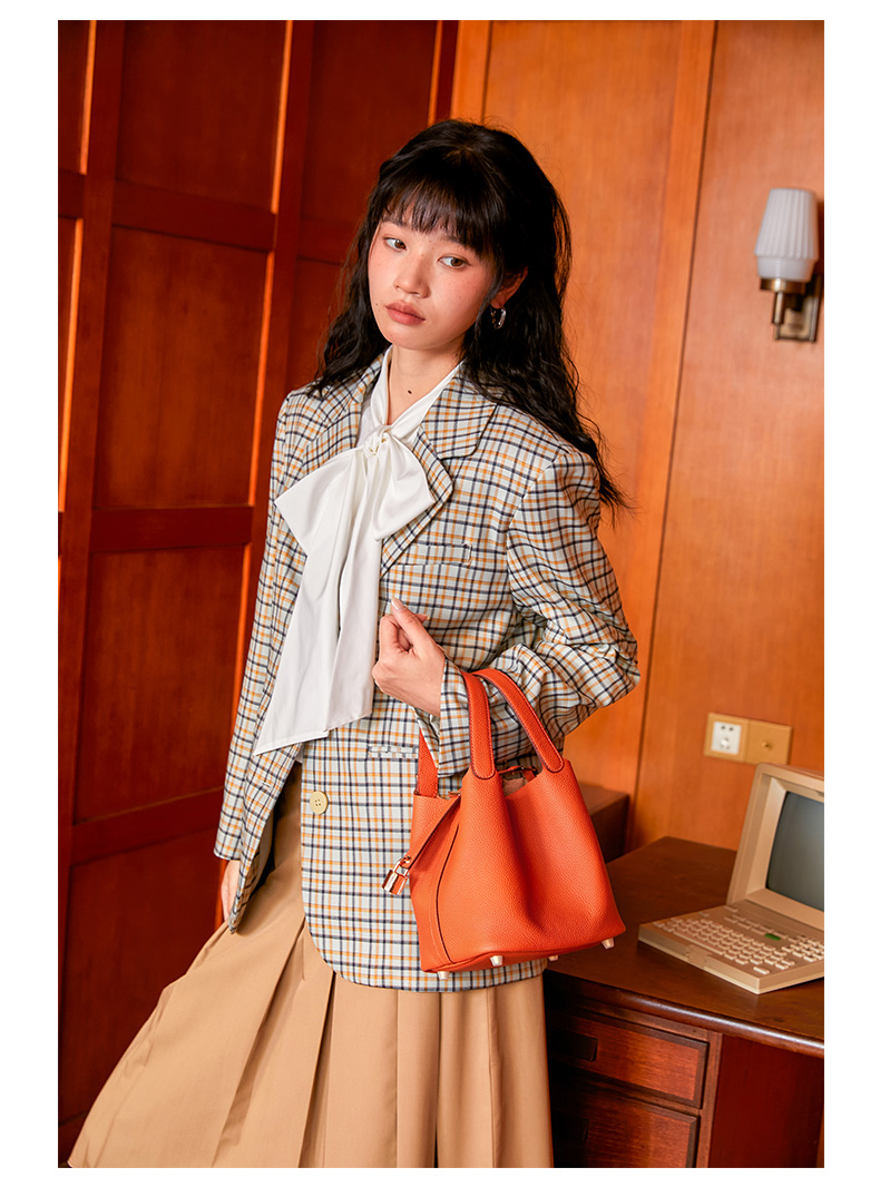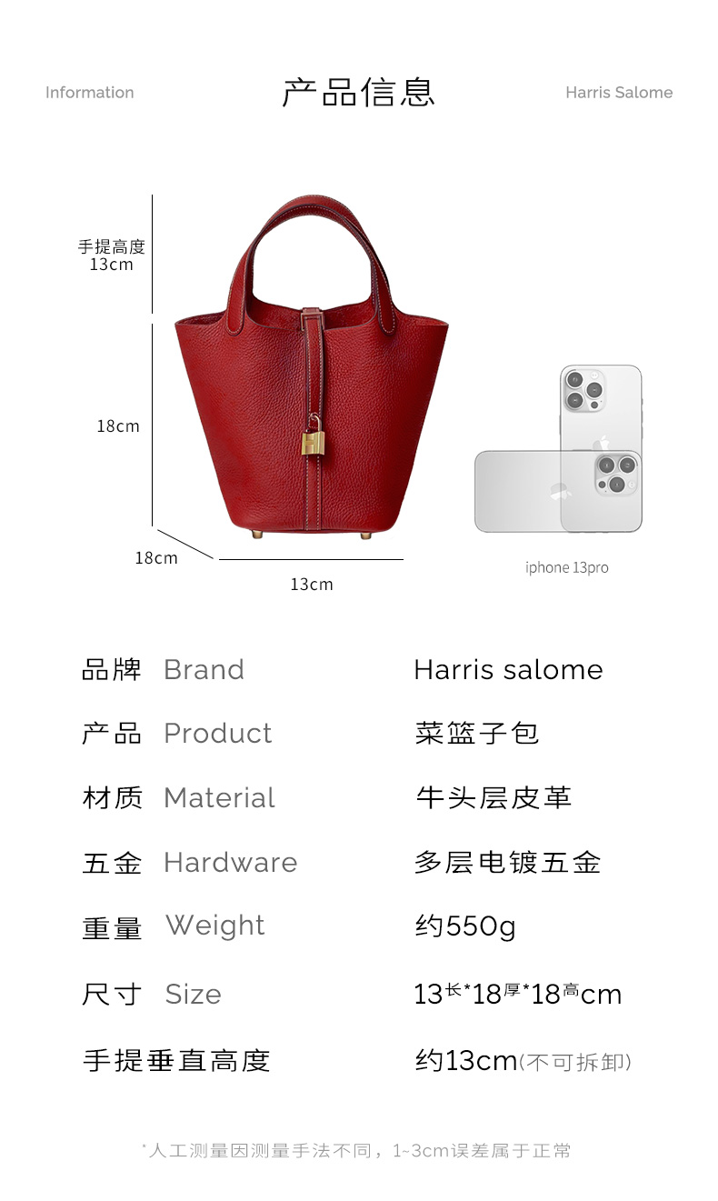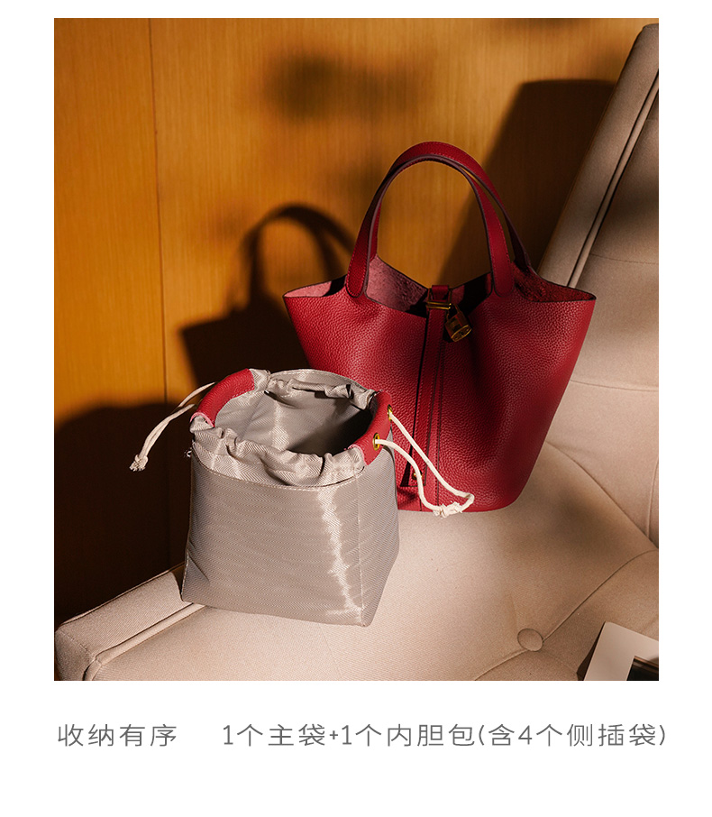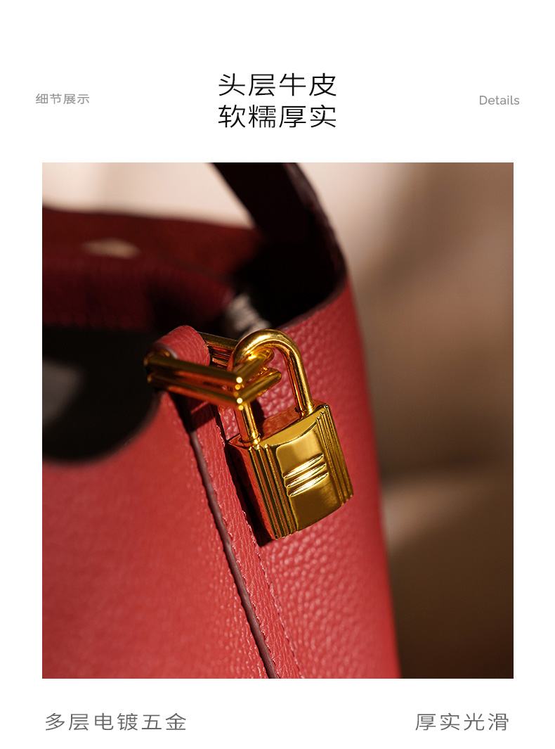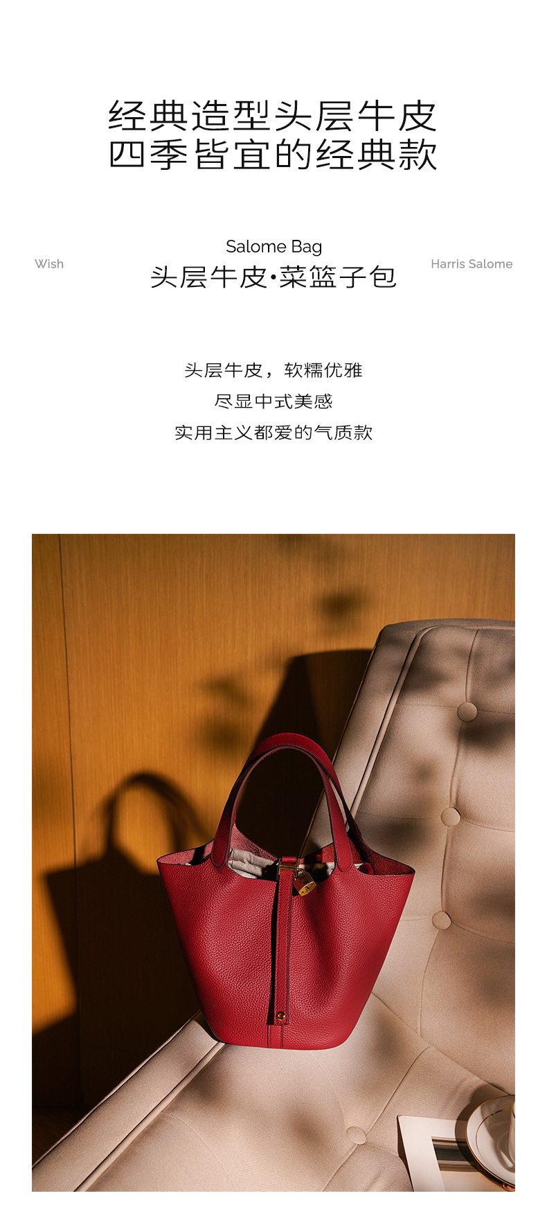HARRIS SALOME金扣莱蓝子大容量通勤包牛皮手提手挎包水桶包