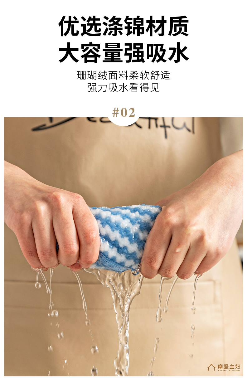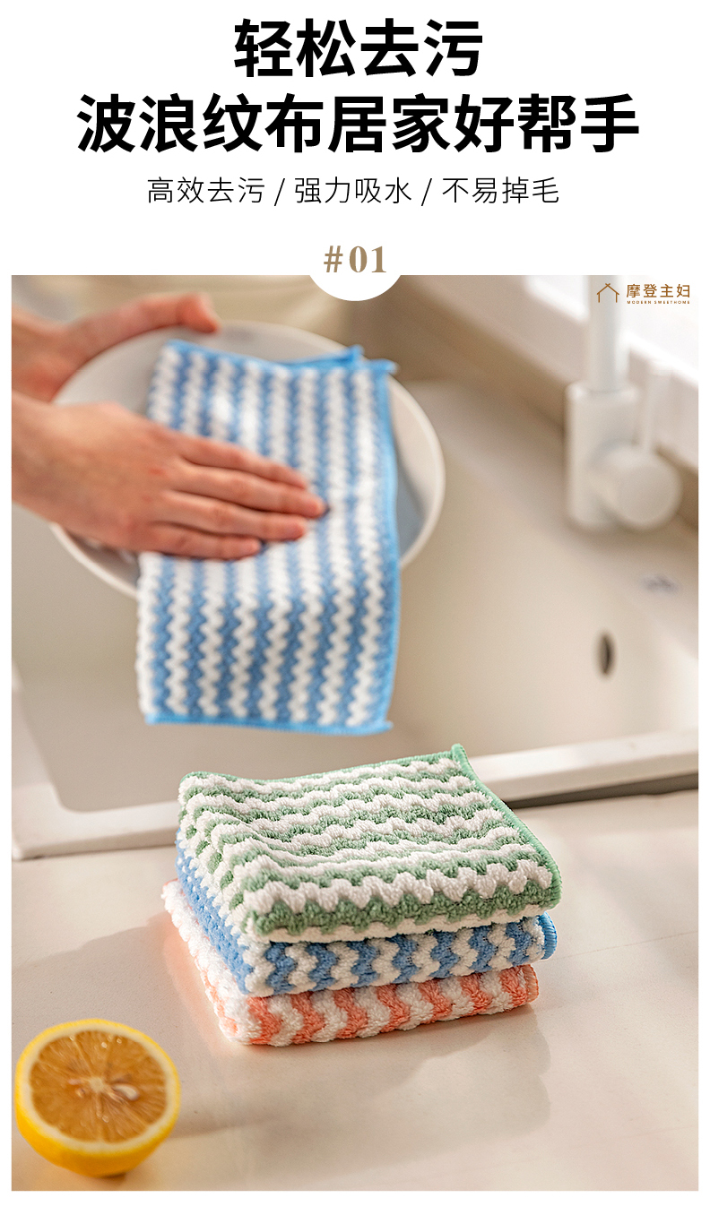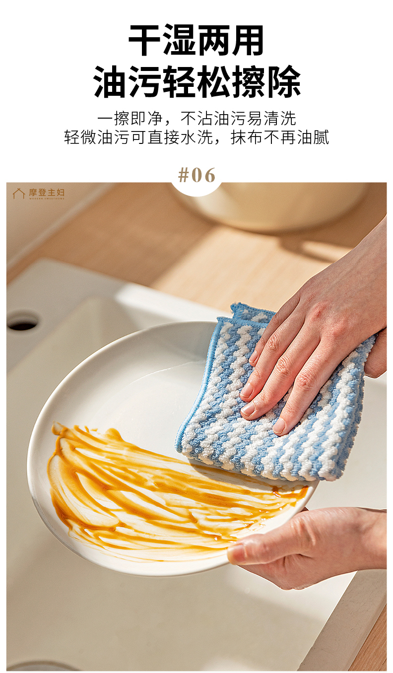 摩登主妇抹布厨房专用不沾油吸水不掉毛擦桌子易清洗珊瑚绒洗碗布