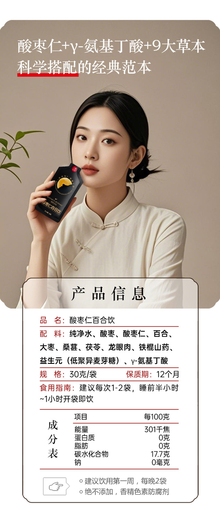【小碗良食官方活动】酸枣仁百合饮 野生酸枣仁+γ-氨基丁酸 无添加草本安睡植物饮 开袋即饮30g*10袋