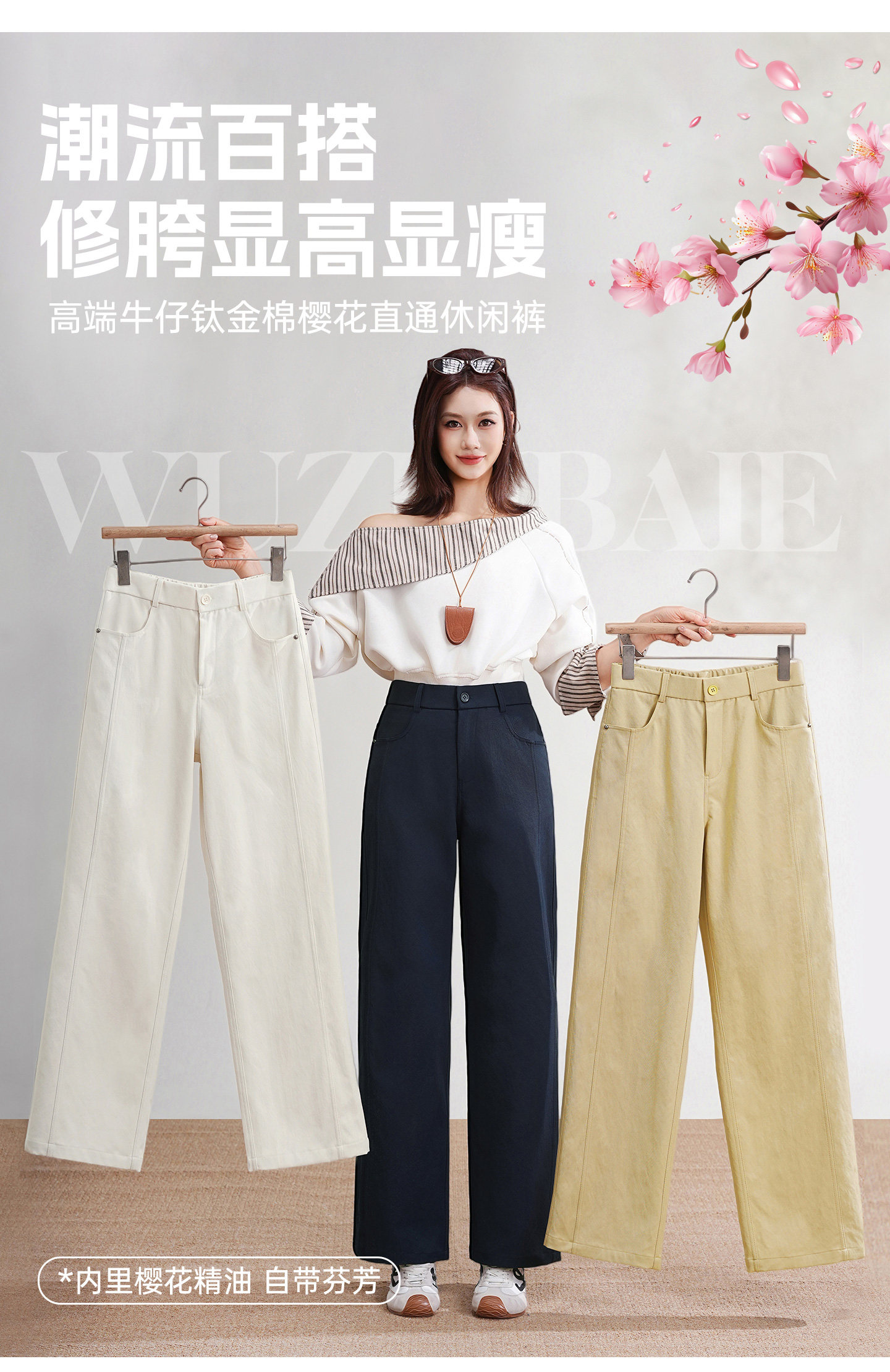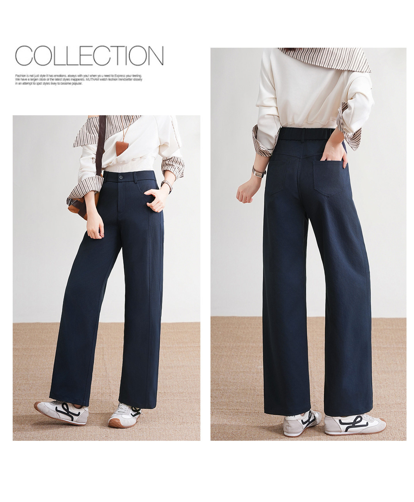 2. 版型升级:6片拼接剪裁,精准修饰腰腹赘肉、假胯宽、大腿粗,比普通直筒裤更显瘦、更贴合,解决“直筒裤显臃肿”的痛点。