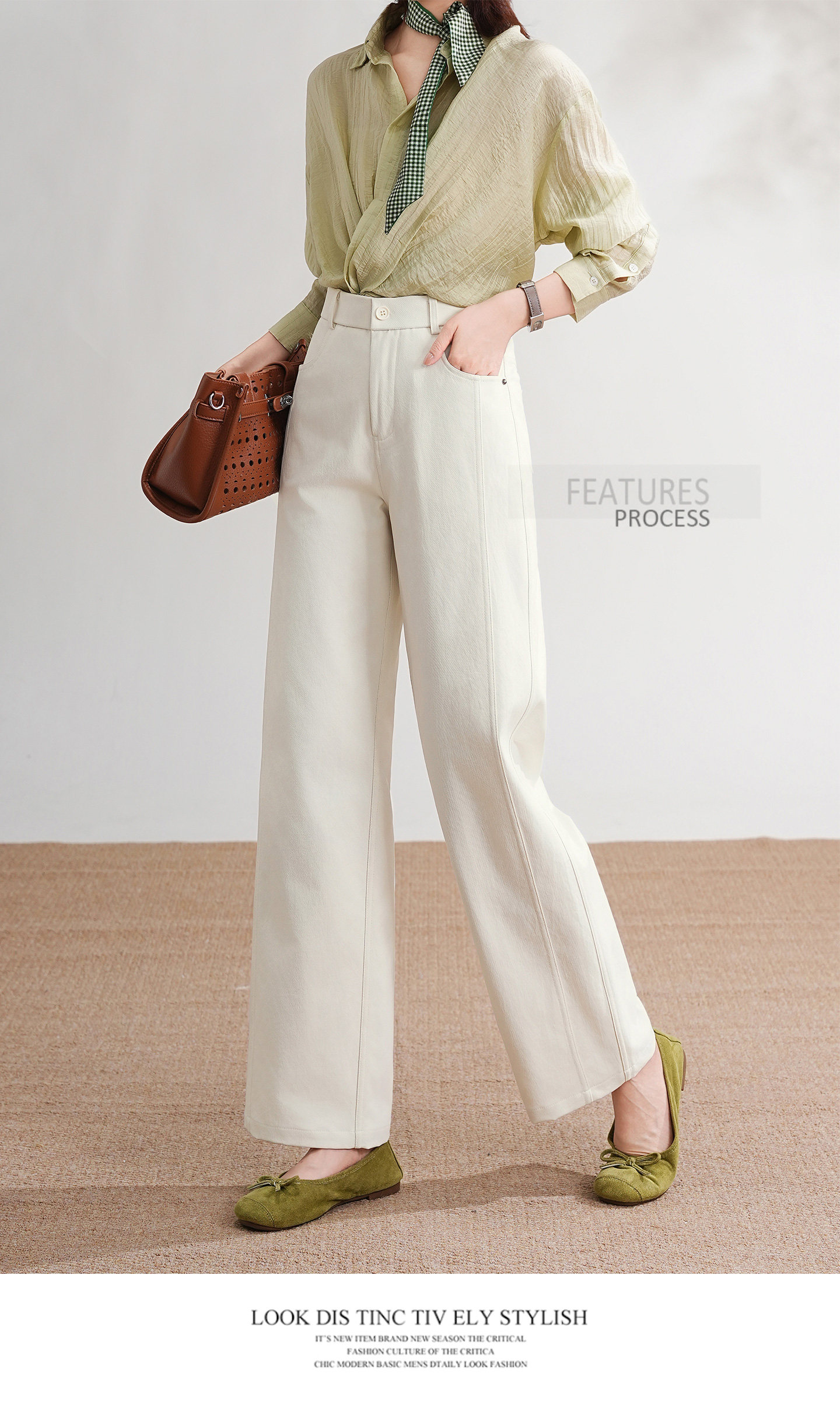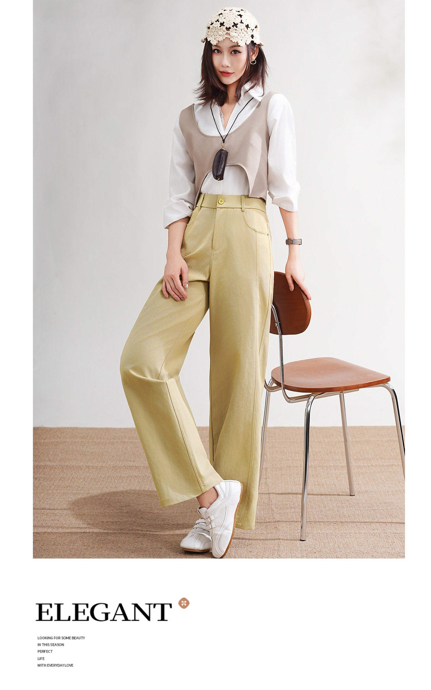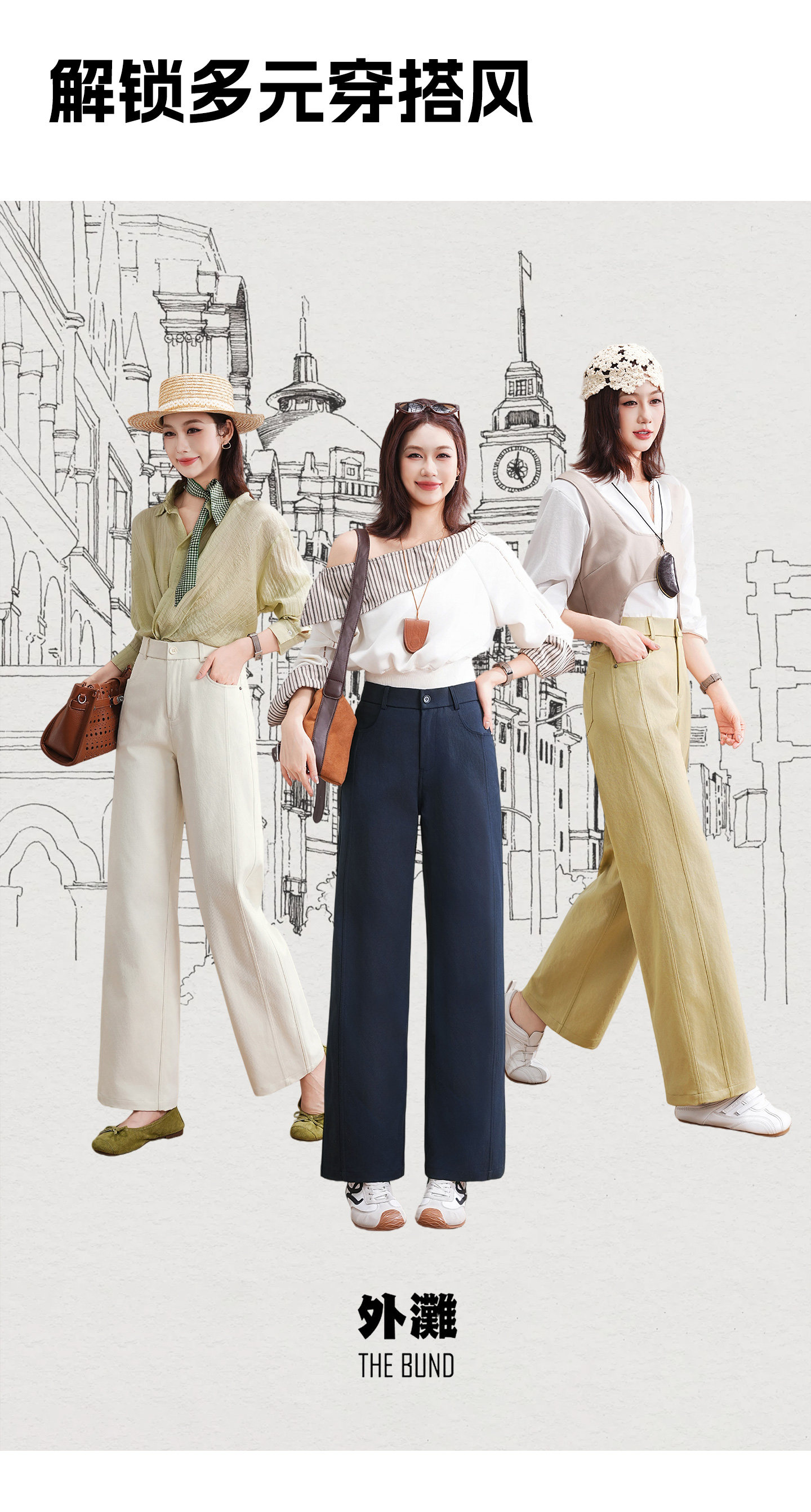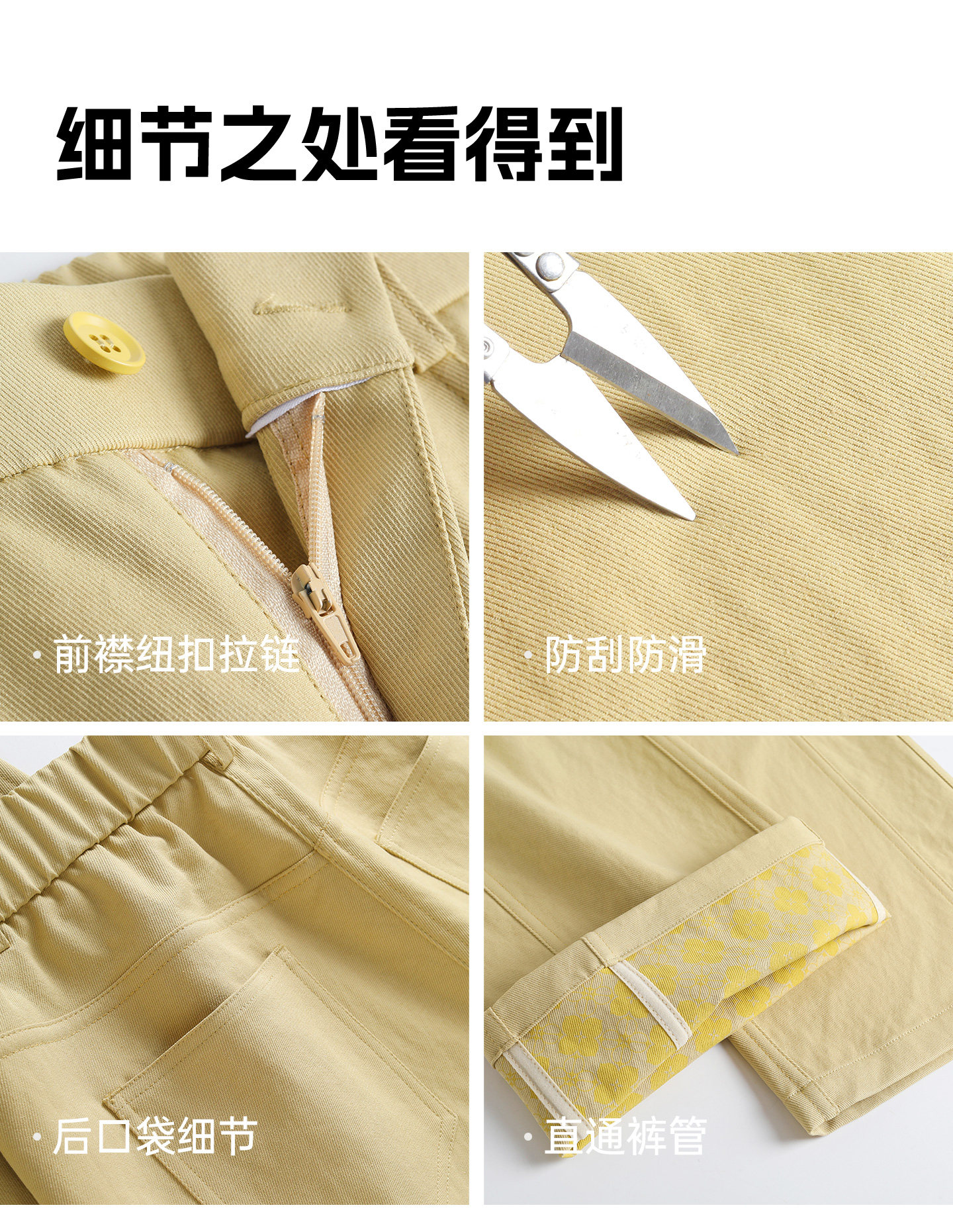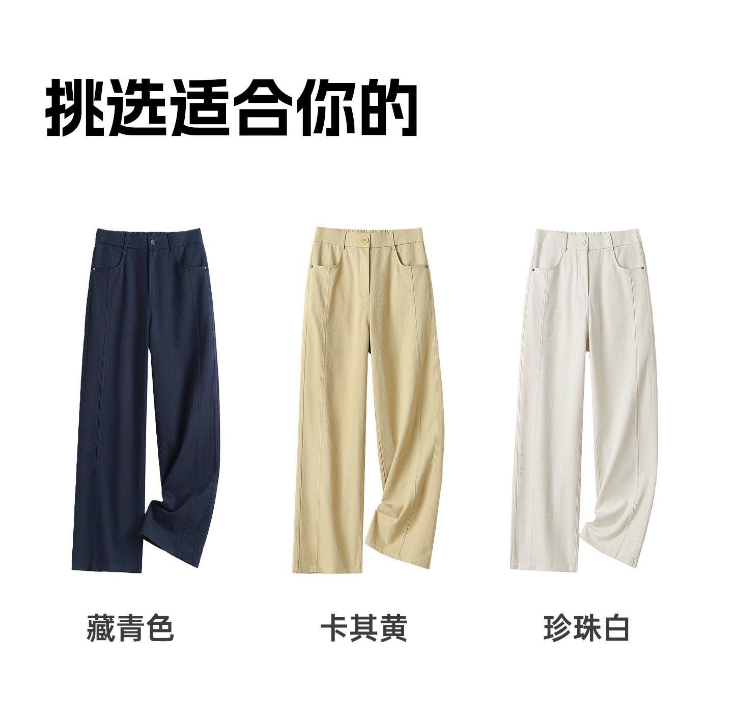 4. 细节质感:6片拼接线条利落,简约不单调;珍珠白/藏青/卡其黄三色可选,耐脏好搭,基础款经久不过时。