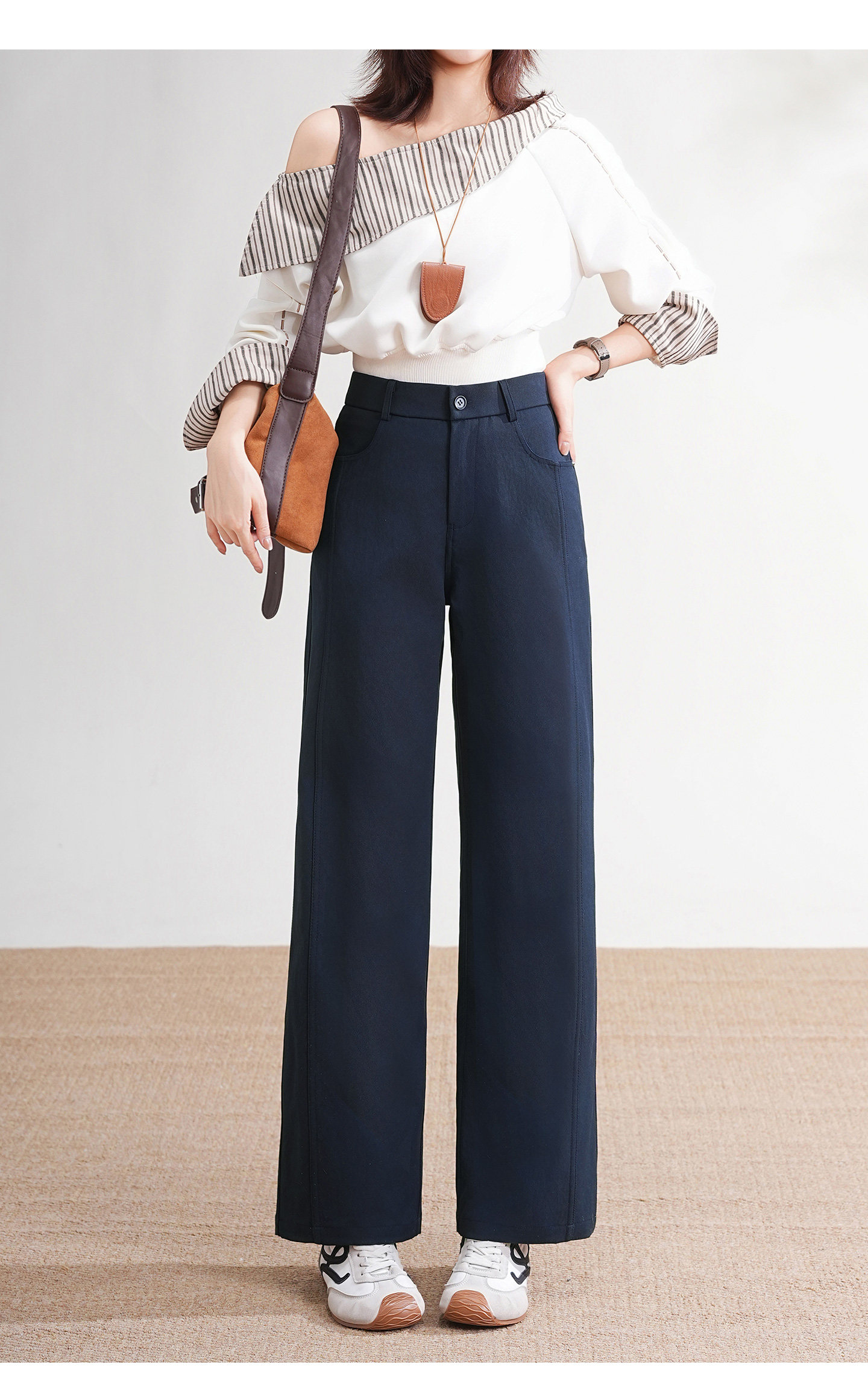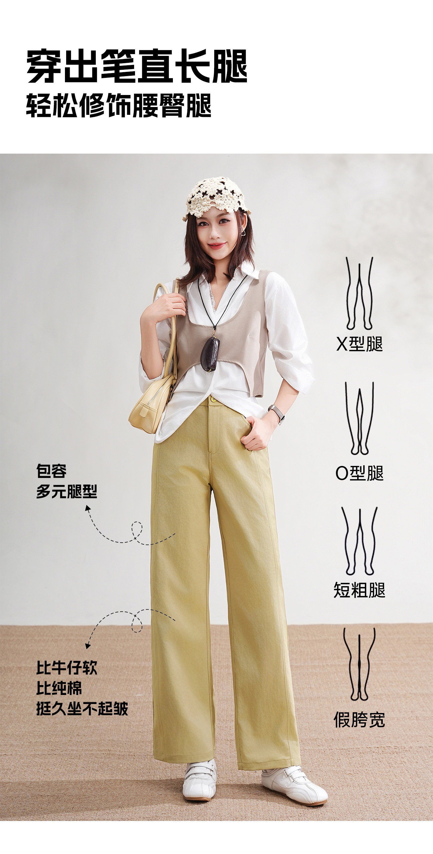 • 直筒裤管:从腰腹到裤脚垂直利落,不贴腿、不压身,对腿型包容度高;