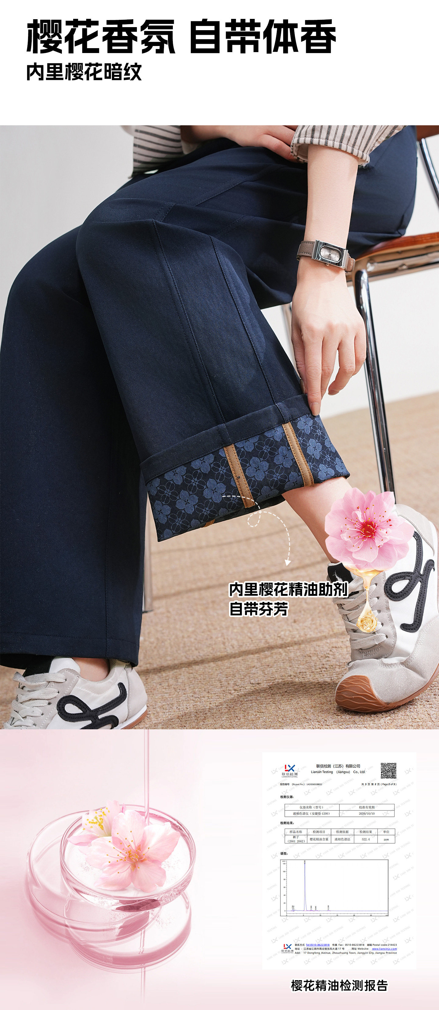2• 细节控友好:无痕包边的工艺细节+樱花暗纹的设计细节,满足对穿搭质感、细节有要求的人群,提升整体穿搭格调。