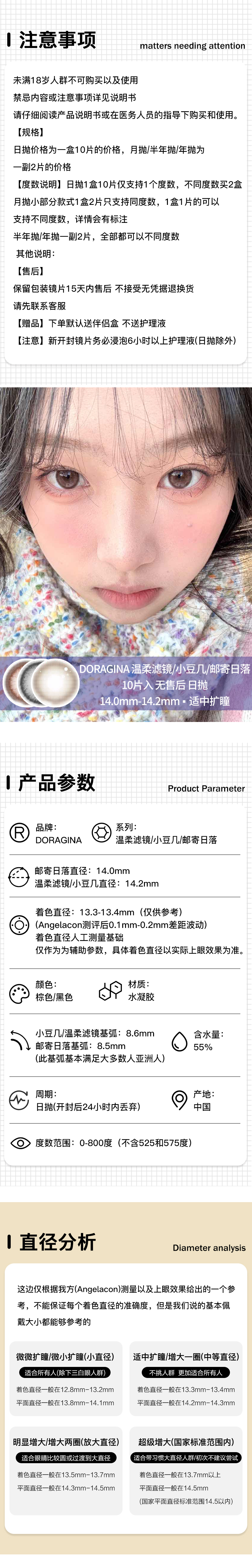 DORAGINA / 温柔滤镜/小豆几/邮寄日落 / 美瞳日抛 / 10片入 / 无售后 / 14.0mm-14.2mm / 适中扩瞳