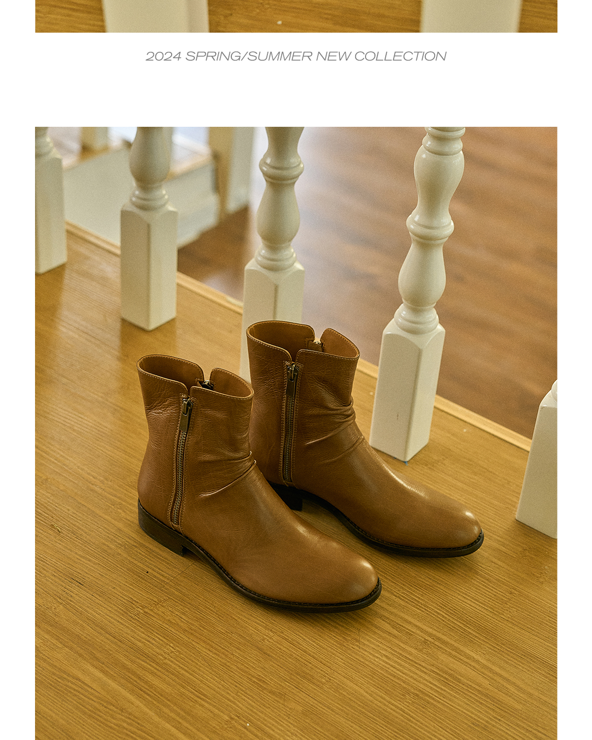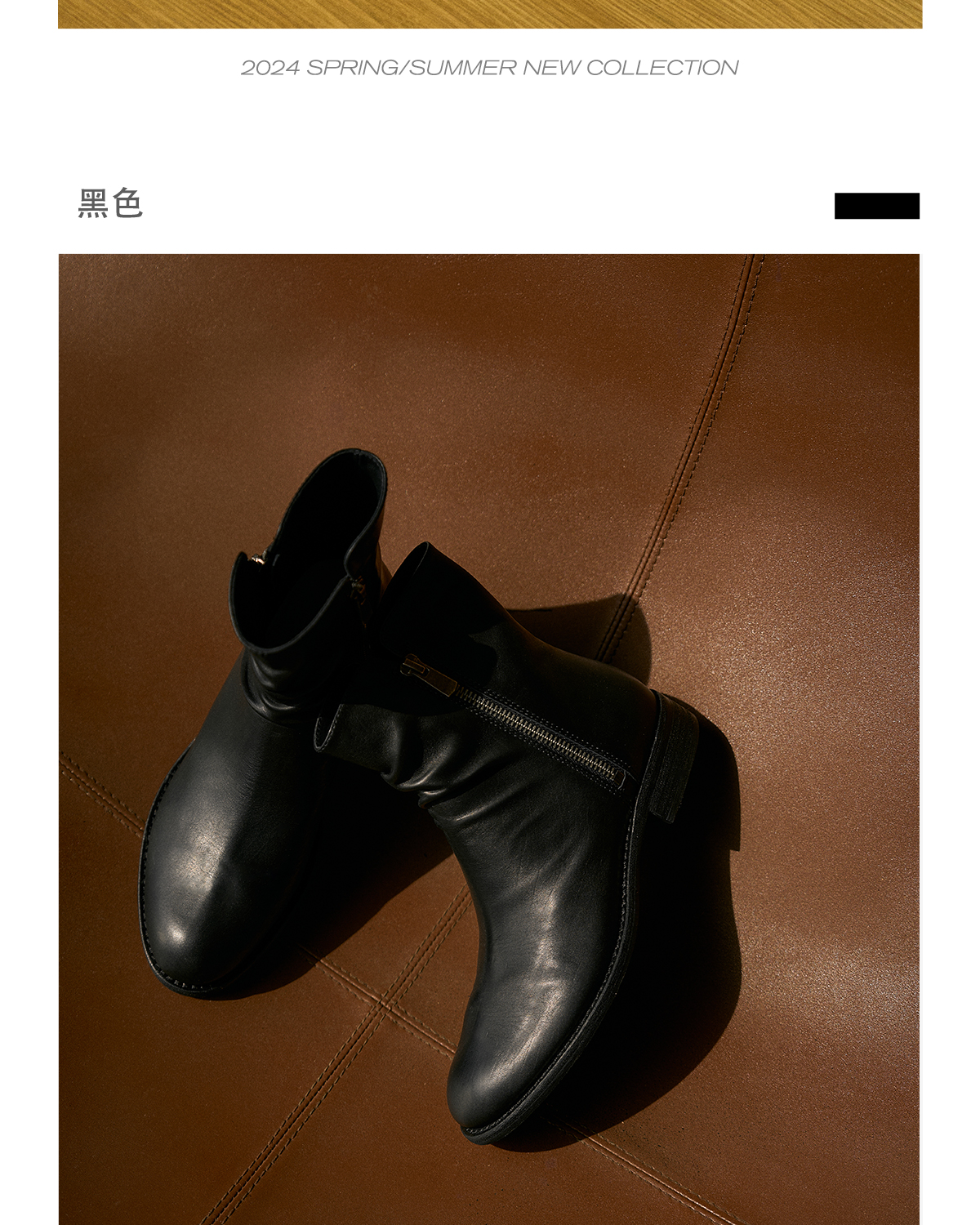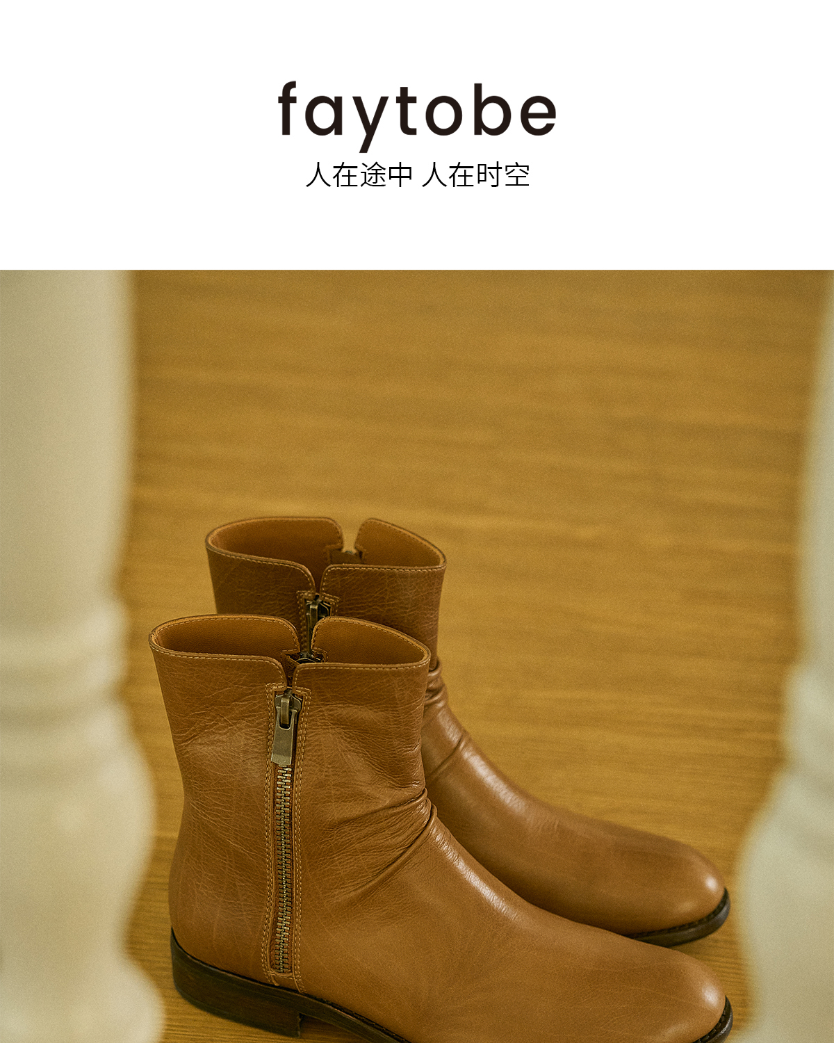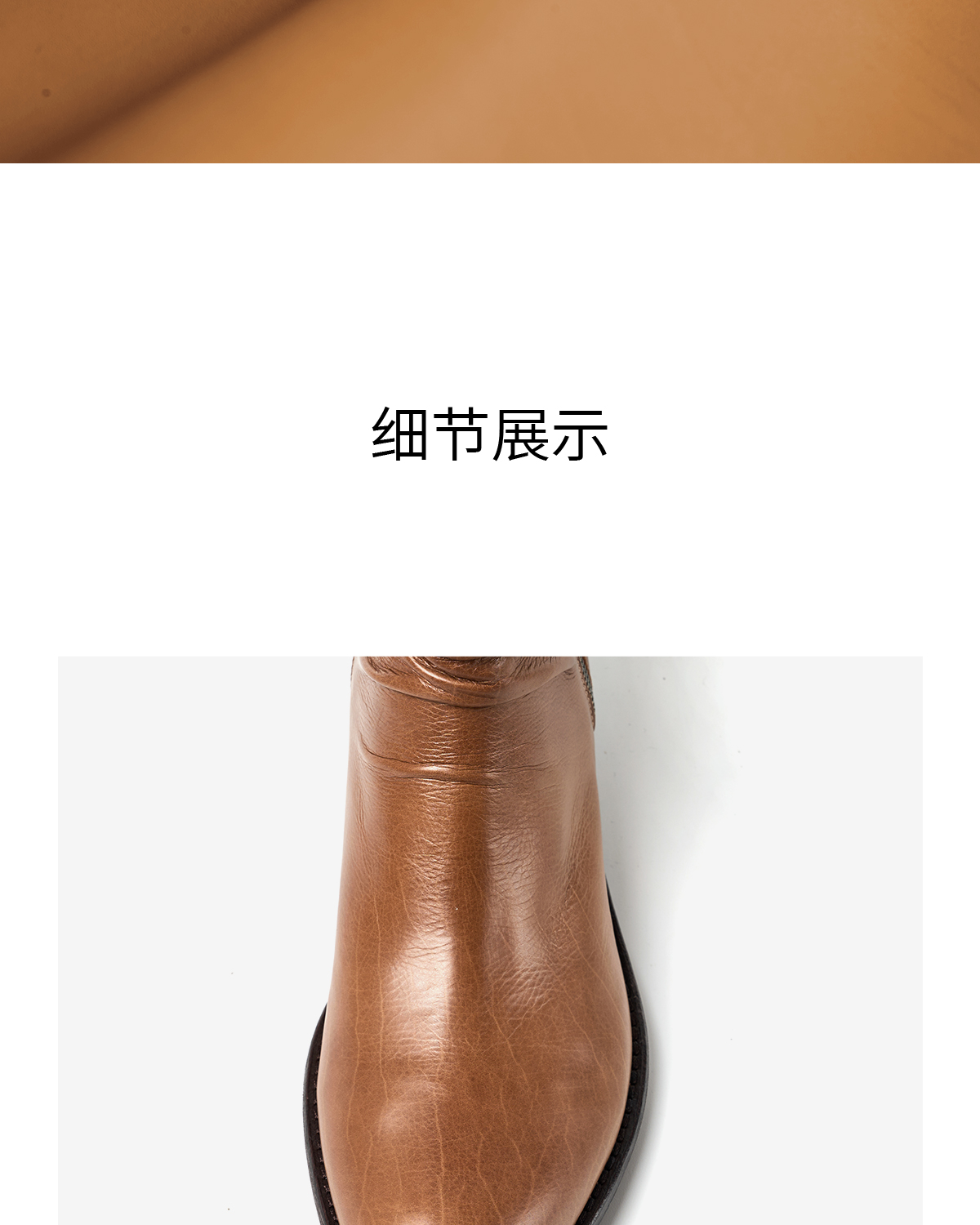faytobe英伦风马丁靴秋时尚休闲复古胎牛皮褶皱粗跟短靴女士