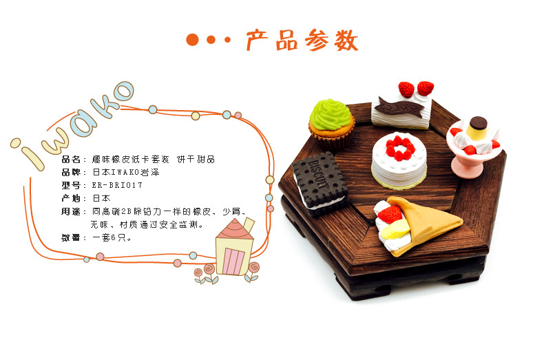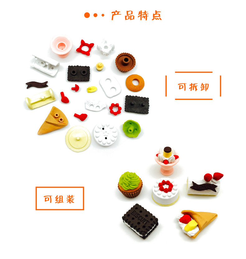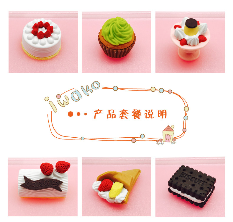 IWAKO学生甜品系列橡皮擦 日本进口趣味拼装仿真造型多款式法式甜品饼干儿童手账文具礼物文创