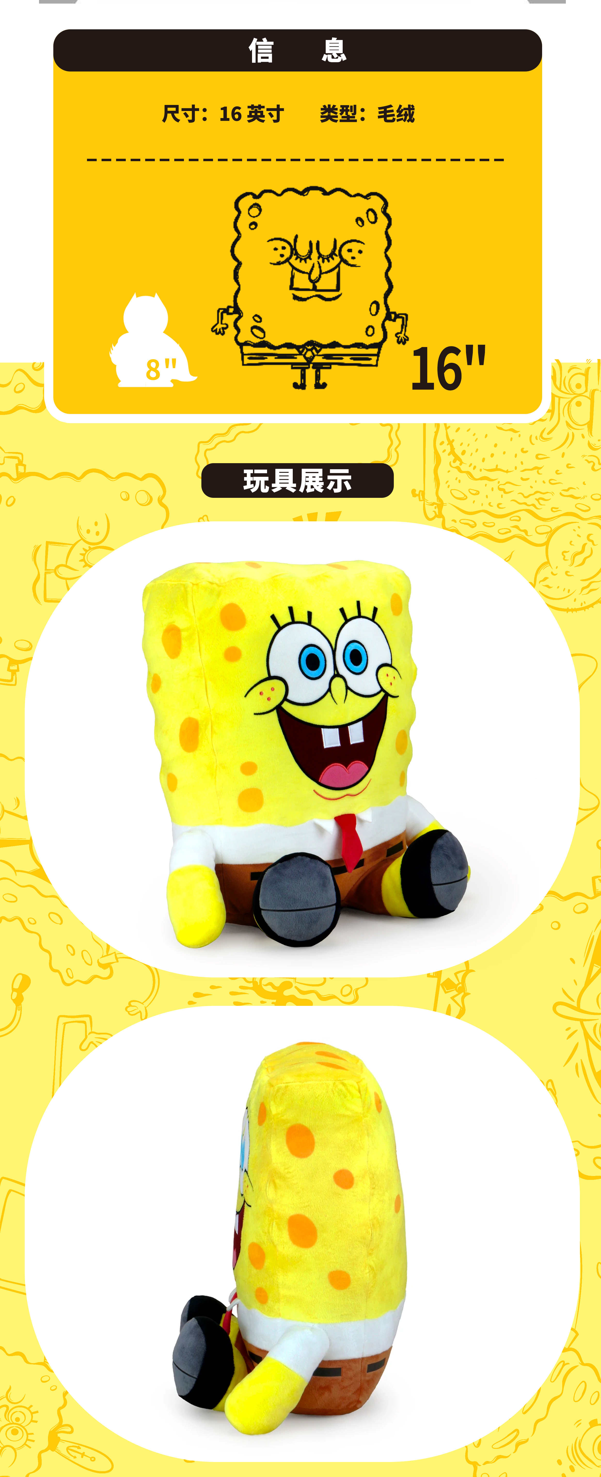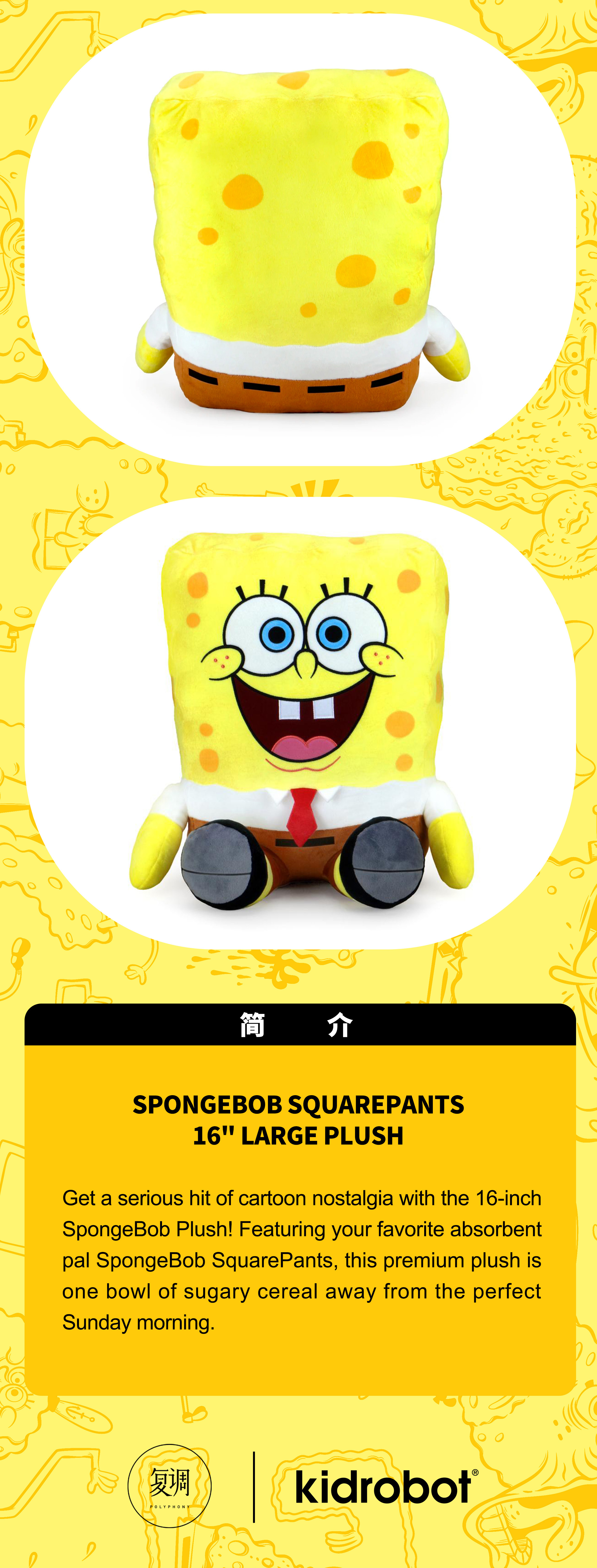现货 Kidrobot 超大海绵宝宝 15英寸 毛绒 抱枕