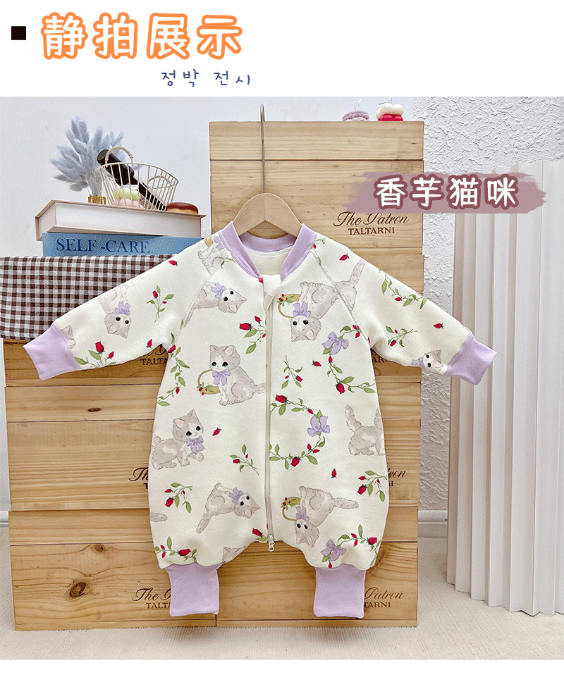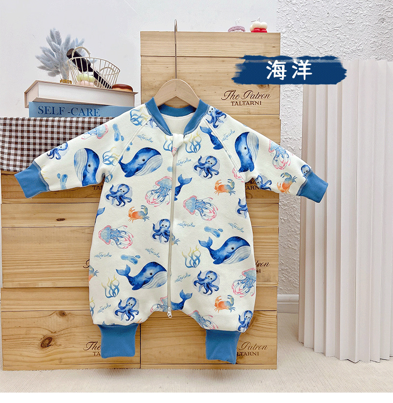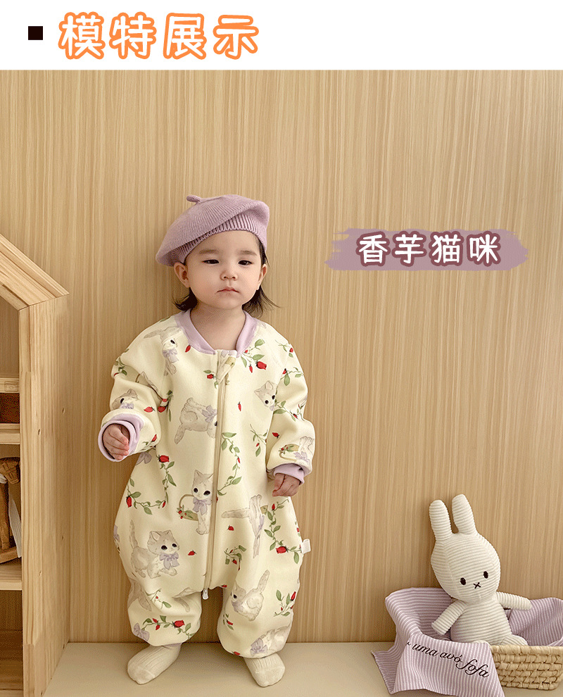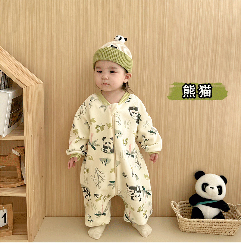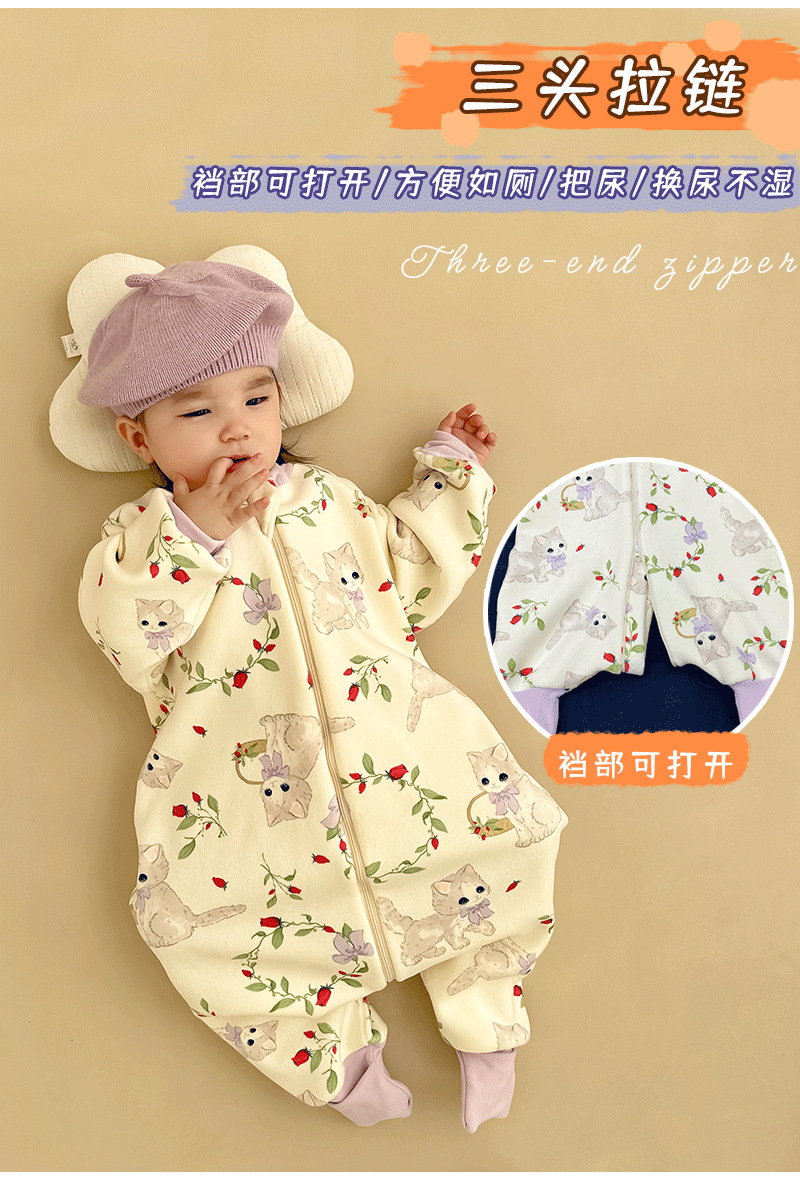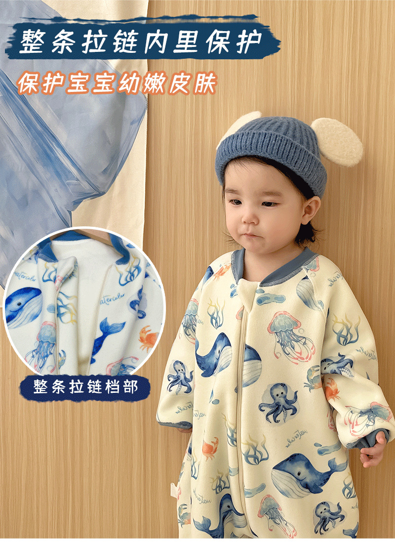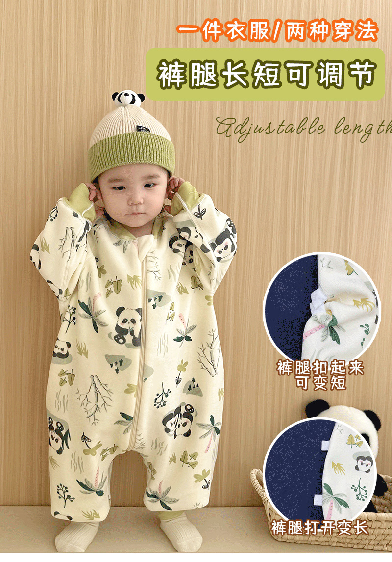 【一件可以过冬喔!高密加绒更保暖】婴儿加厚奥粒绒无骨睡袋,儿童加绒秋冬连体睡衣 宝宝分腿大童防踢被,可调节裤腿,铛部方便