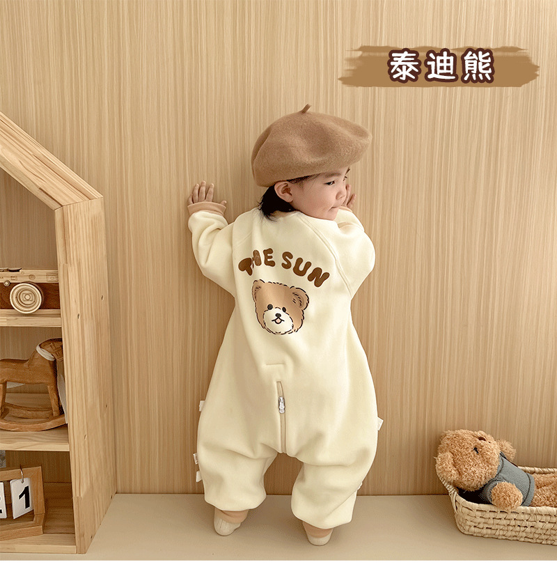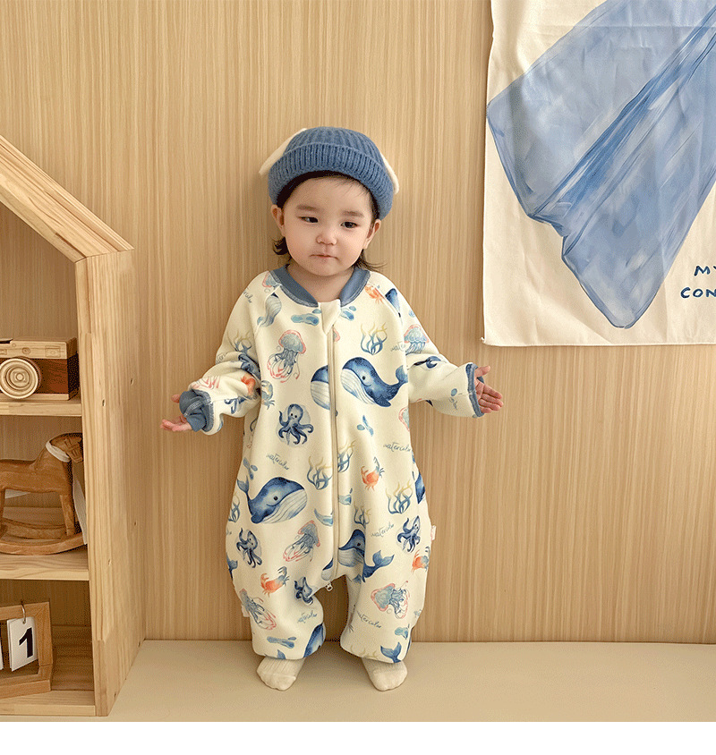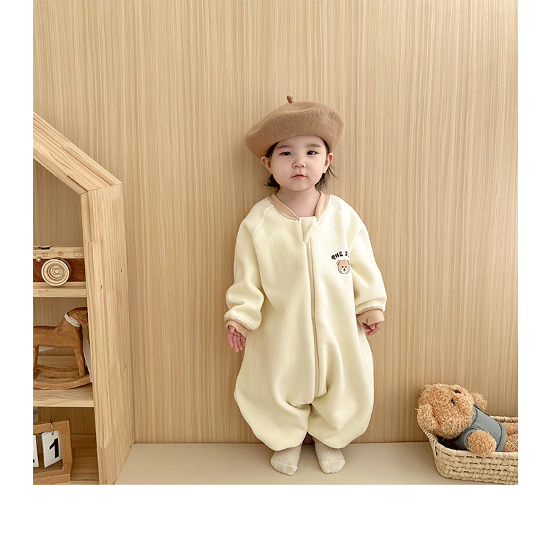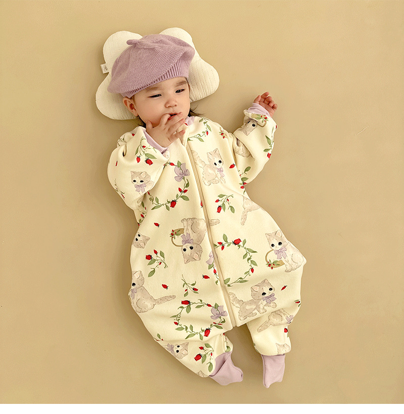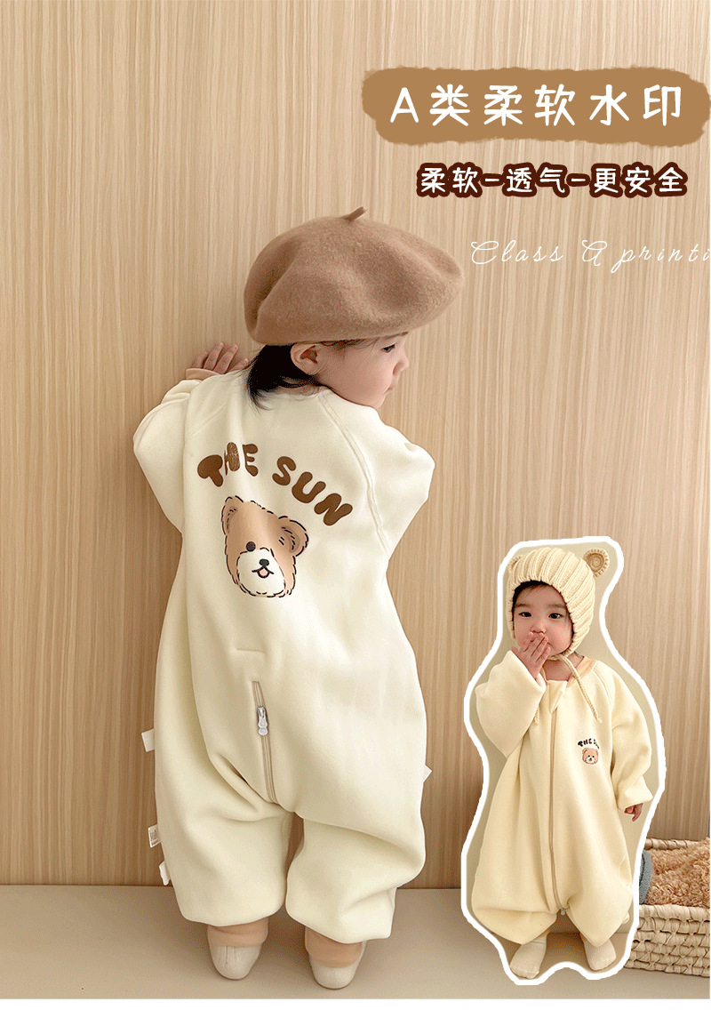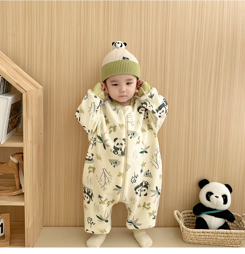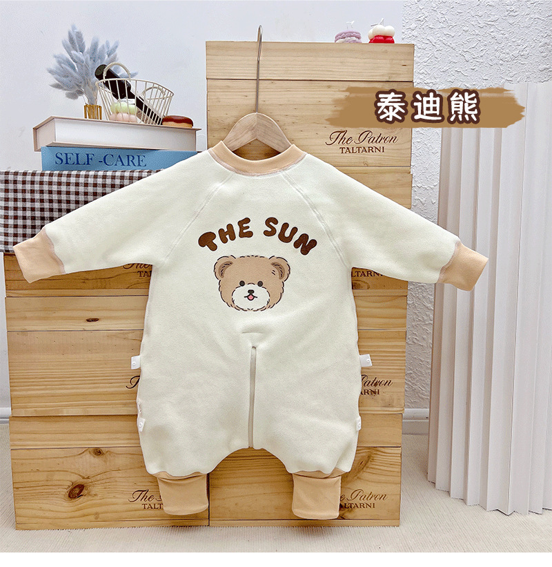 【一件可以过冬喔!高密加绒更保暖】婴儿加厚奥粒绒无骨睡袋,儿童加绒秋冬连体睡衣 宝宝分腿大童防踢被,可调节裤腿,铛部方便