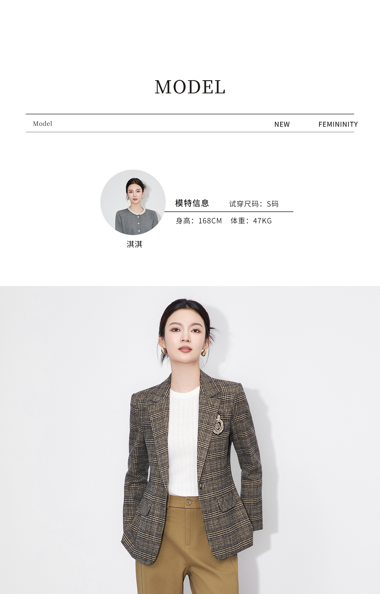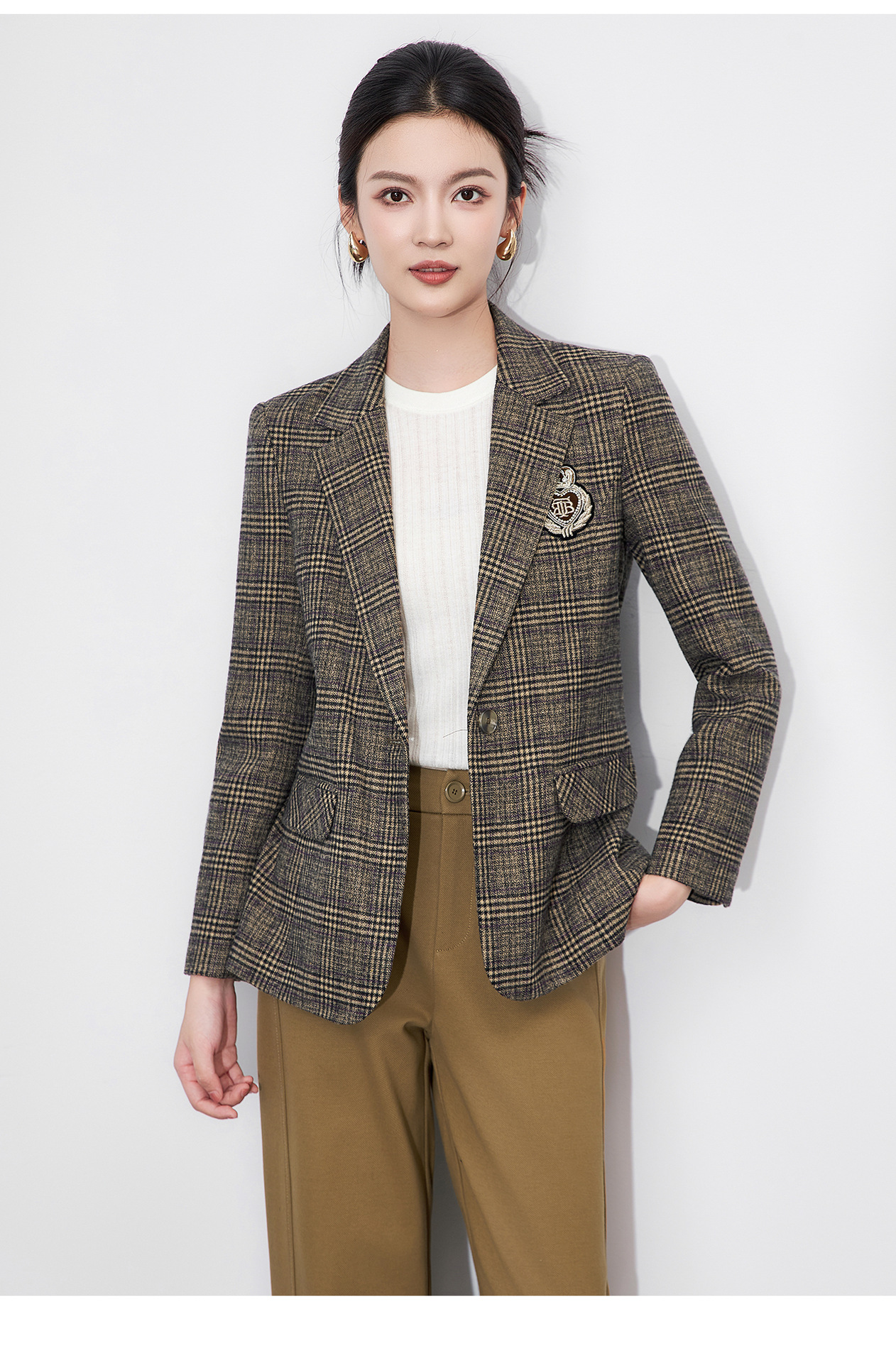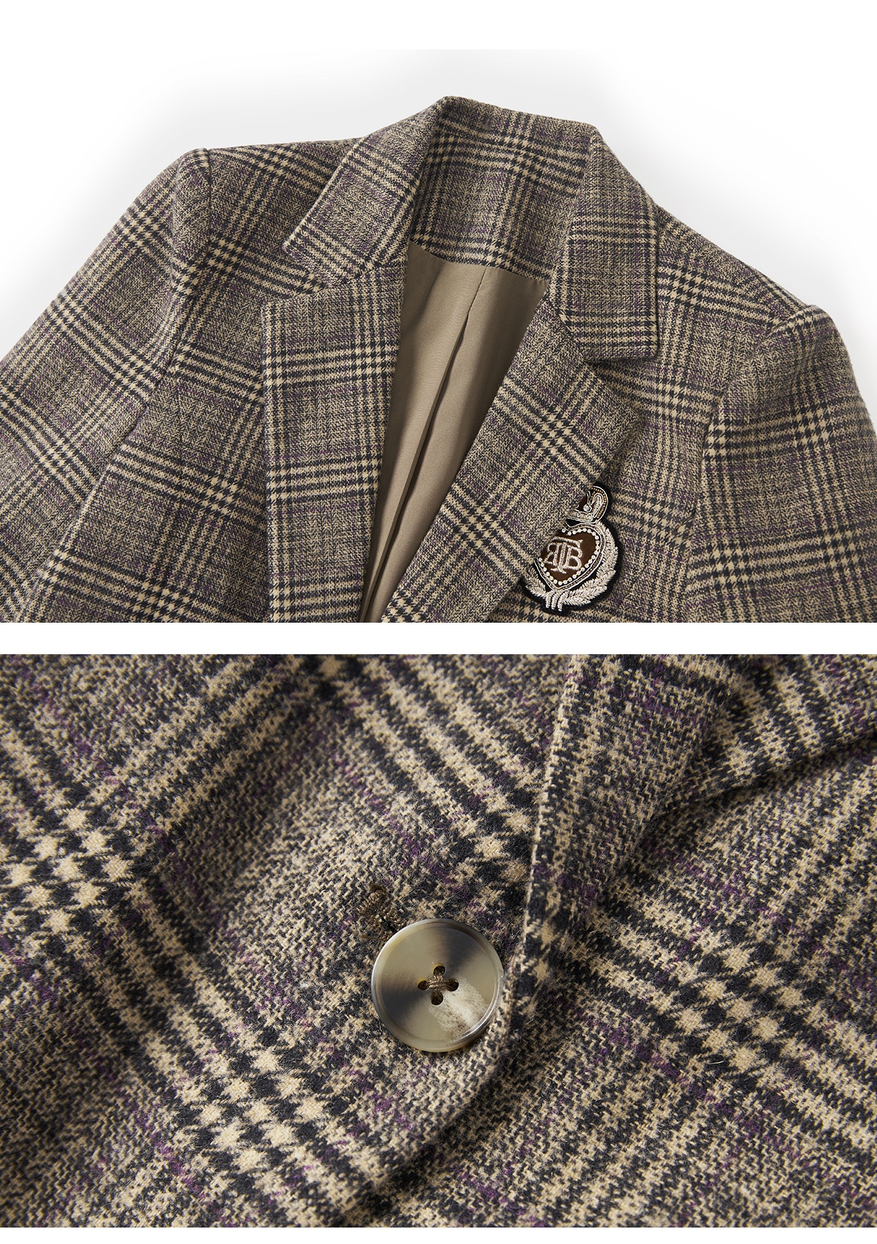 「高货wl」全新升级【铂金会员330/天猫439/差价109】(00123)洛诗琳气质复古通勤格纹西装2025秋季磨毛英伦风徽章外套