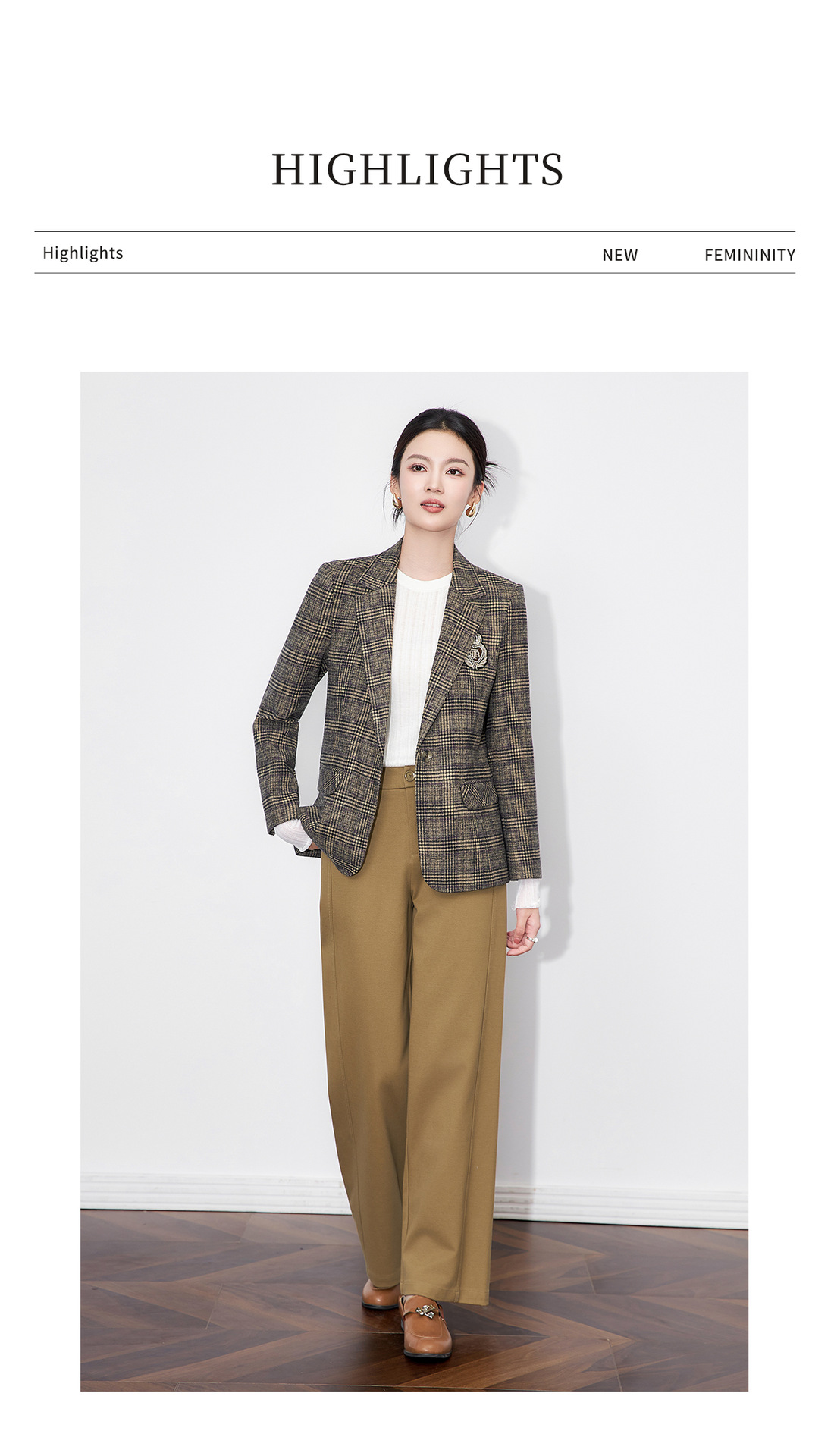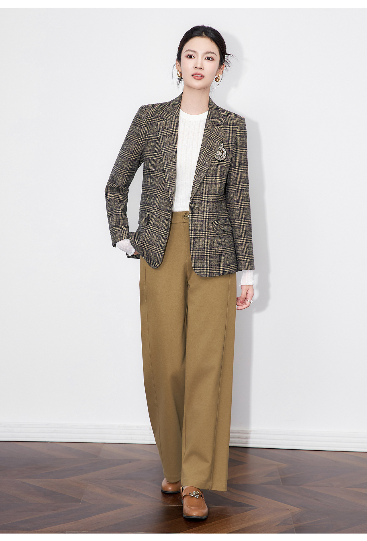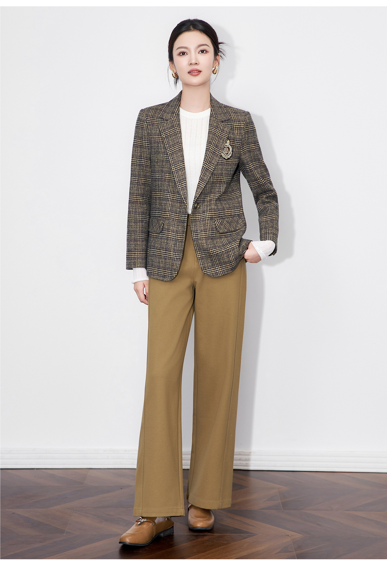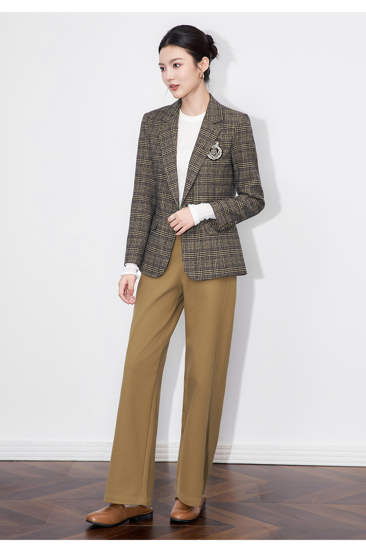 「高货wl」全新升级【铂金会员330/天猫439/差价109】(00123)洛诗琳气质复古通勤格纹西装2025秋季磨毛英伦风徽章外套