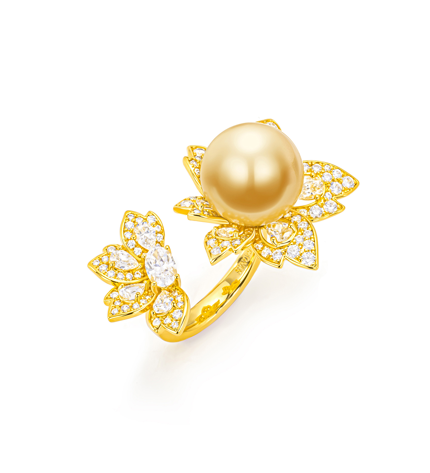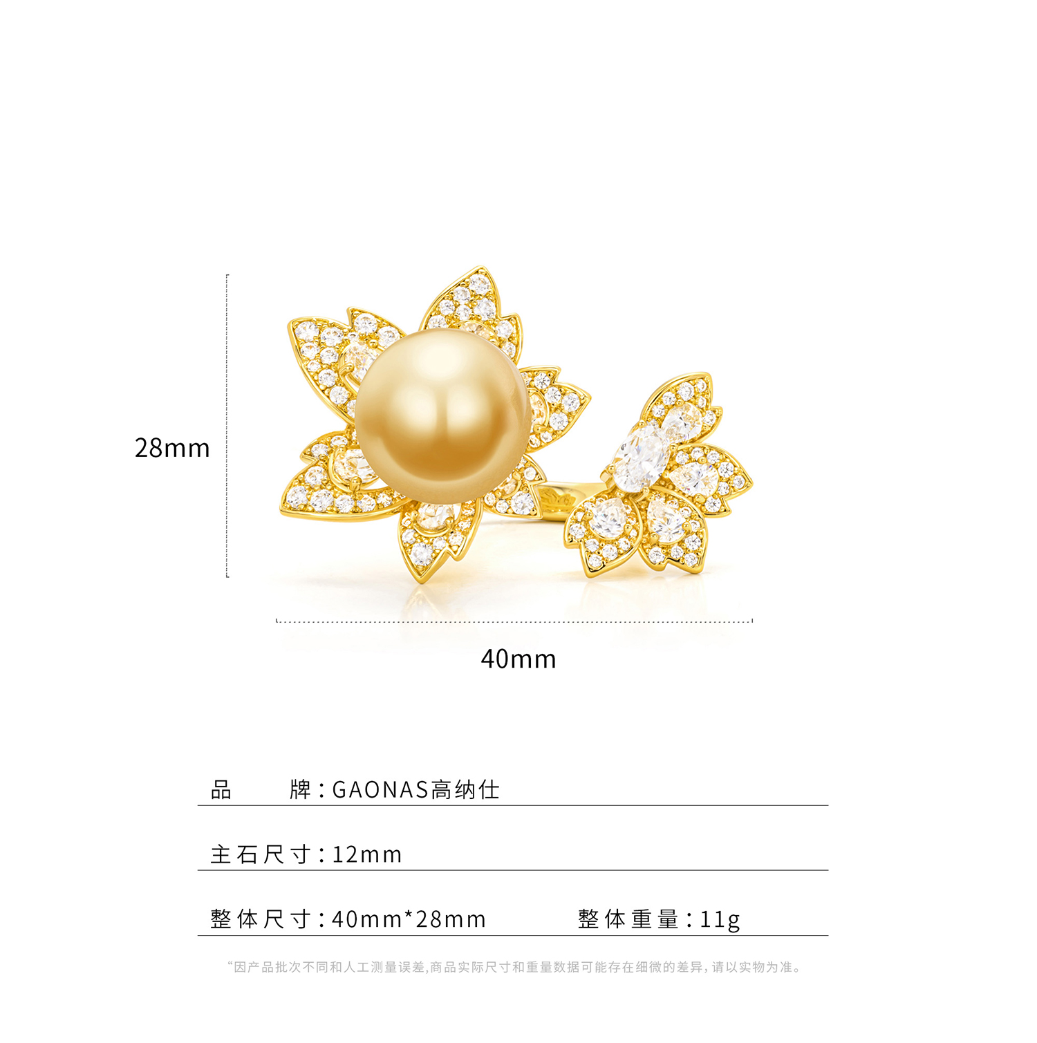 GAONAS 贵气臻奢12mm金色花朵珠戒指11943JGO