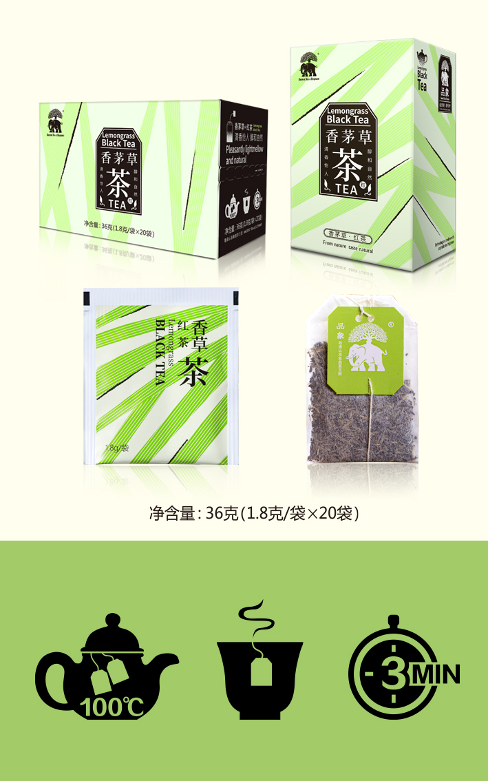 品象袋泡茶云南滇红香茅草茶清香鲜爽甜润可口汤色黄绿明亮回味长