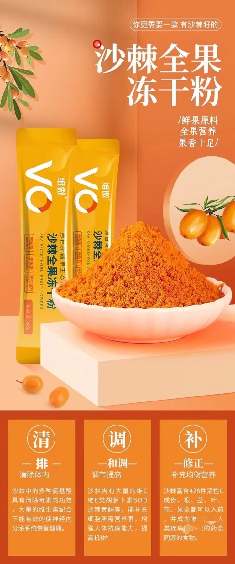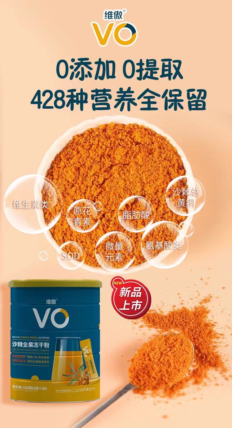 维傲·沙棘全果冻干粉 120g/桶 (6g* 20包) 全果营养不流失 酸甜适口不涩嘴
