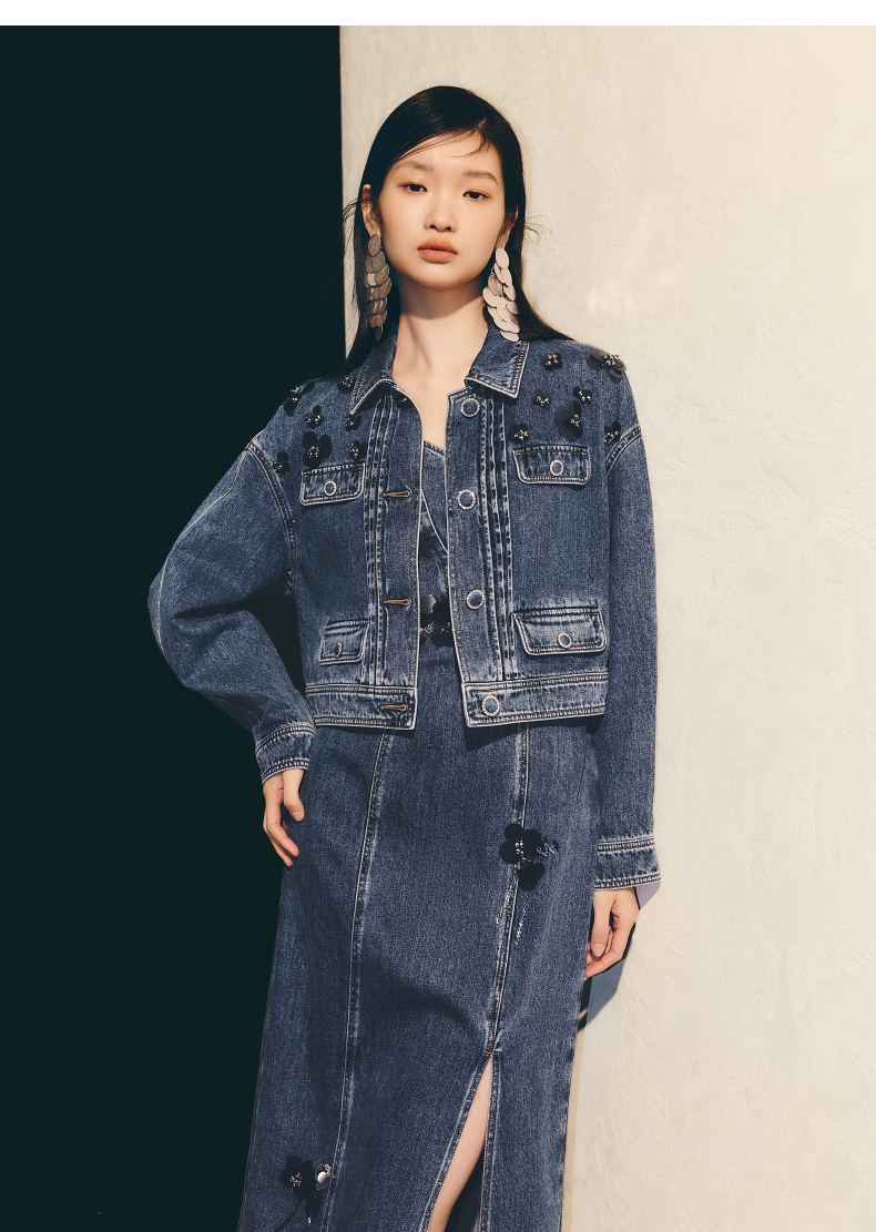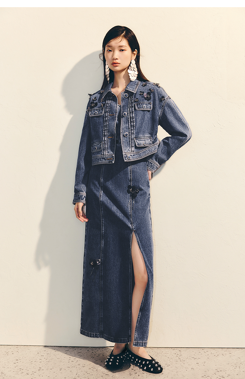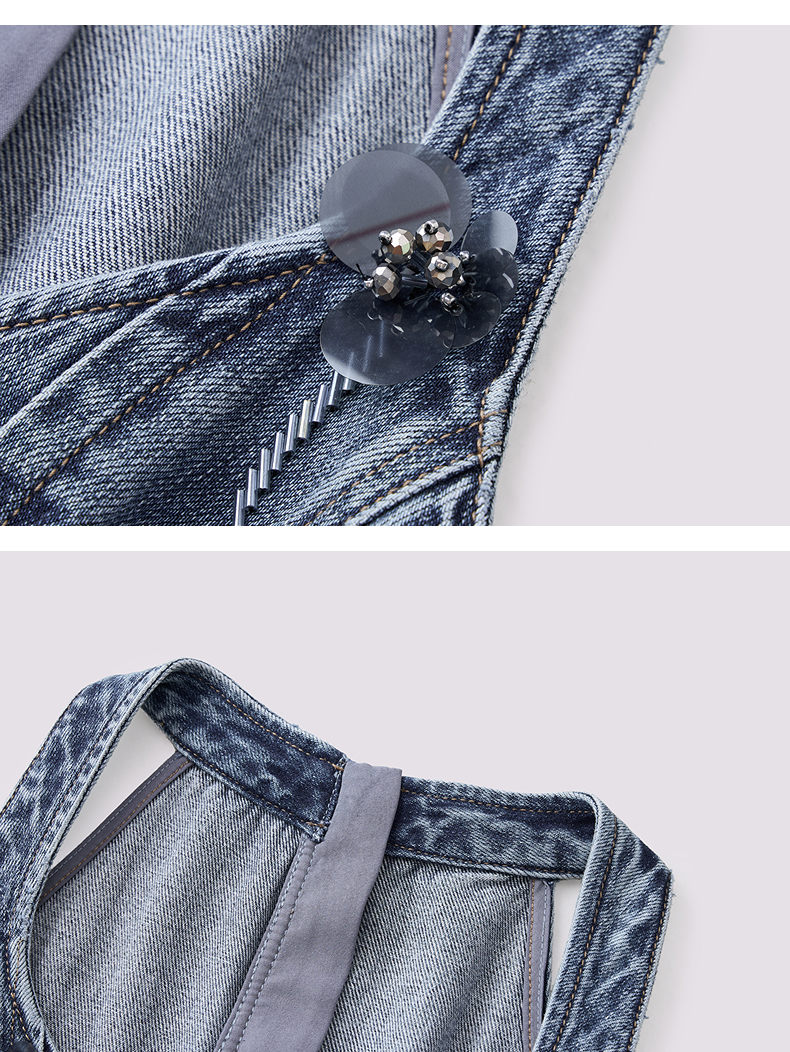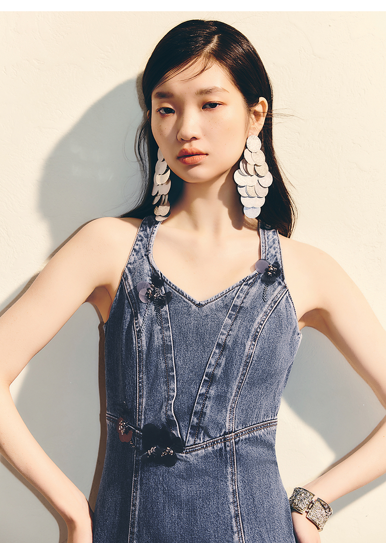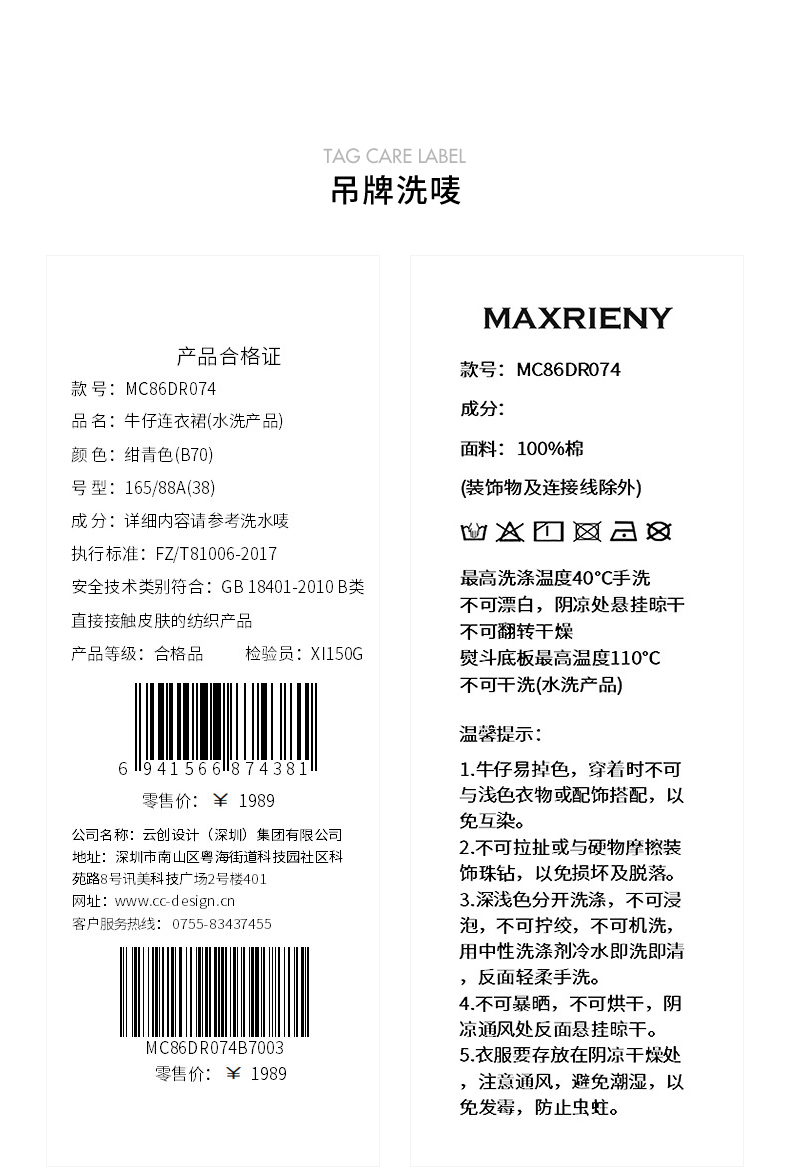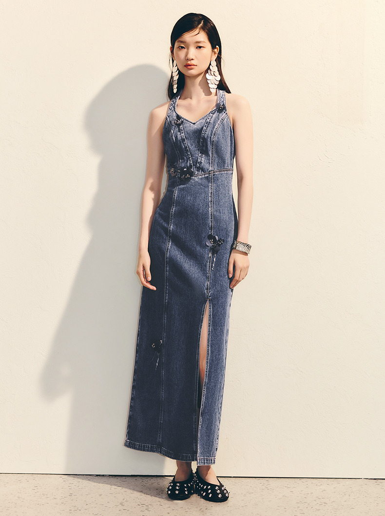 【商场同款-浅春系穿搭】MAXRIENY复古挂脖牛仔连衣裙开叉裙子春(货号:MC86DR074)