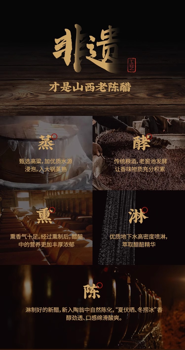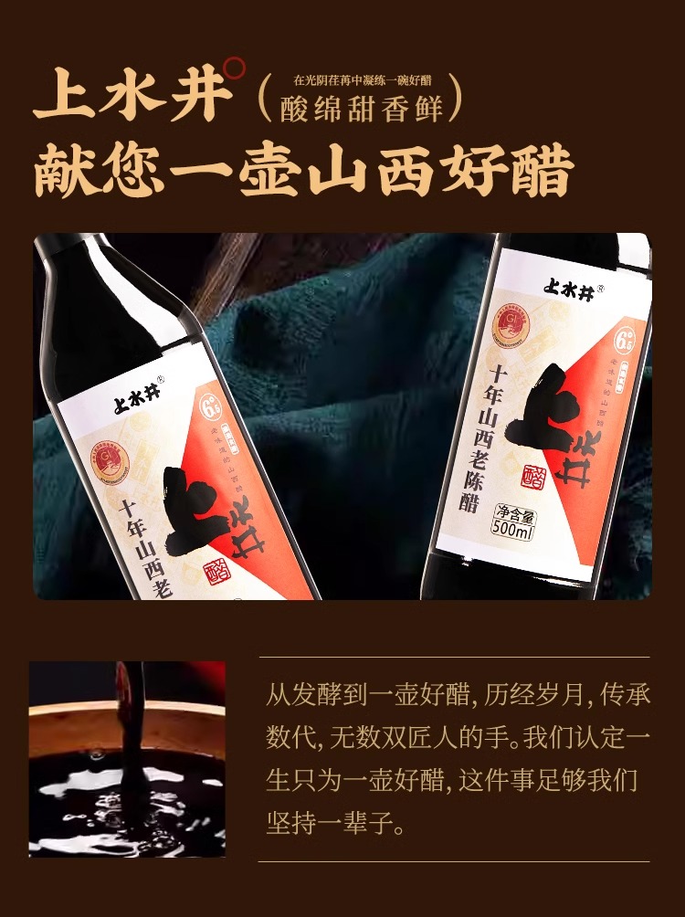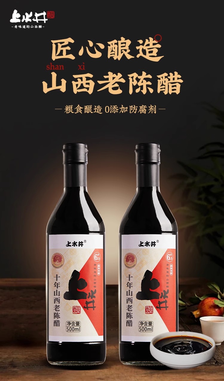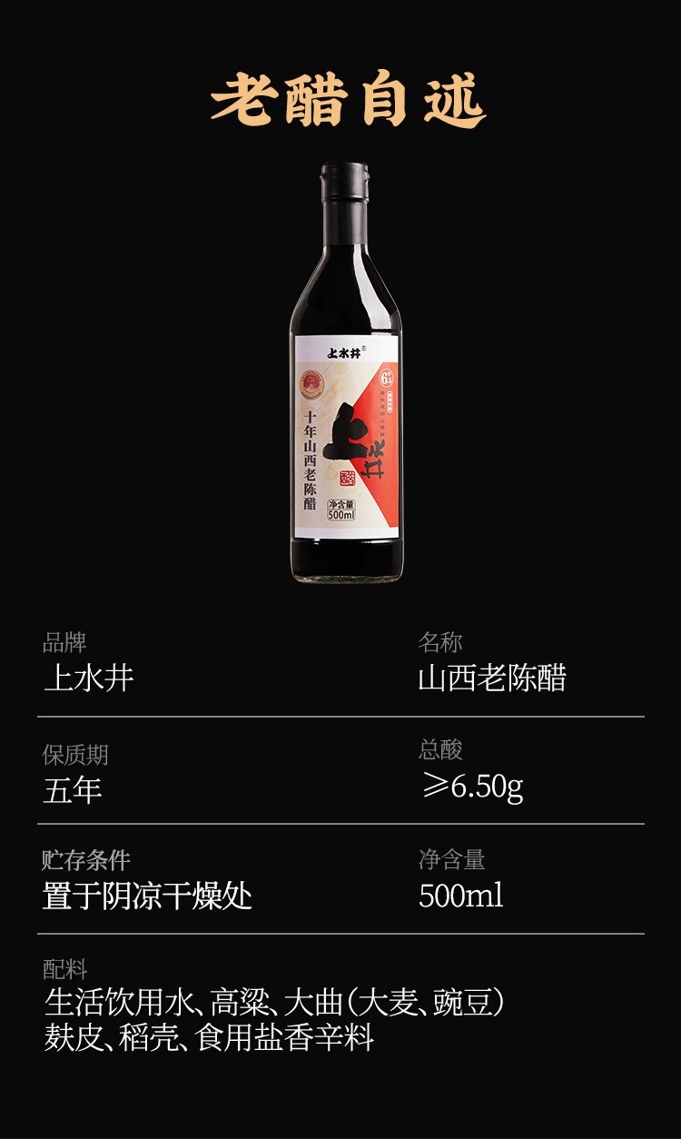 【高粱酿造 配料干净】6.5度十年老陈醋500ML/9度高粱白醋500ML 山西上水井家用调味