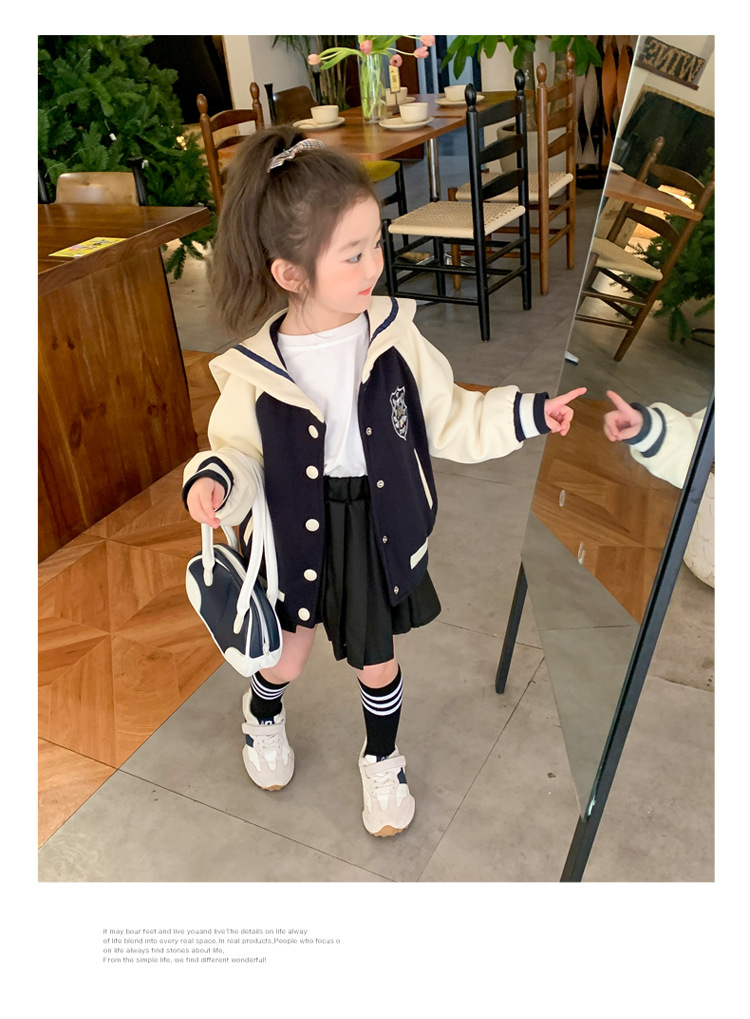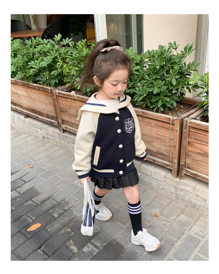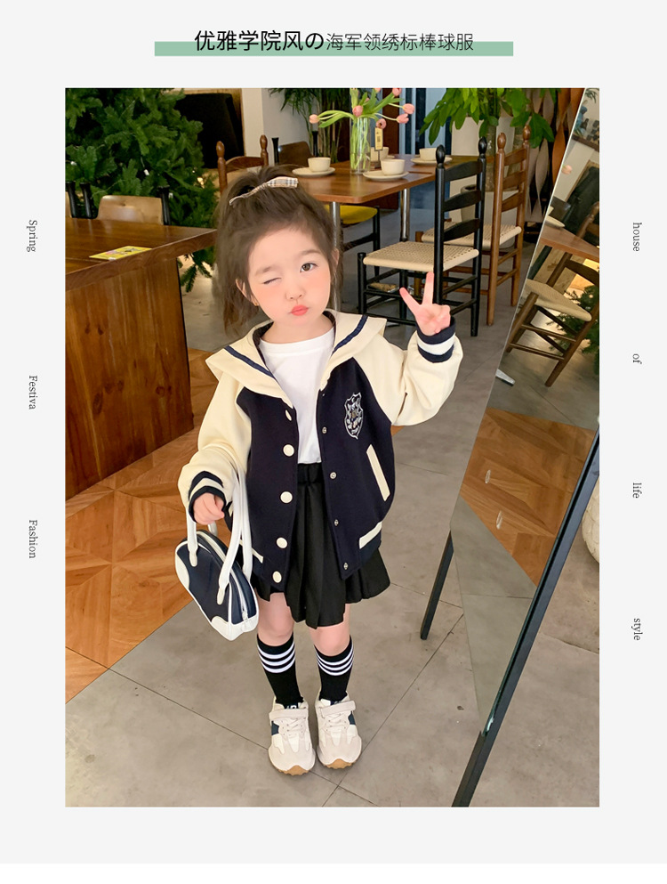 【舒适透气!女童学院风棒球服】秋季新款 女童韩版学院风刺绣外套 翻领棒球服,透气面料,舒适不紧束,时尚翻领,别具风味。ry