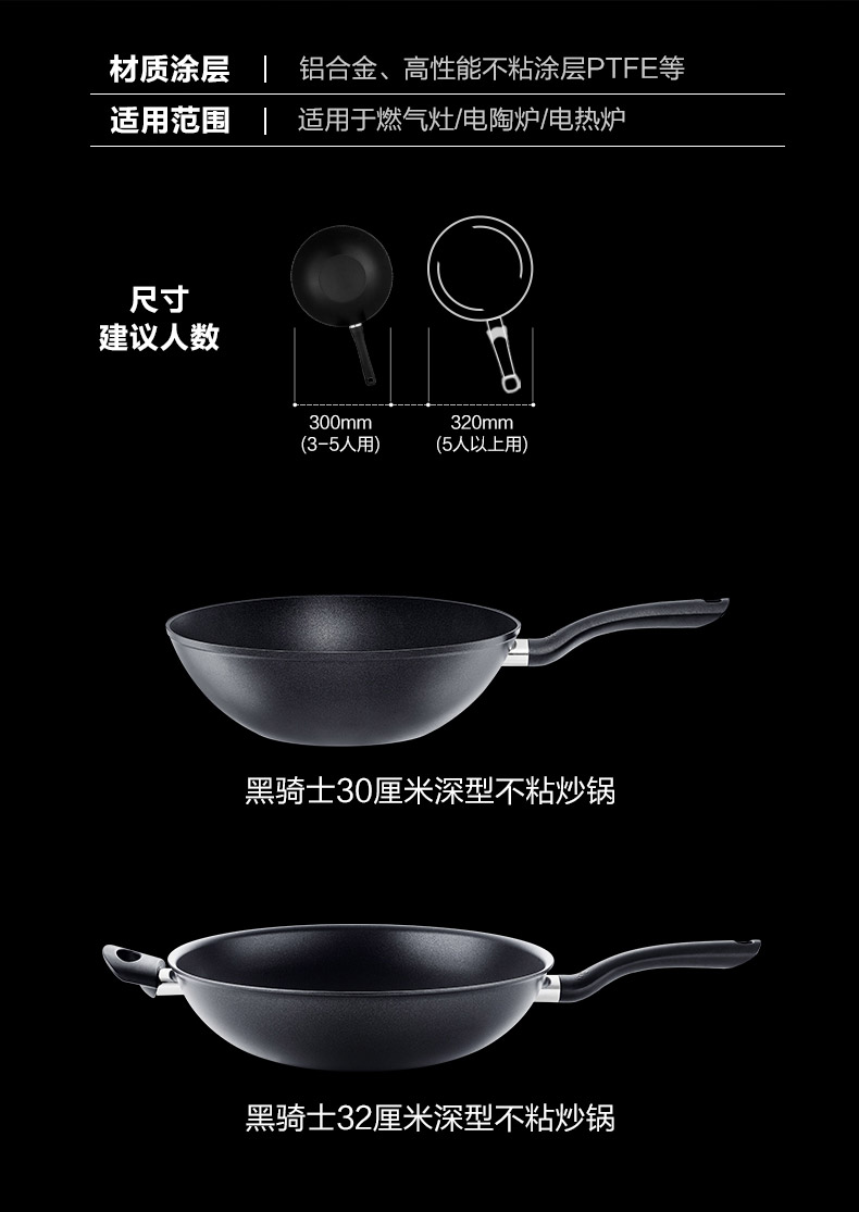 菲仕乐 黑骑士深型不粘煎炒锅30cm/32cm