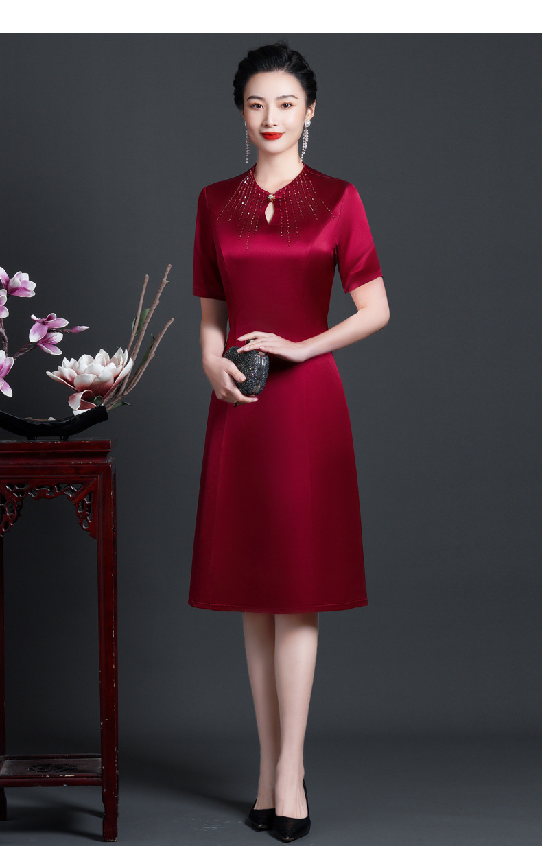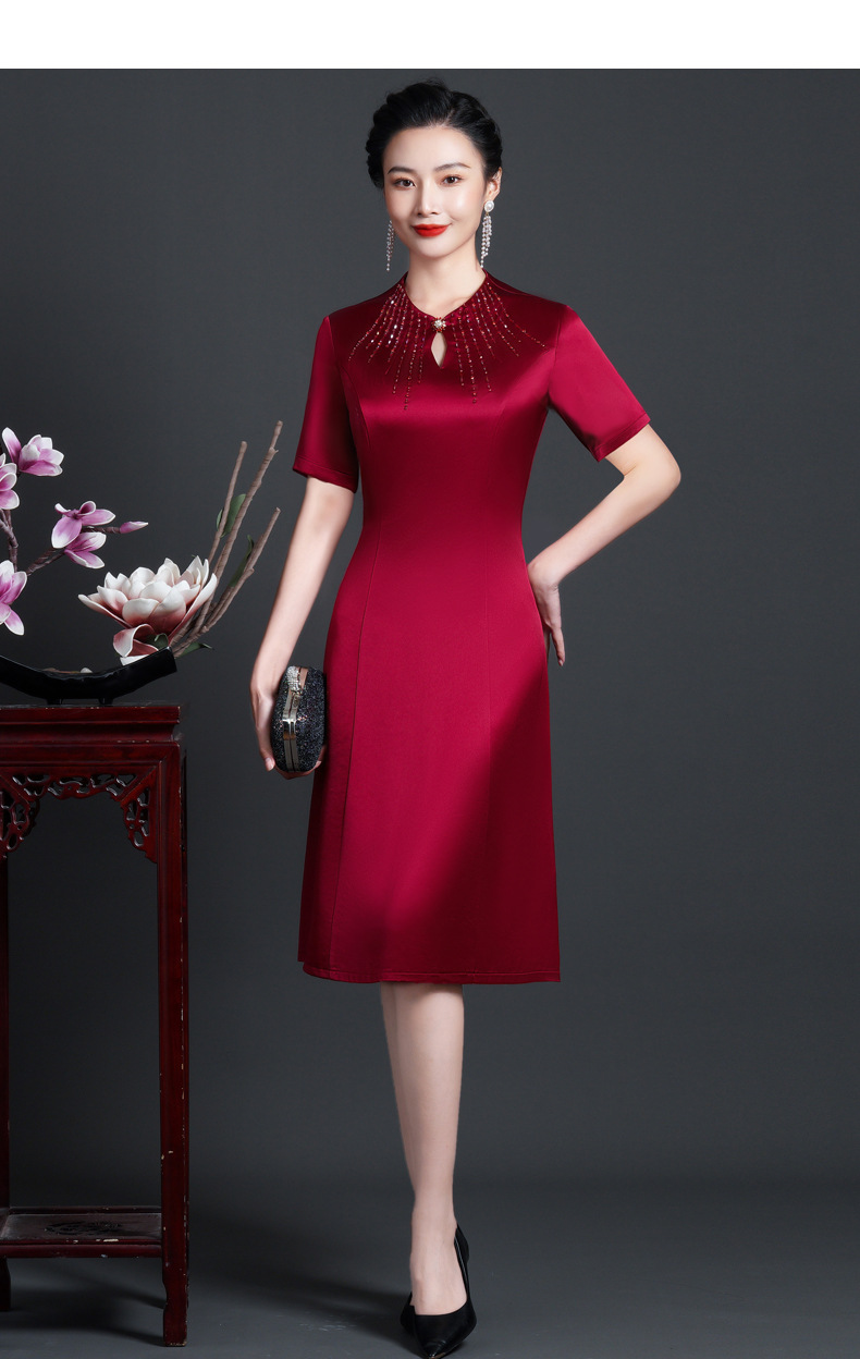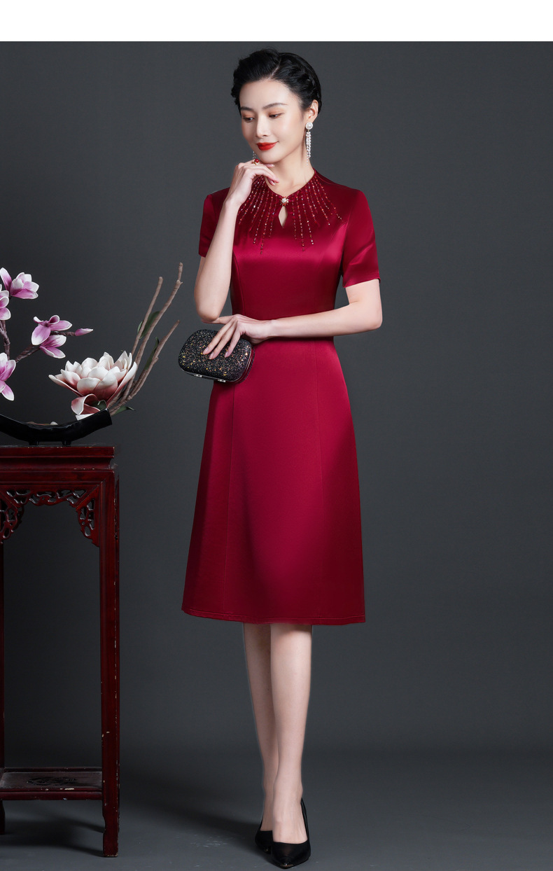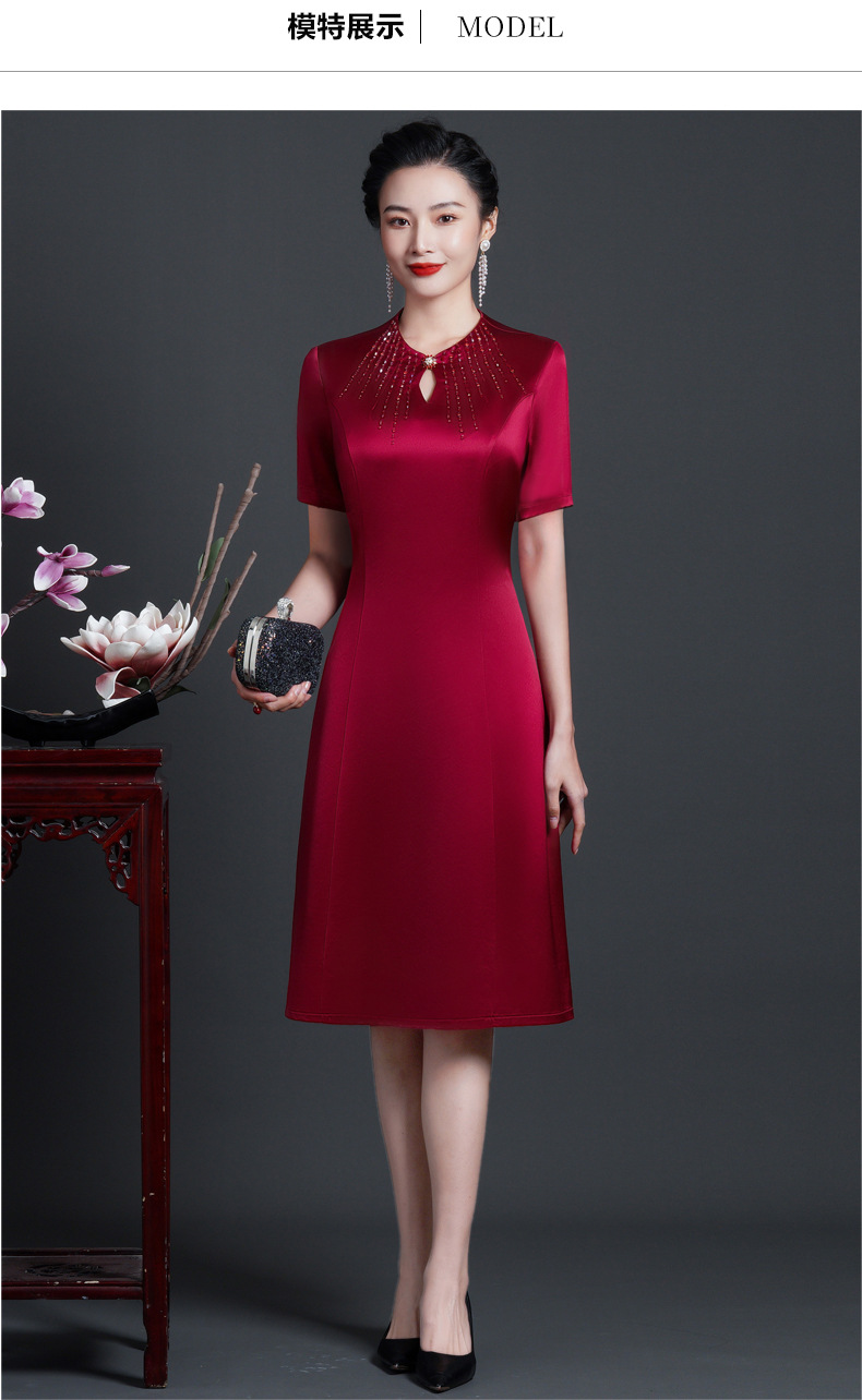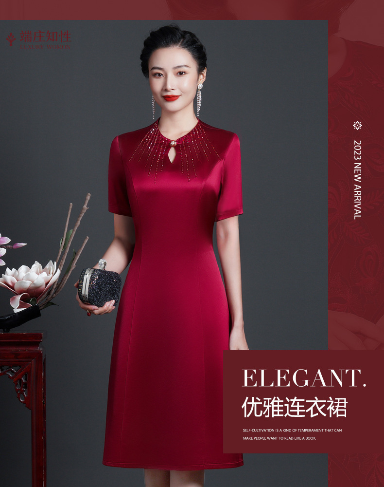JC-62182改良旗袍连衣裙年轻新款女士气质红色婚宴喜婆婆礼服