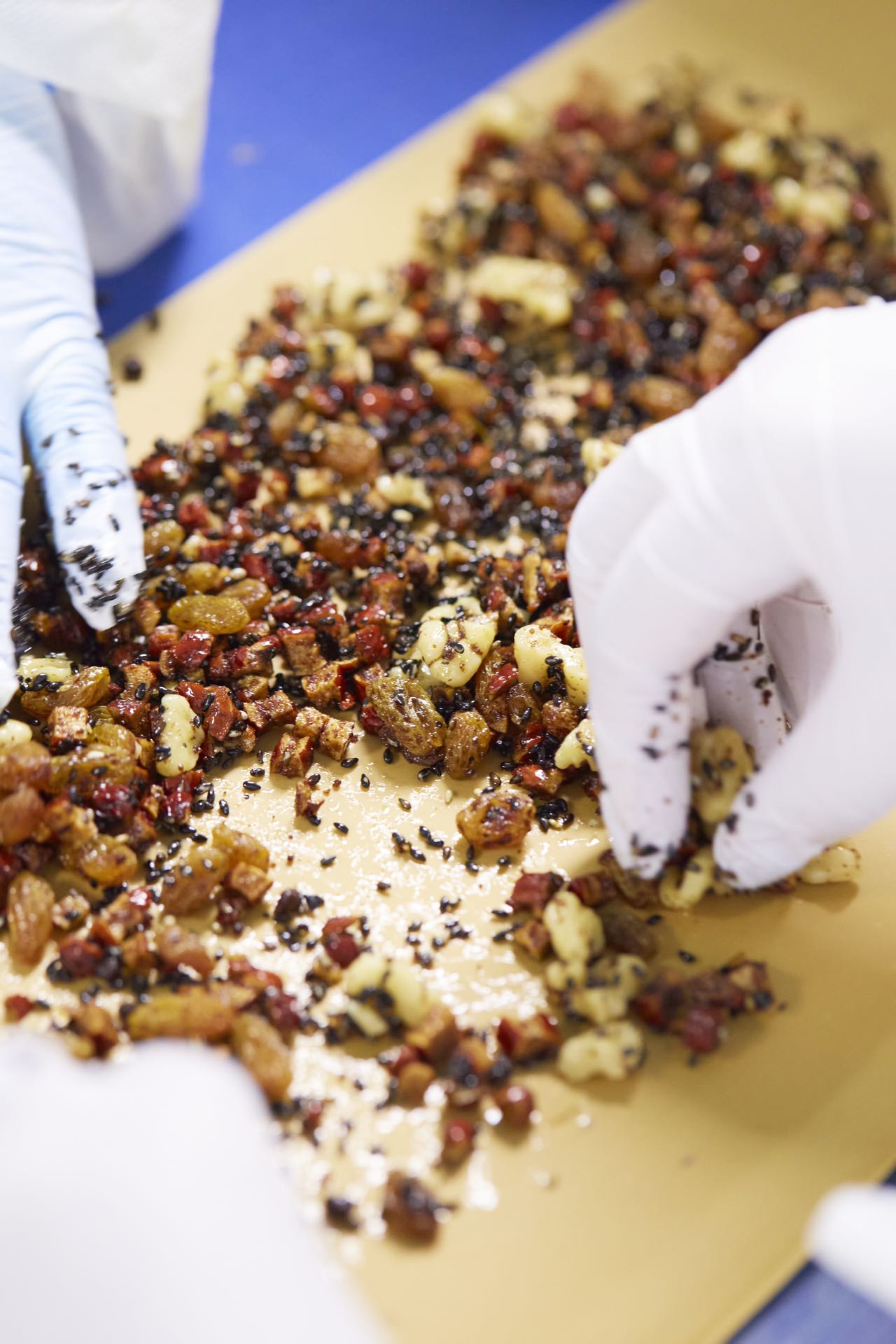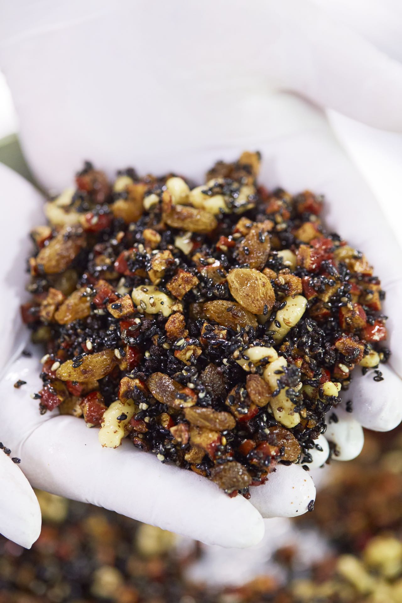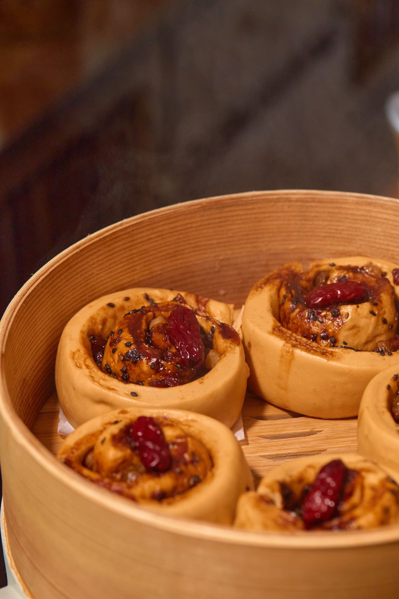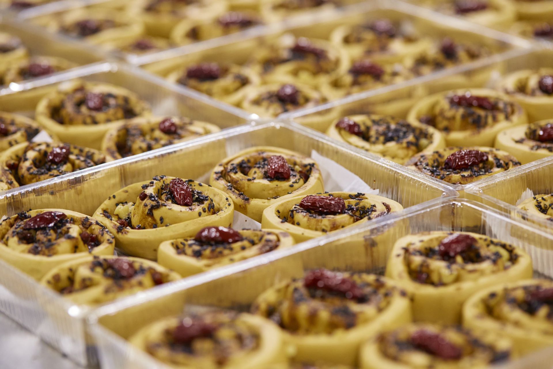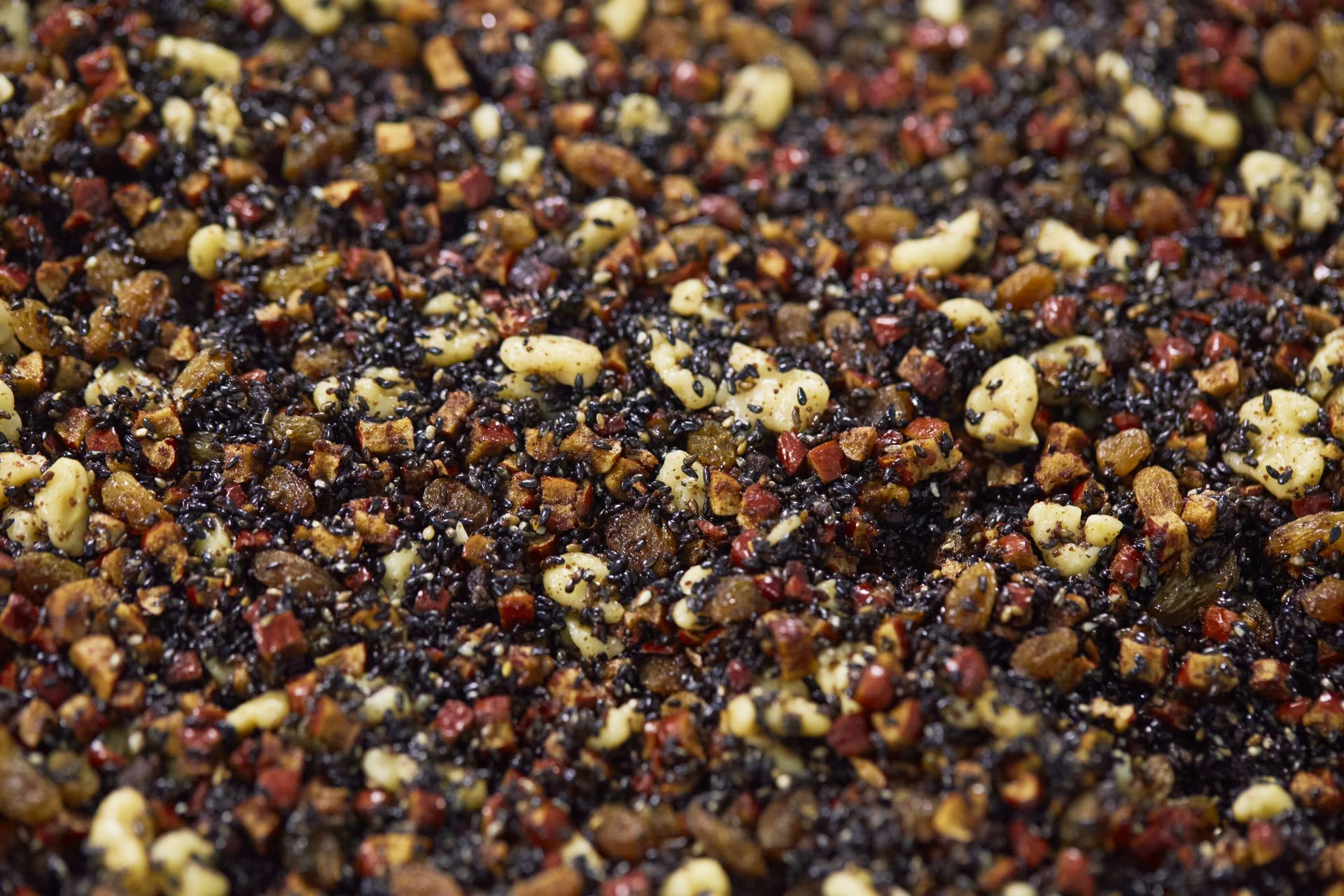 香软外皮裹挟着红枣、核桃、黑芝麻和葡萄干