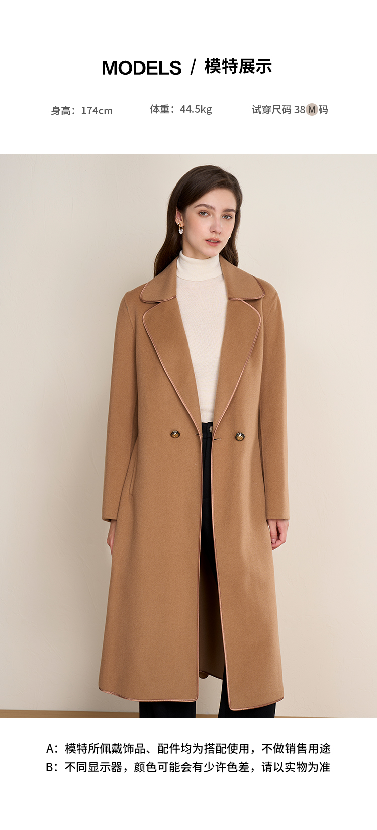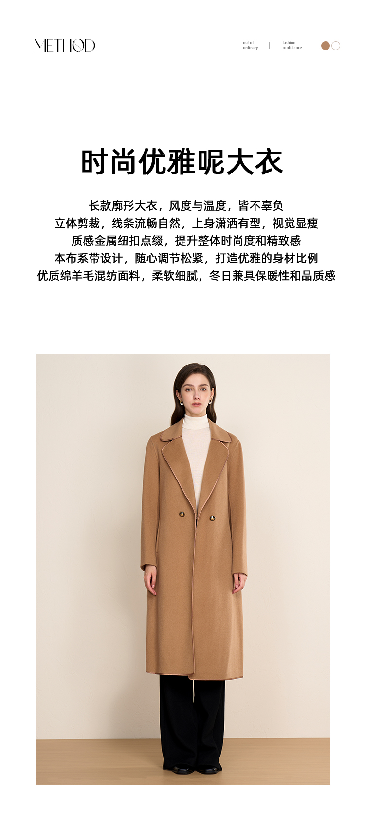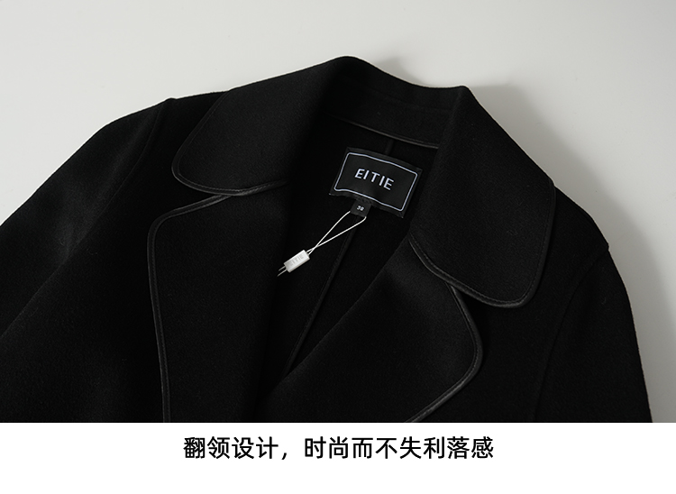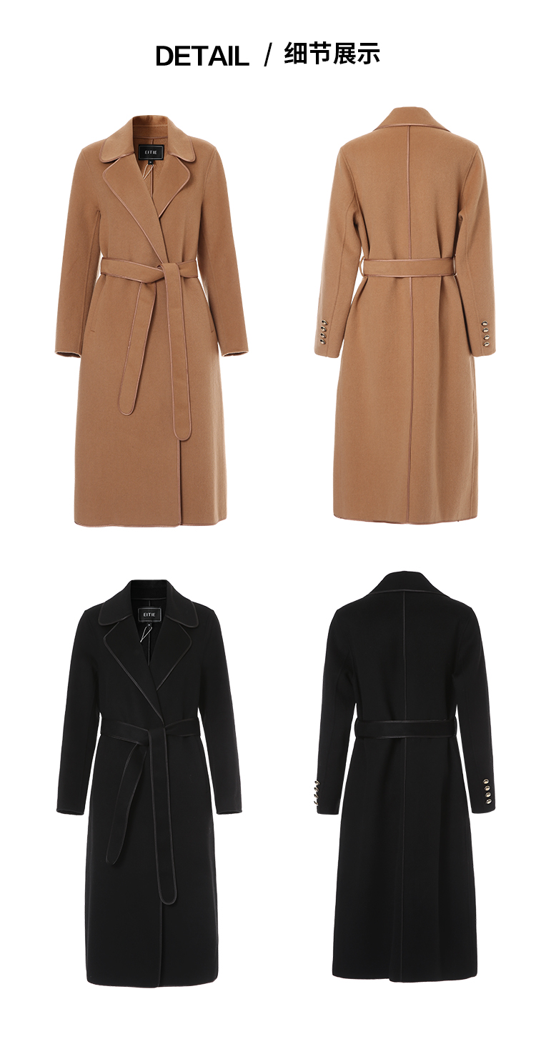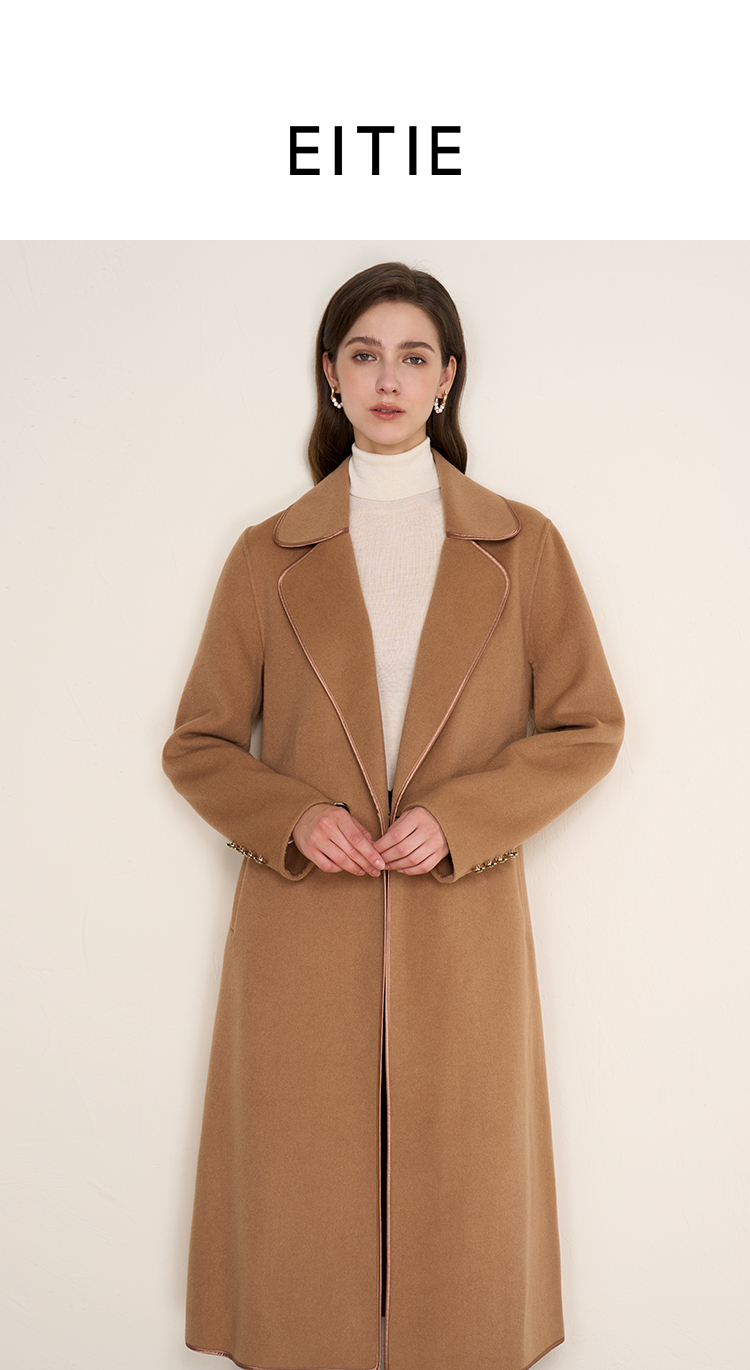 EITIE爱特爱气质时尚翻驳领腰带收腰长款羊毛呢大衣秋冬新D2514905
