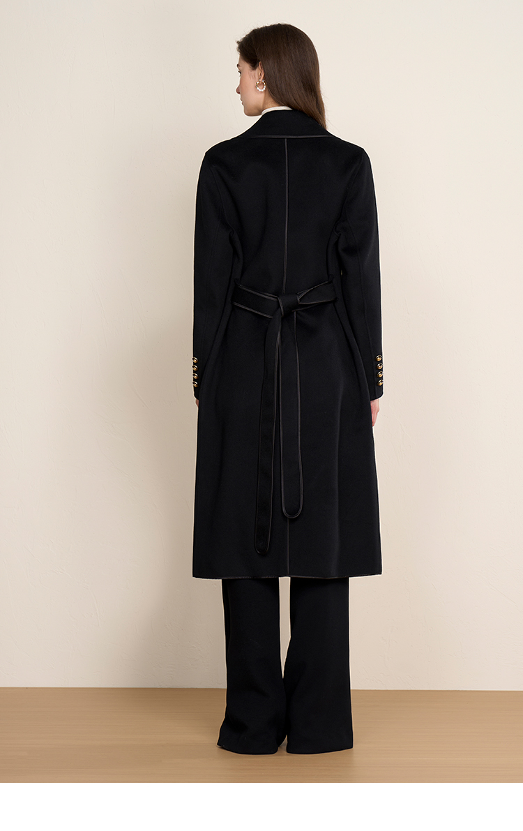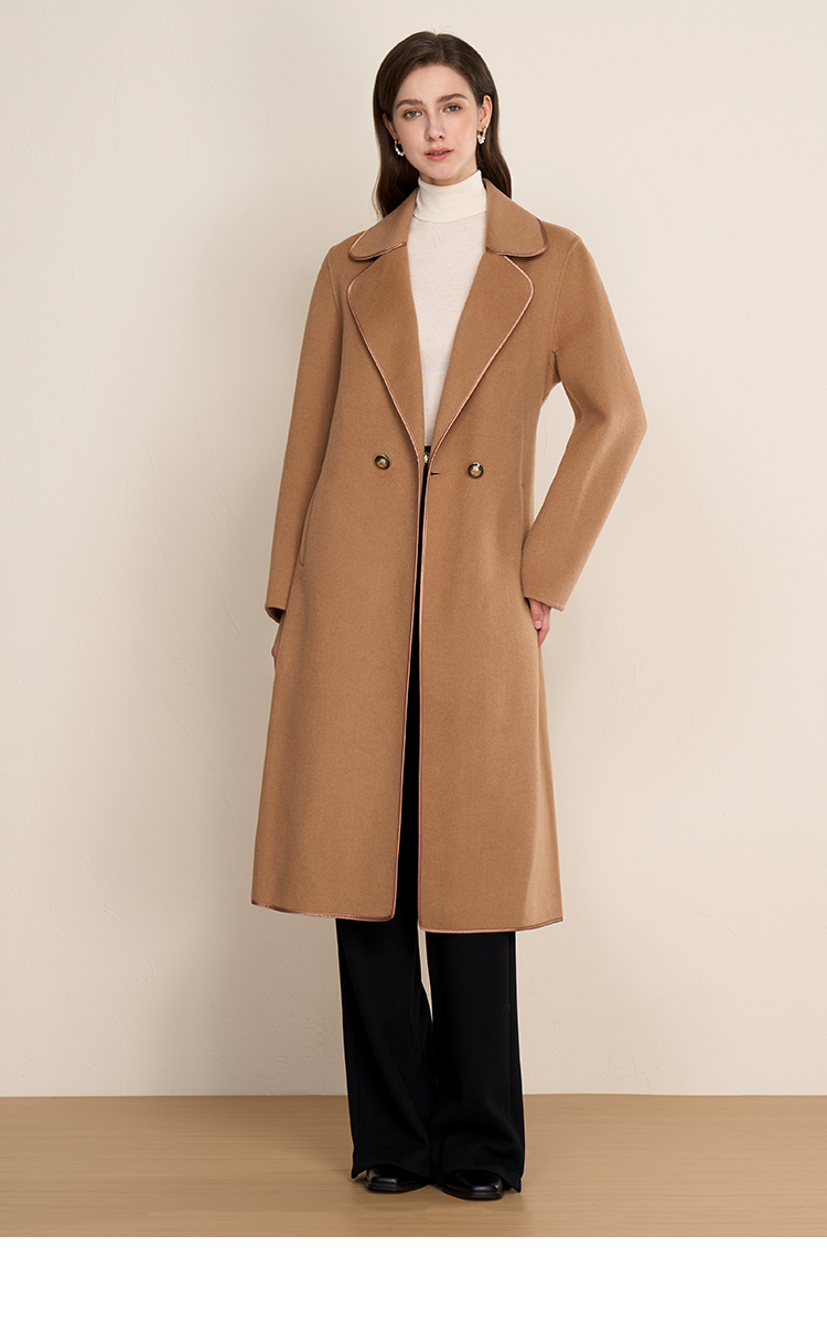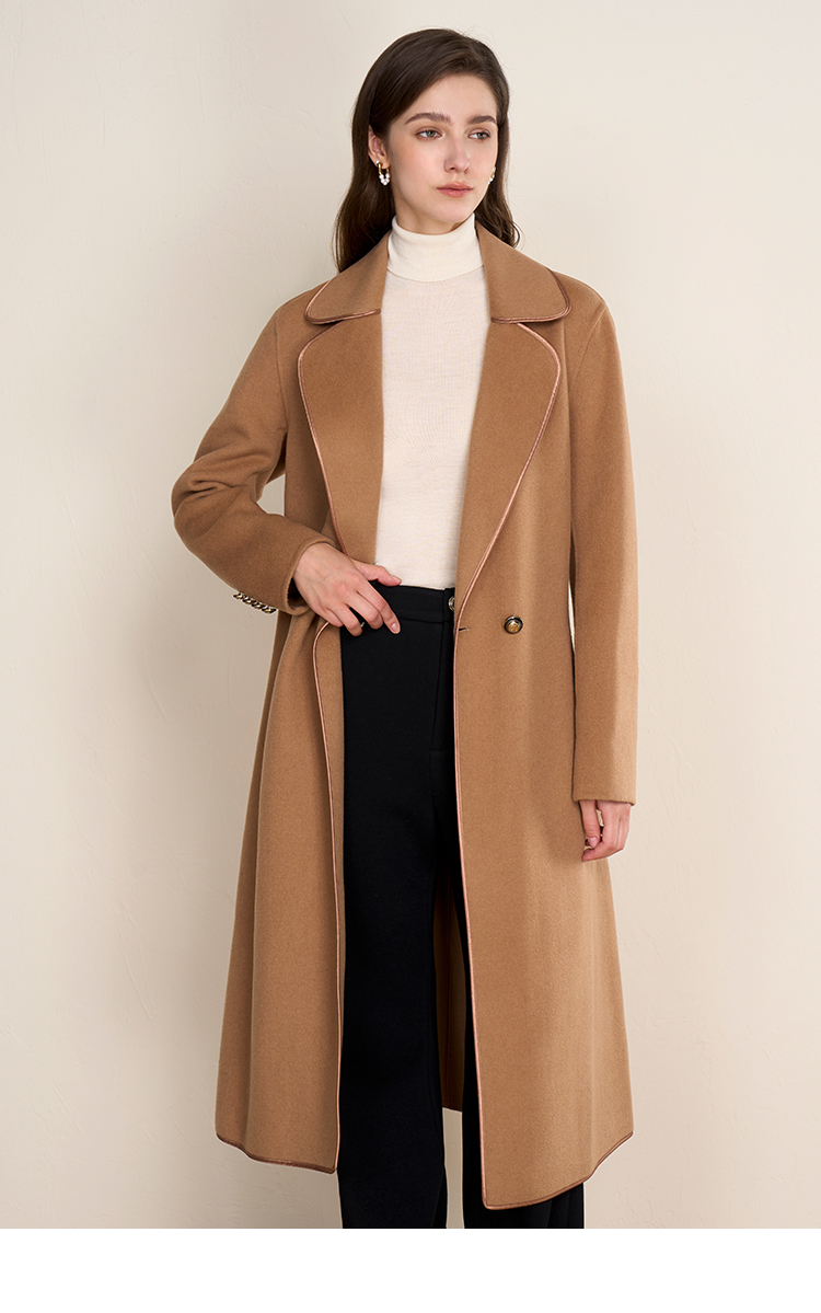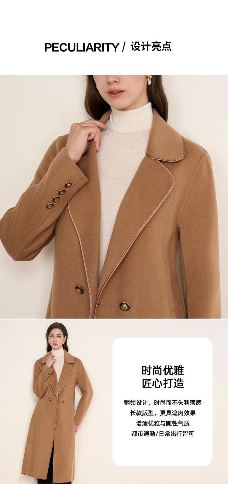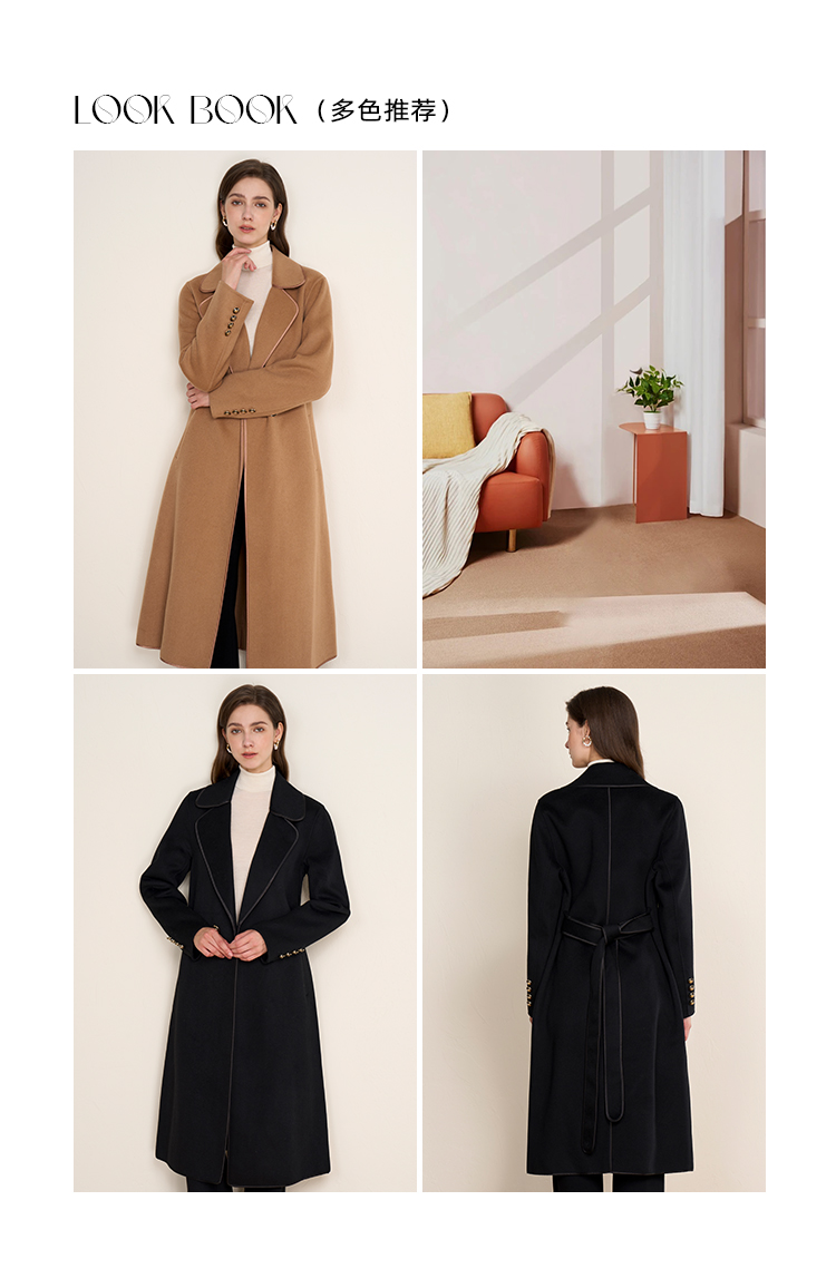 EITIE爱特爱气质时尚翻驳领腰带收腰长款羊毛呢大衣秋冬新D2514905