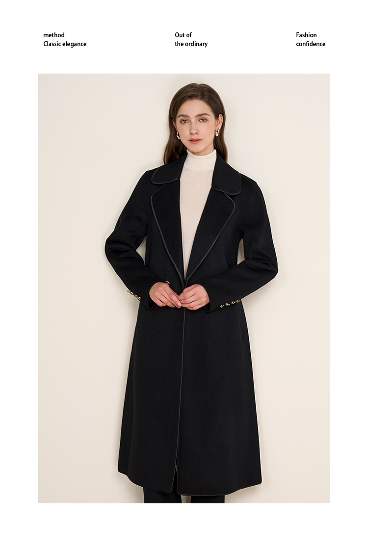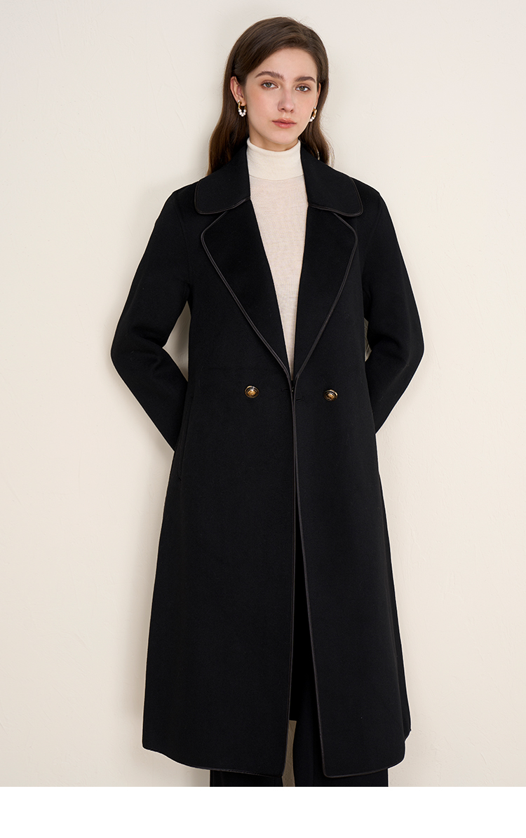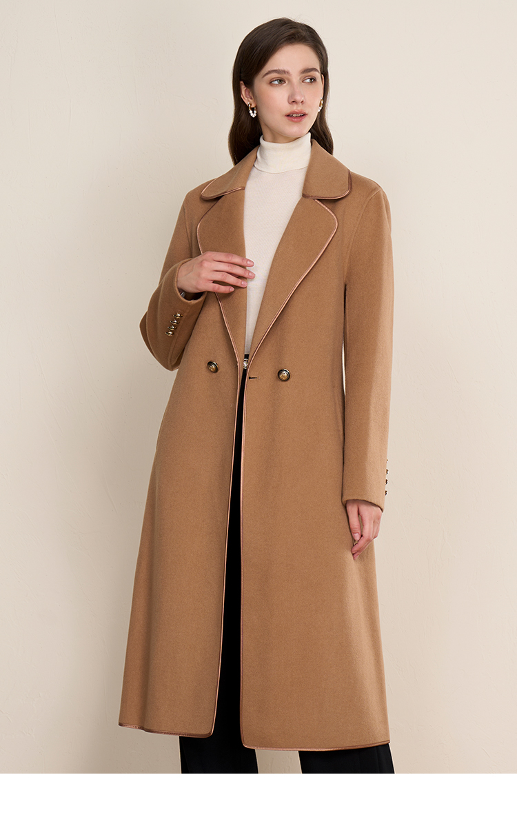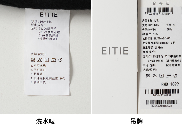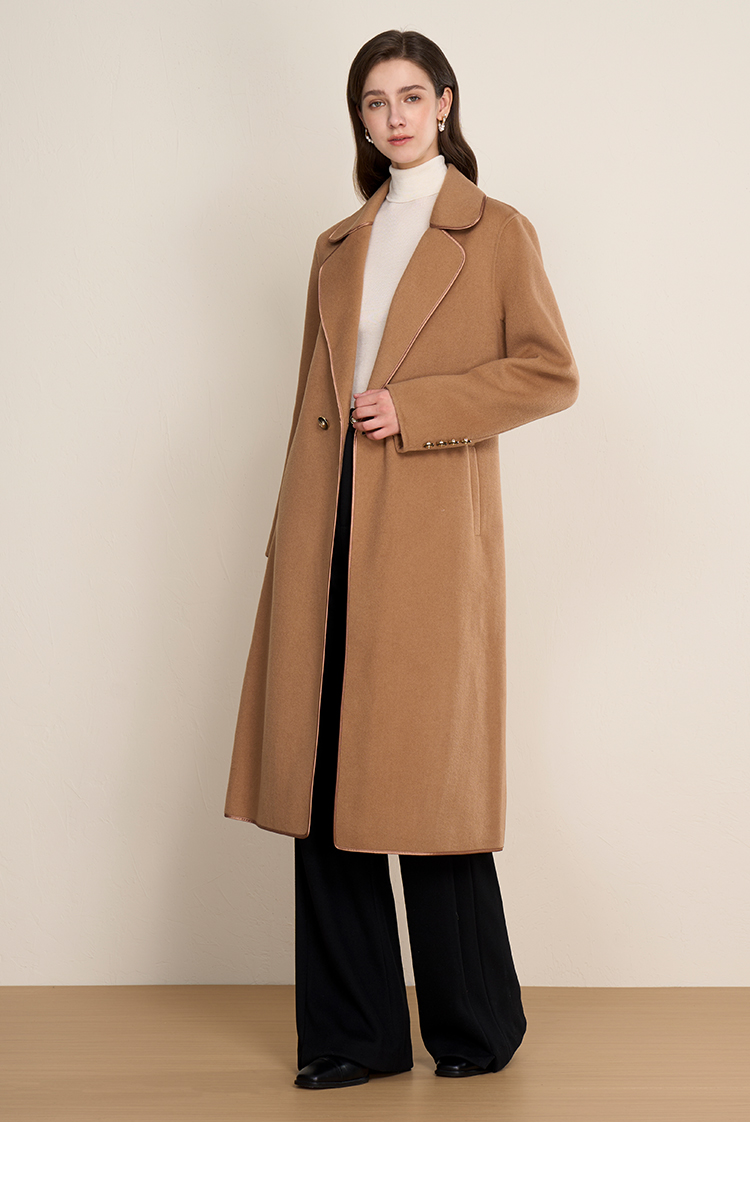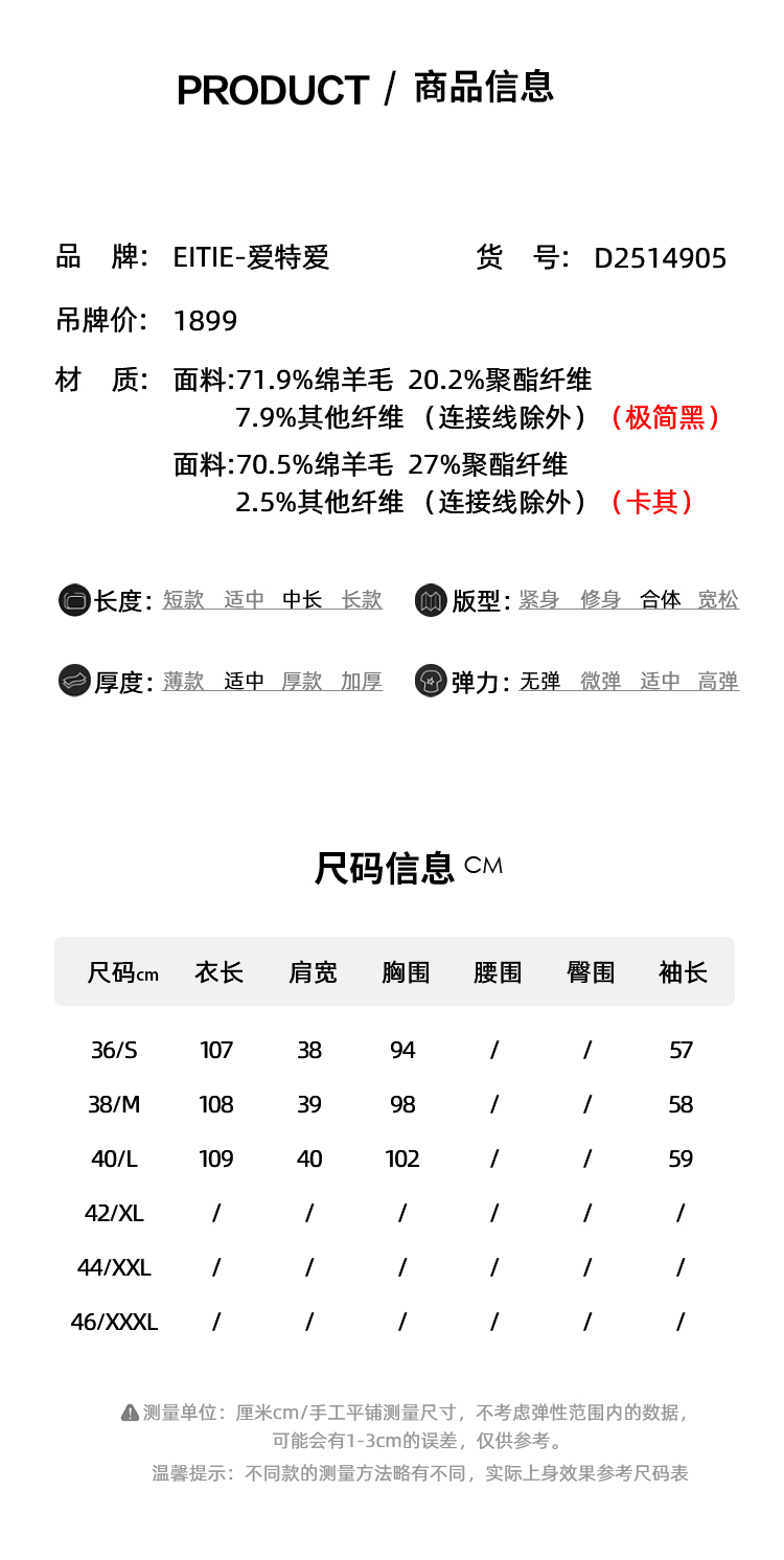 EITIE爱特爱气质时尚翻驳领腰带收腰长款羊毛呢大衣秋冬新D2514905
