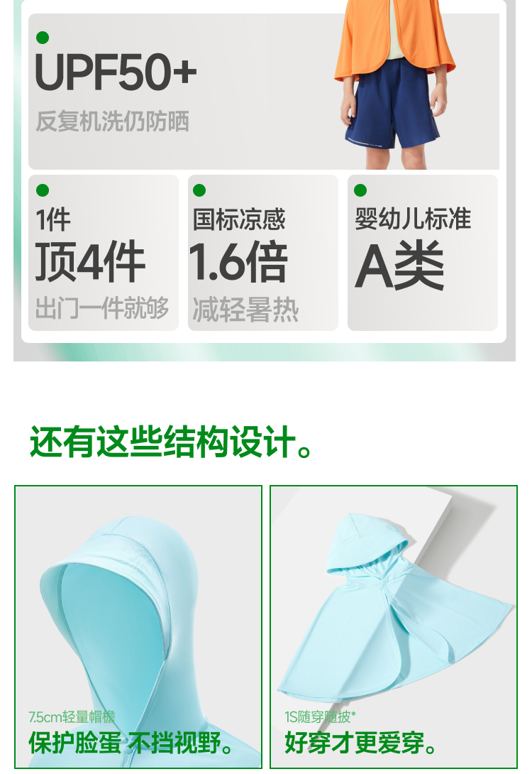 蕉下儿童披肩防晒衣AL11124宝宝防紫外线透气外套男女孩童防晒服