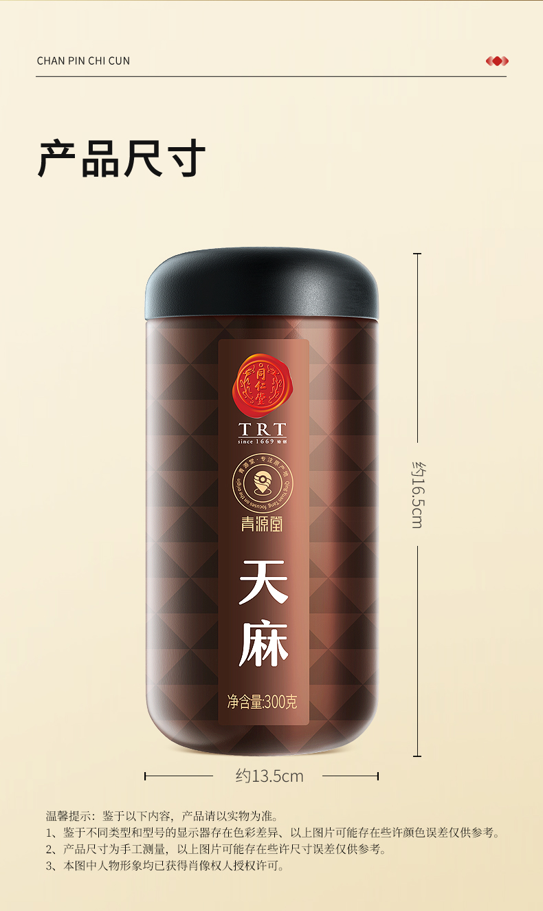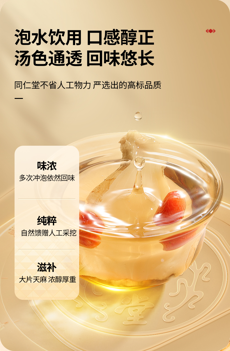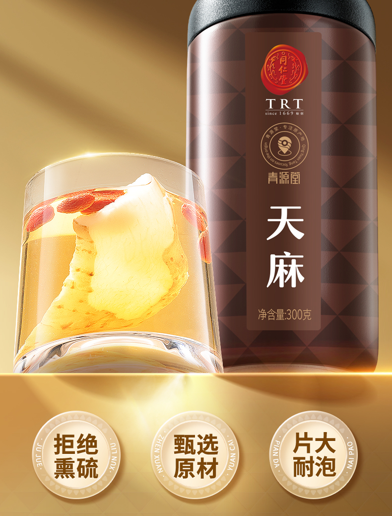 【正宗同仁堂品牌】北京同仁堂 青源堂 天麻片 300克(150克*2)云南原产 口感醇正 汤色清透 回味悠长SY