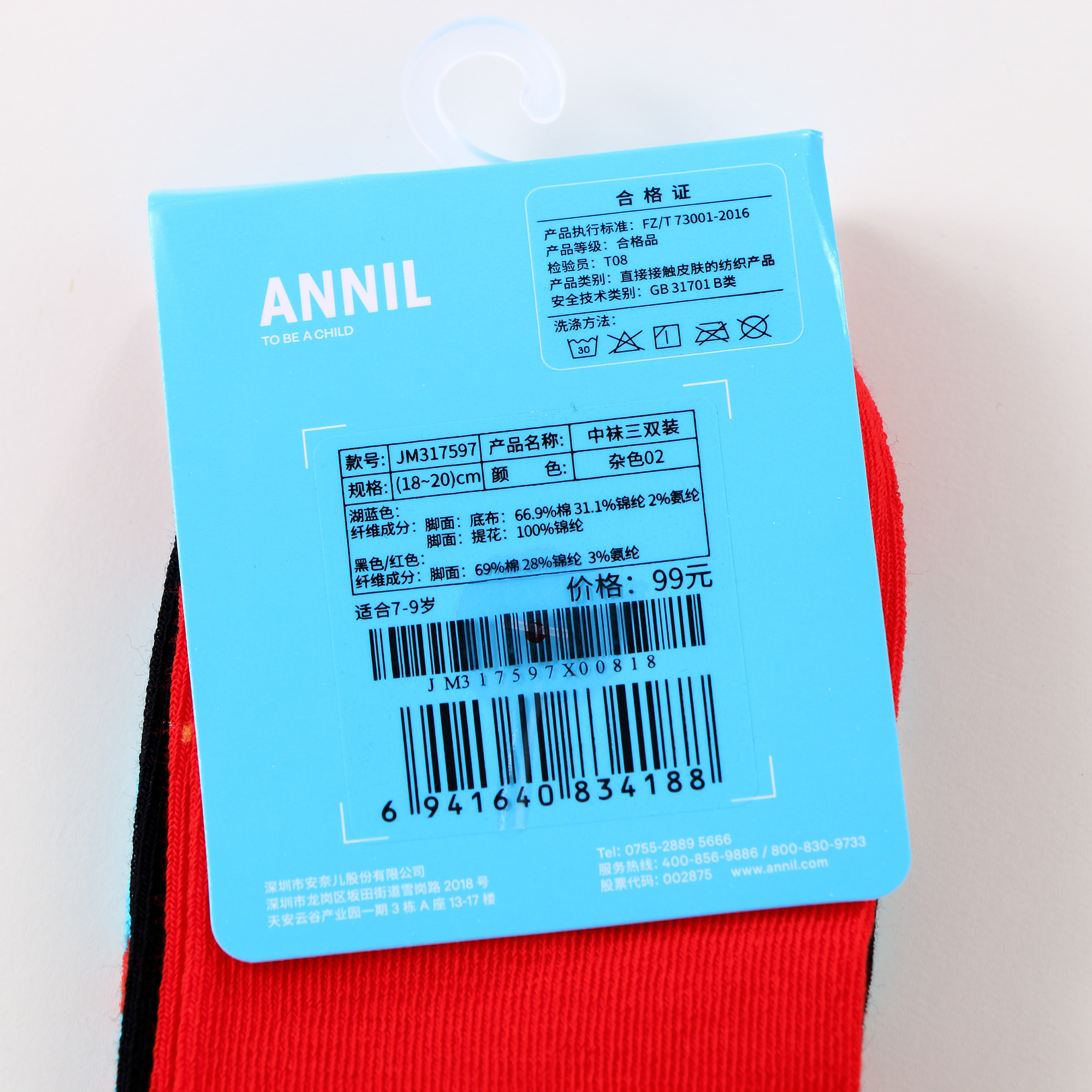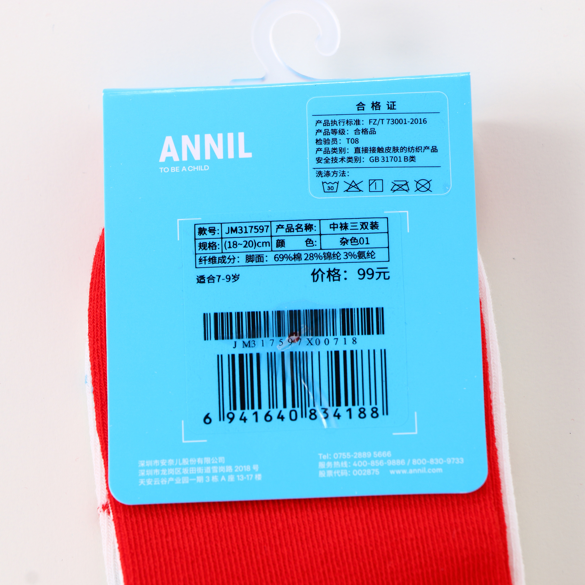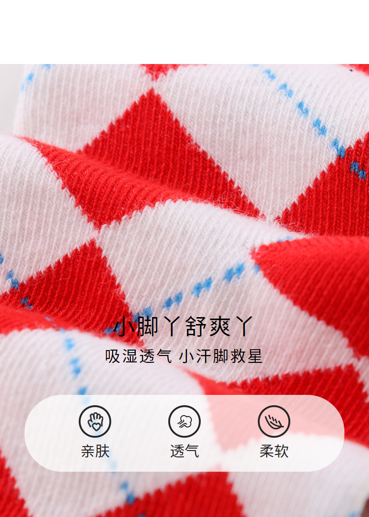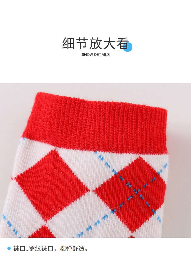 【实体店同款】【新年红】儿童袜子三双装春季新款男女童长筒袜宝宝透气吸汗童袜安奈儿童装JM317597