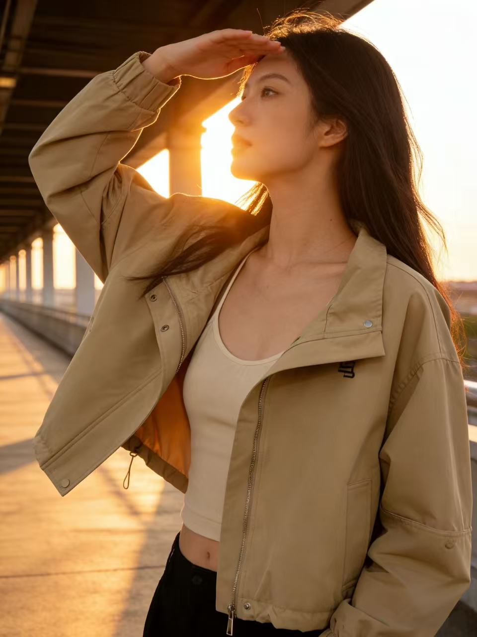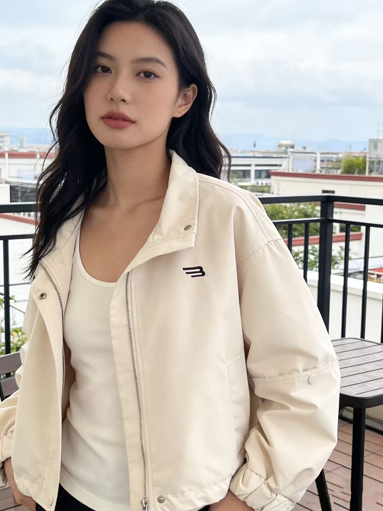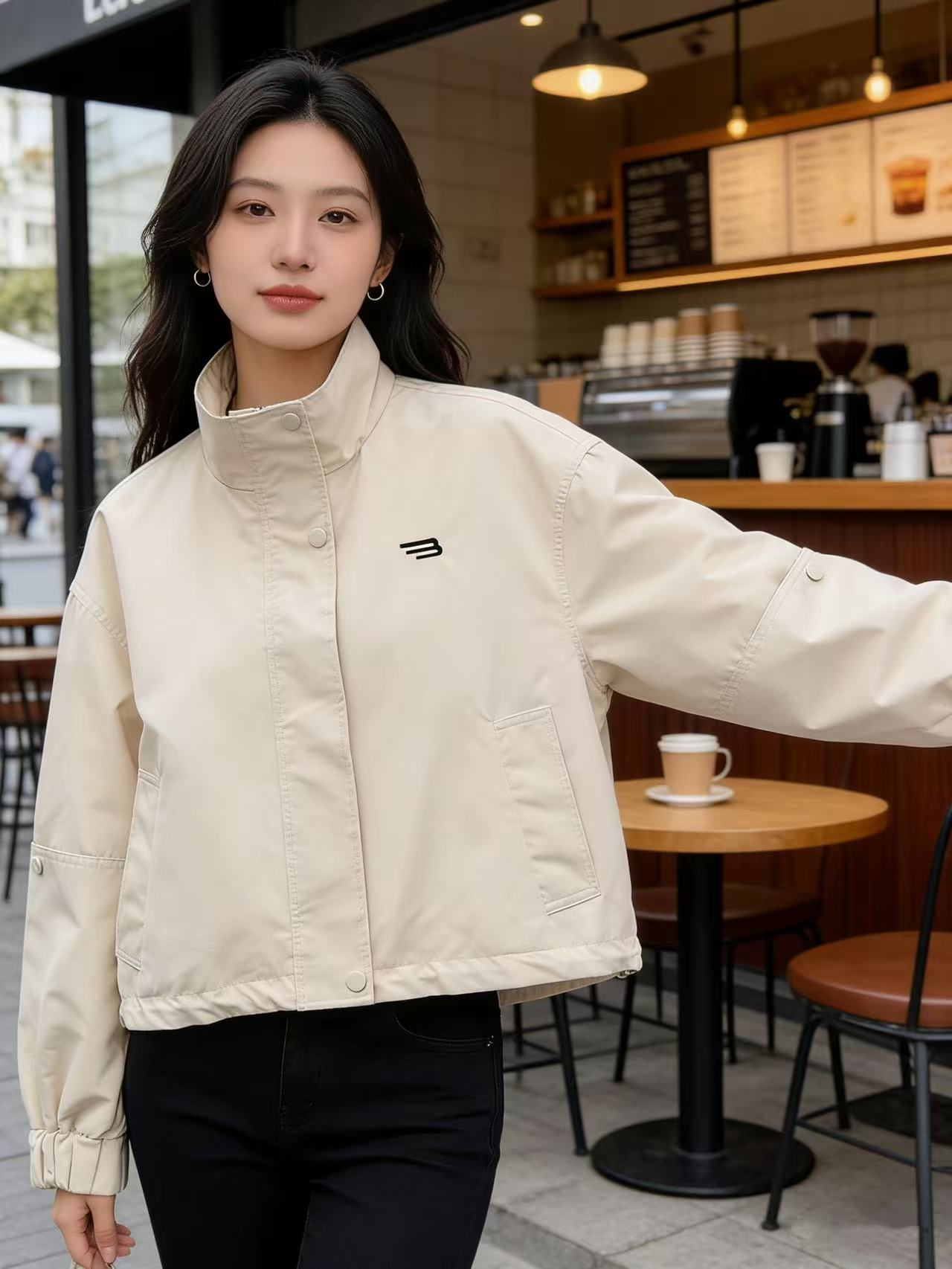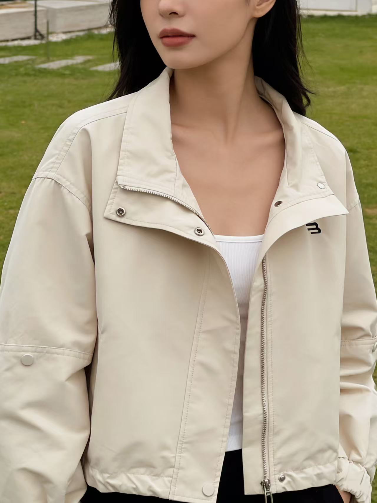 活动爆款【自营】衣周期~T06刺绣小标短款可抽绳风衣外套-喜出