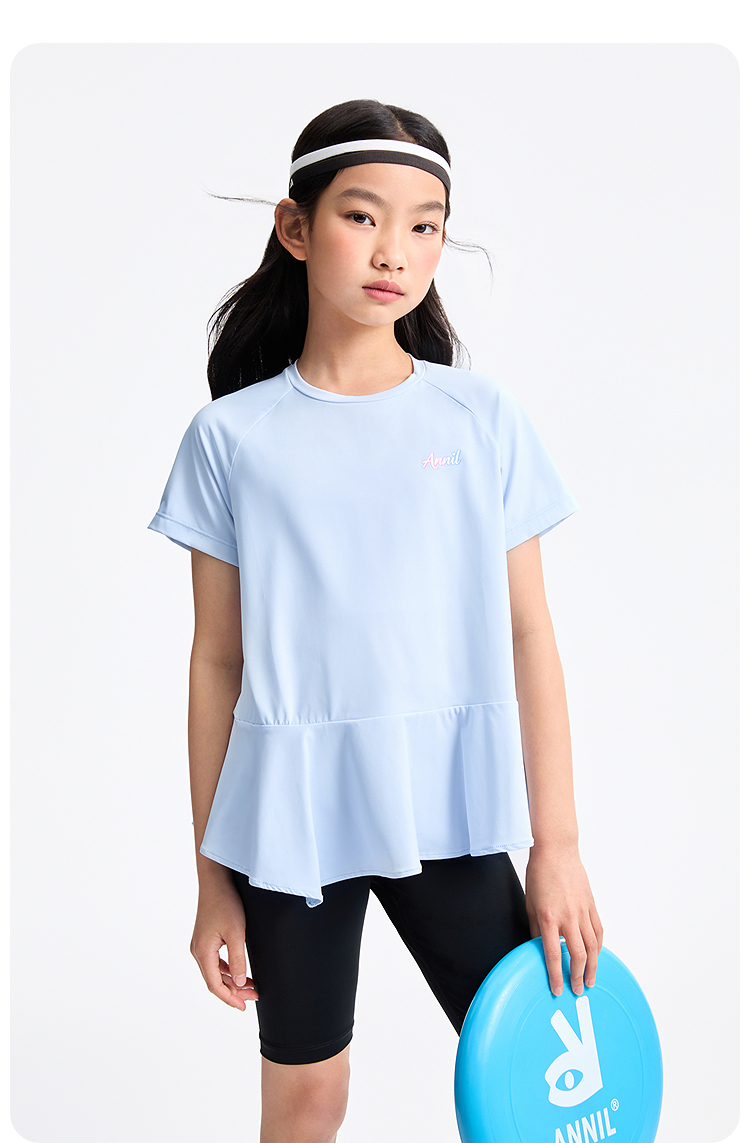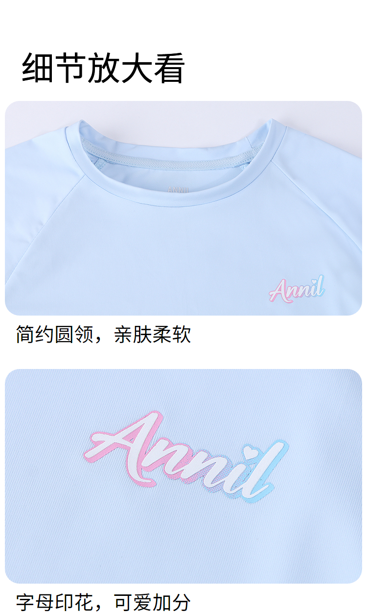 女童圆领短袖针织衫夏季新款安奈儿童装EG521135