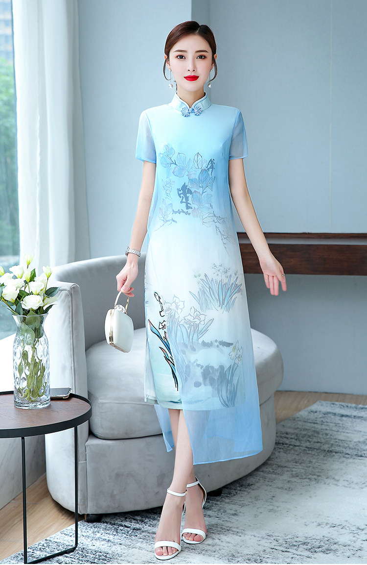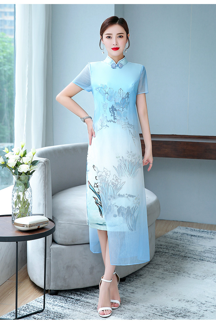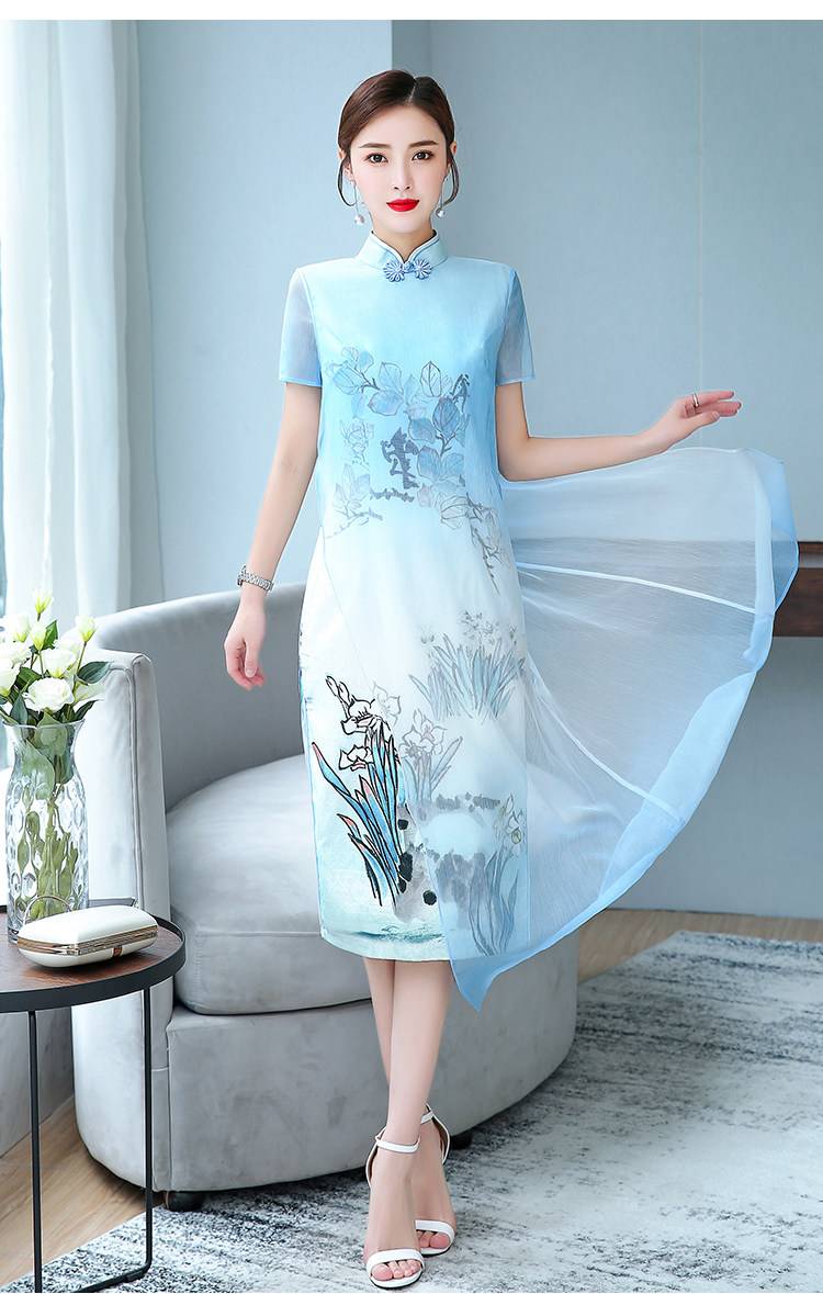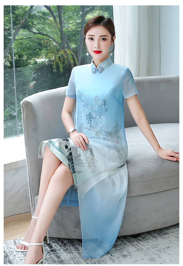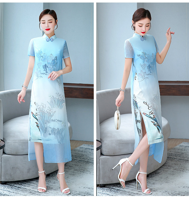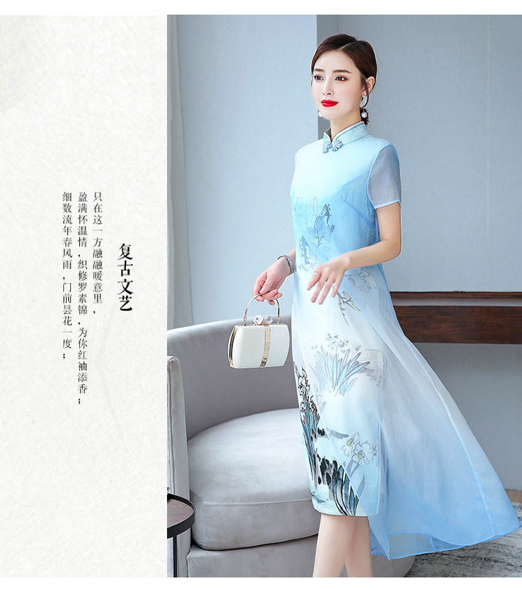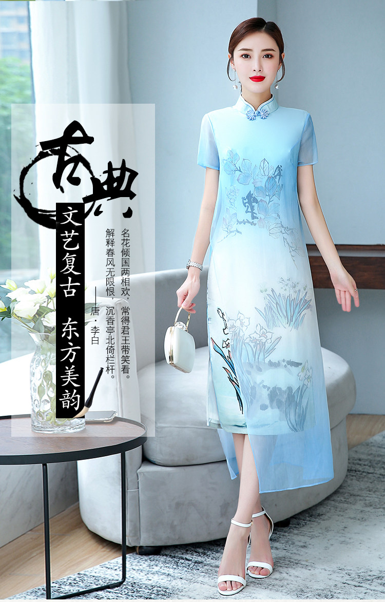 FF-TH9036新式中国风老上海旗袍复古夏雪纺连衣裙