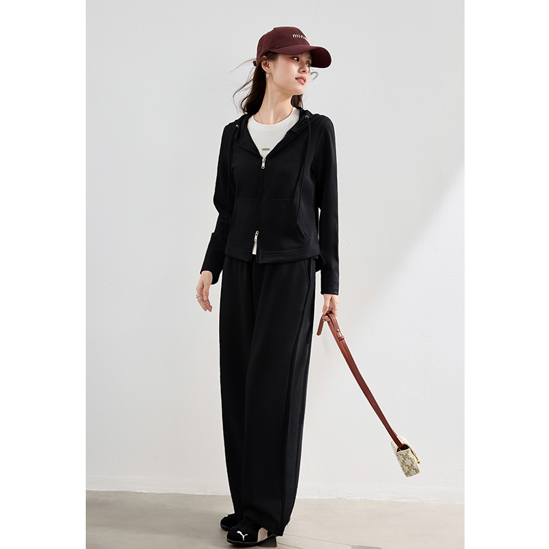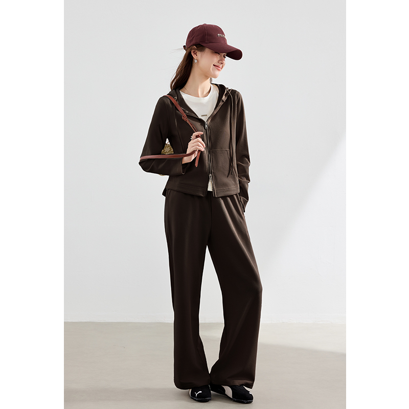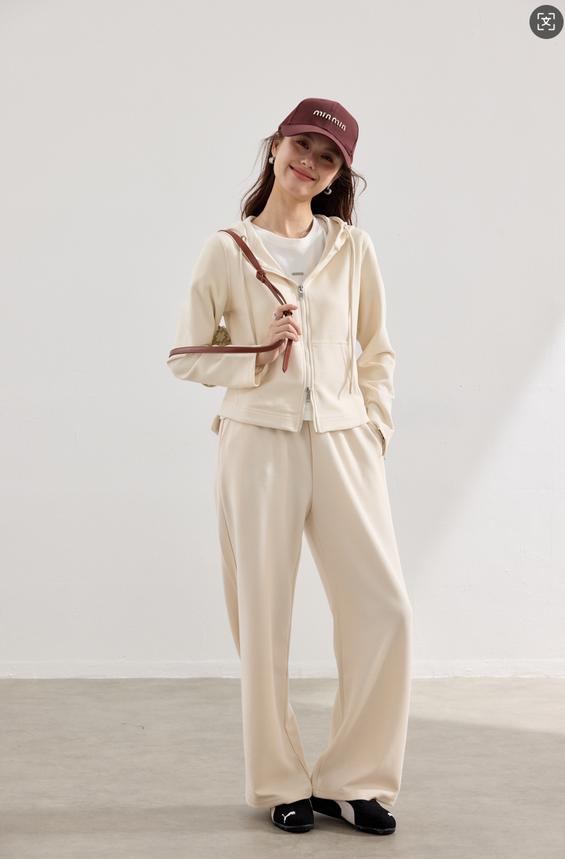珞炫/LOFTSHINE VICTORIA&VERA2025新款米色连帽拉链卫衣阔腿裤套装女休闲运动风两件套