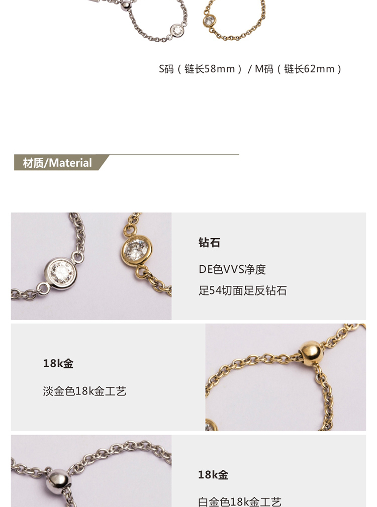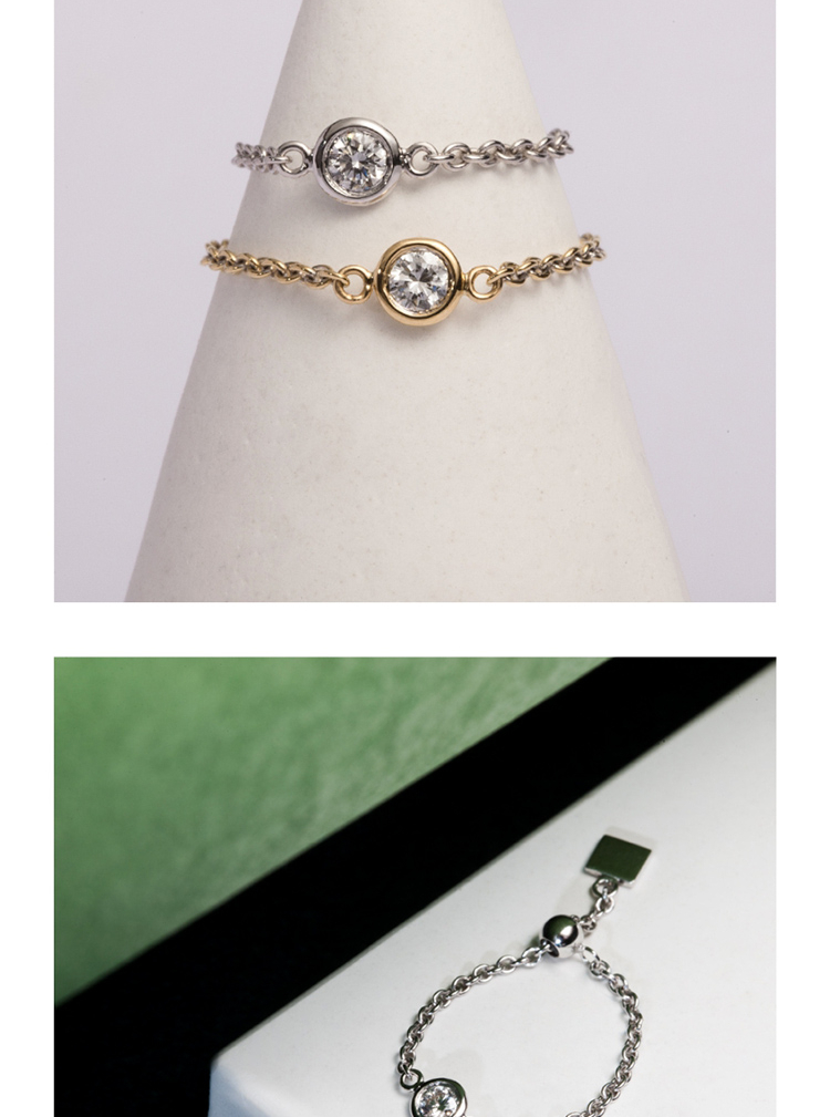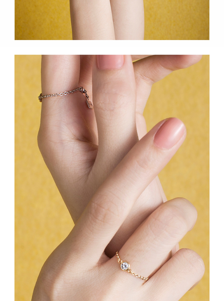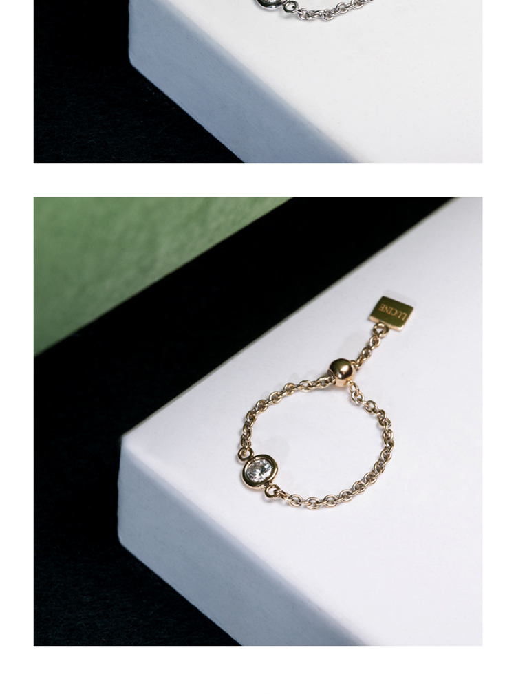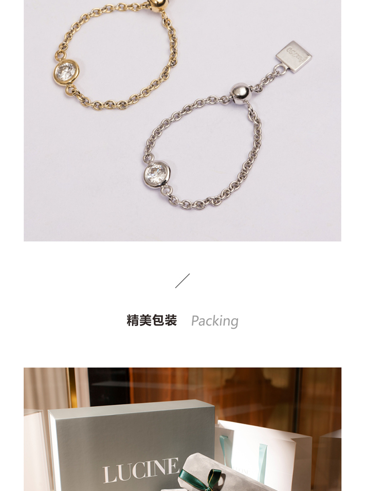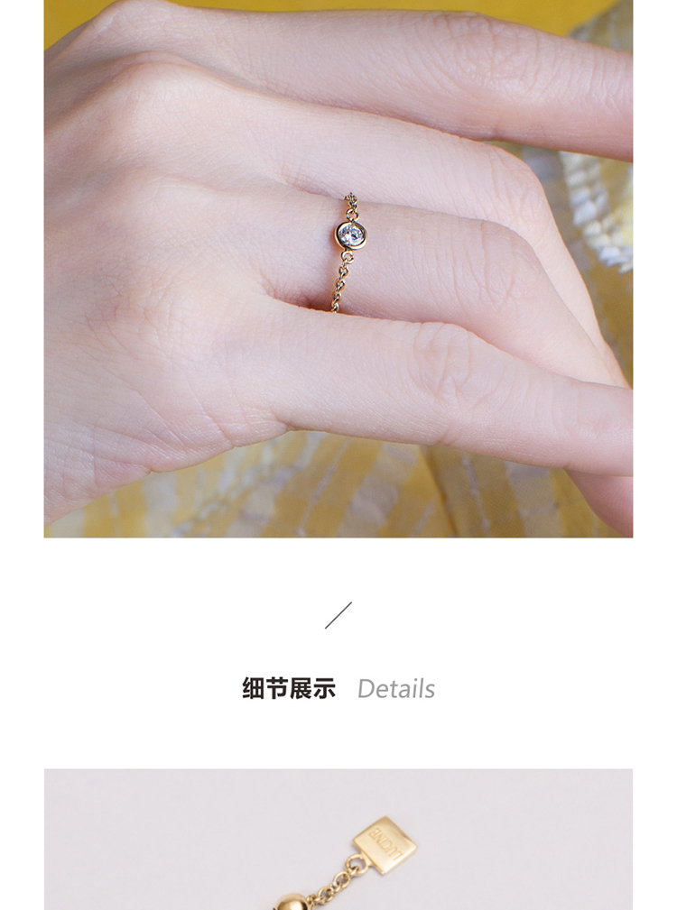 LUCINE 流光链戒18K黄金可调节钻石戒指520礼物宝藏女孩叠戴感