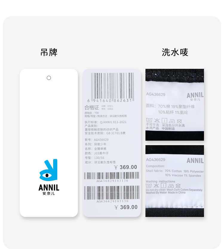 女童防褪色醇黑牛仔单裤安奈儿童装实体店同款AG436629