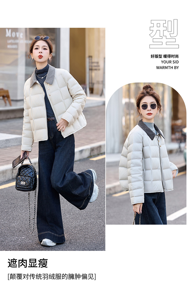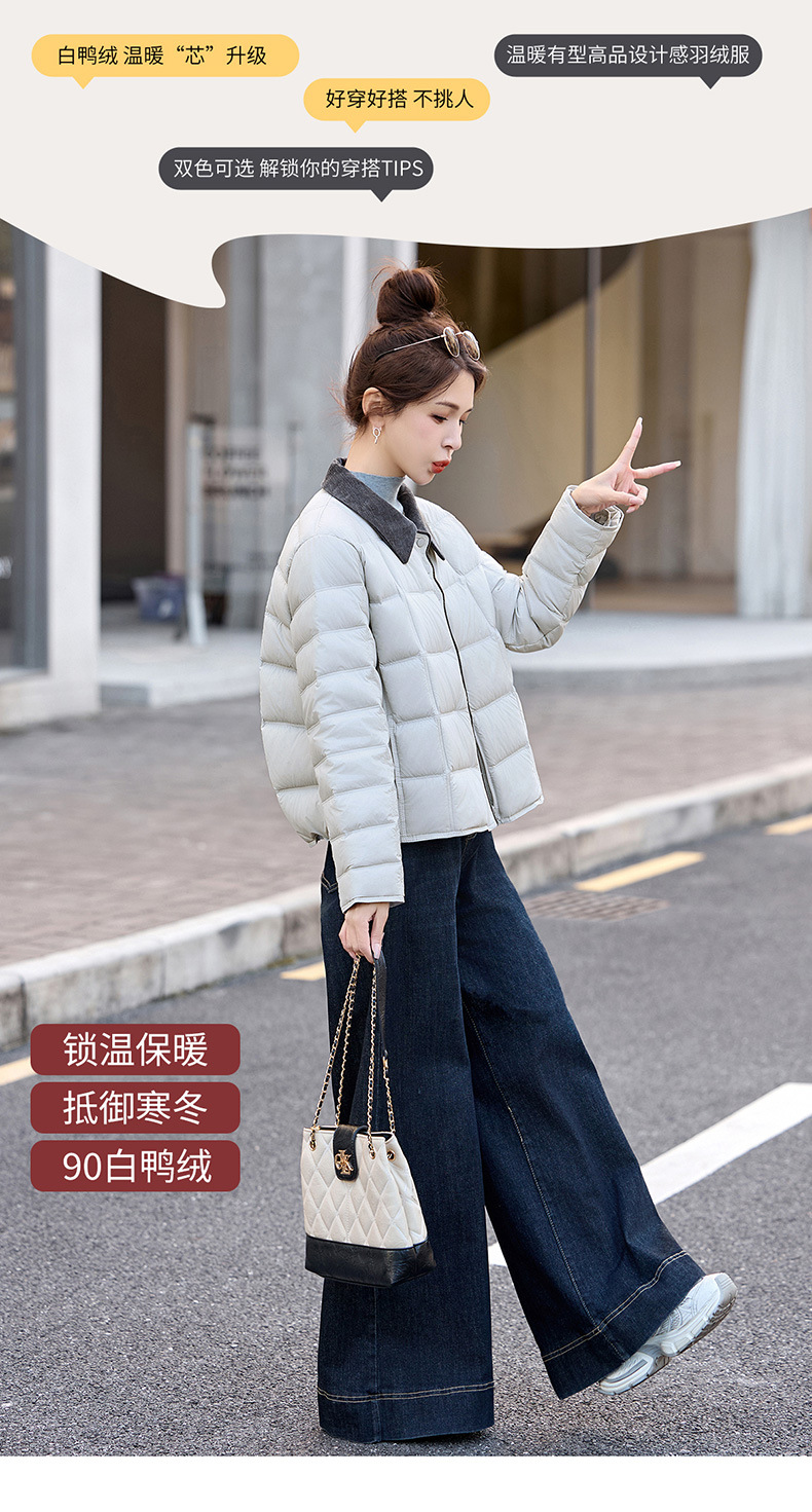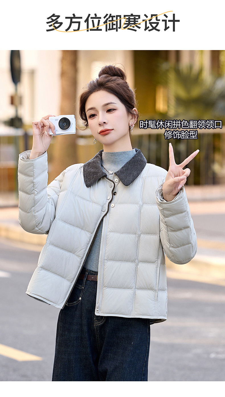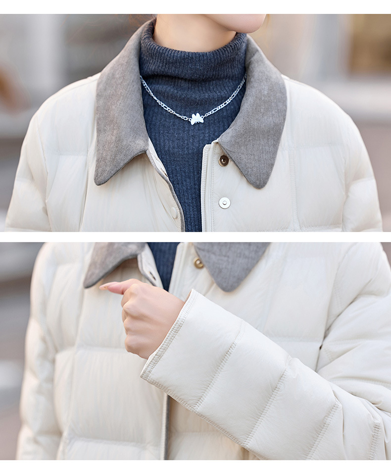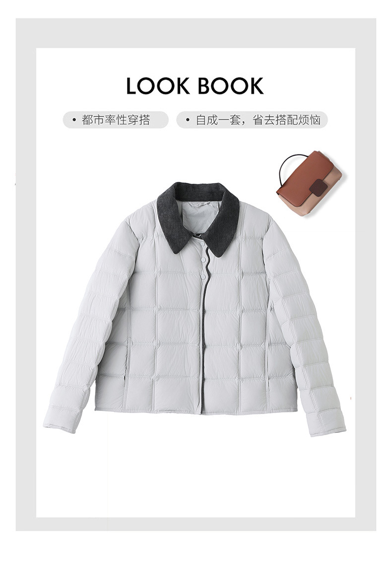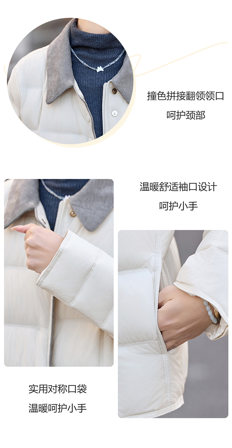HR MUZIC19简约风羽绒服时尚韩系拼接POLO领白鸭绒羽绒外套 商品图4