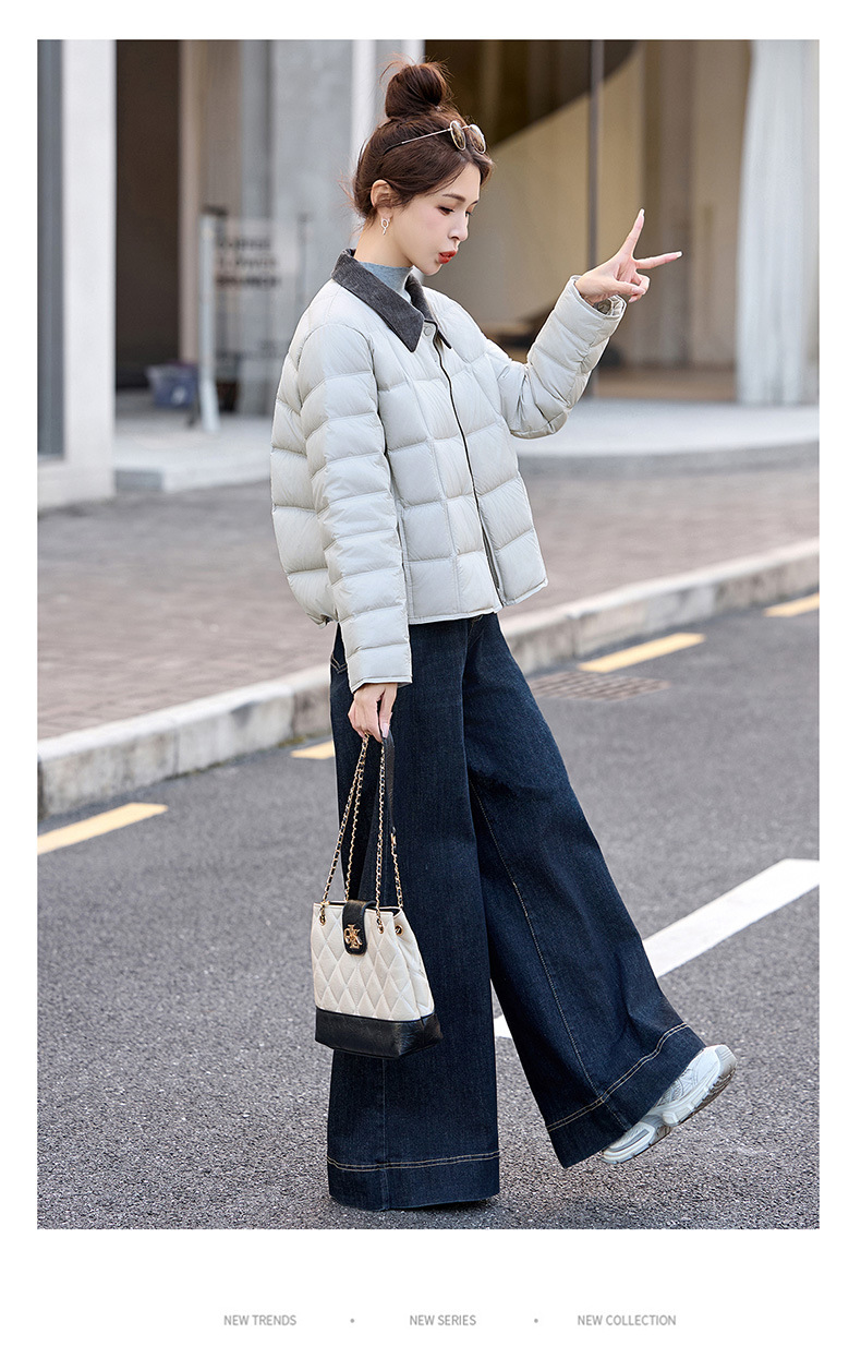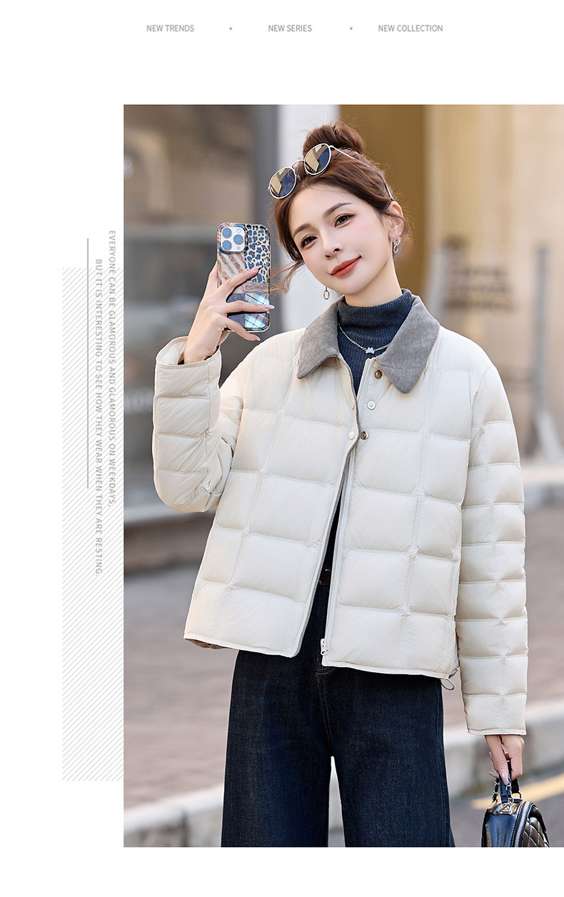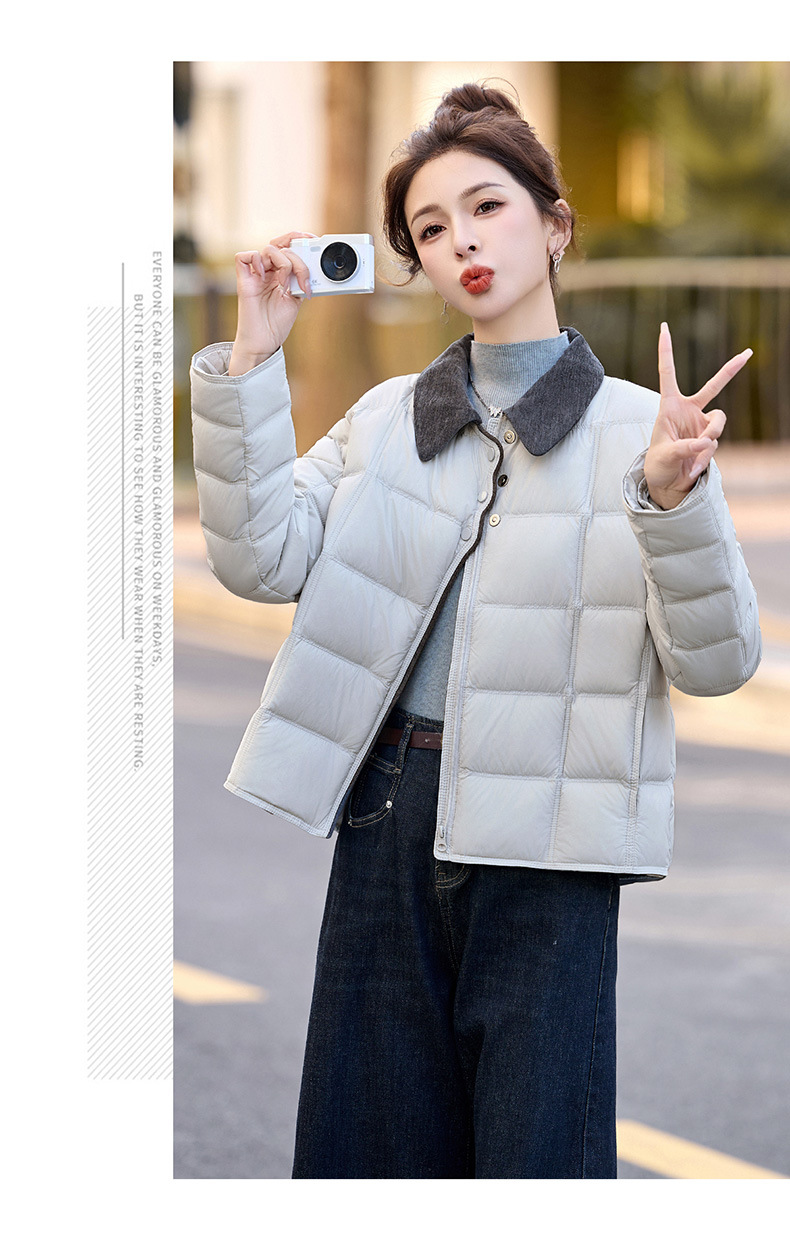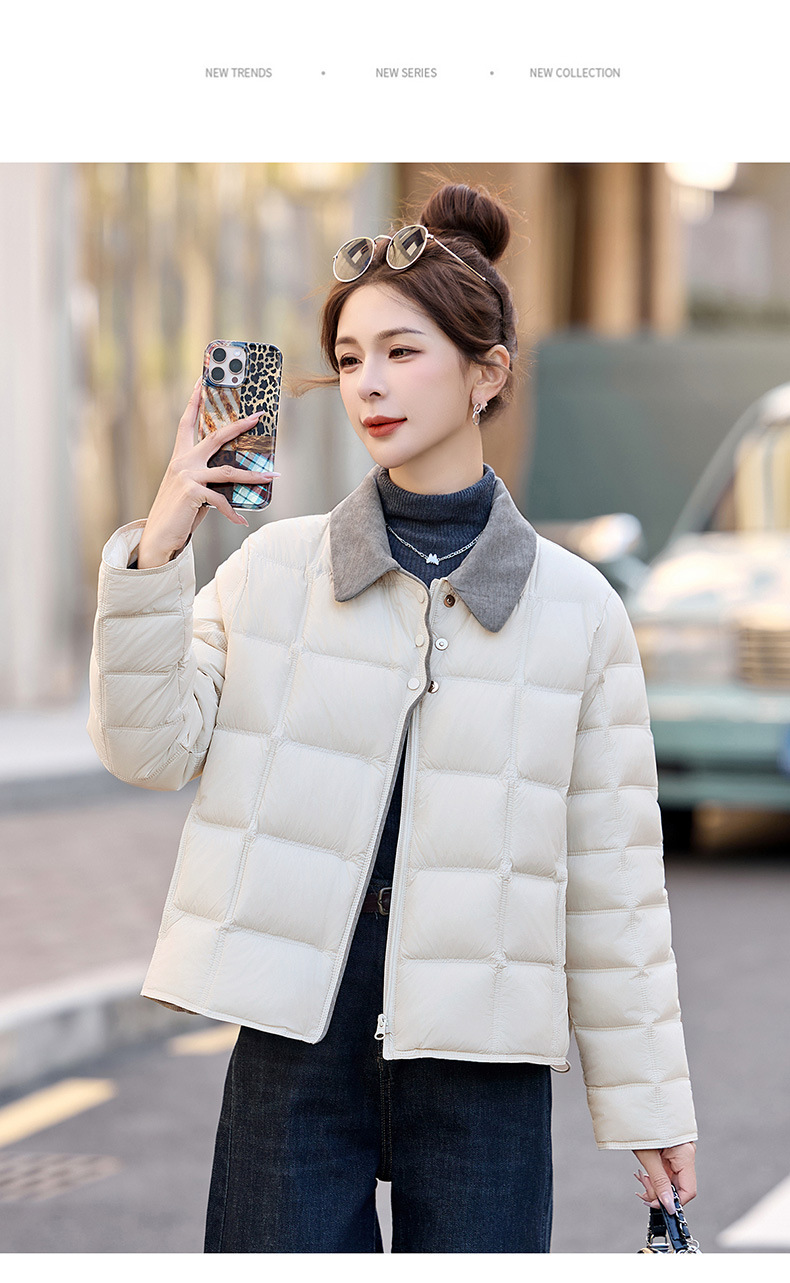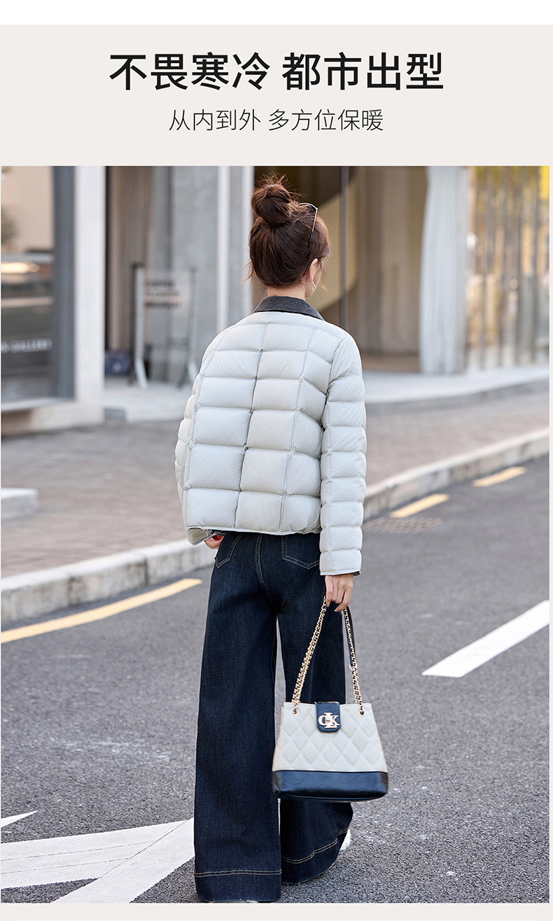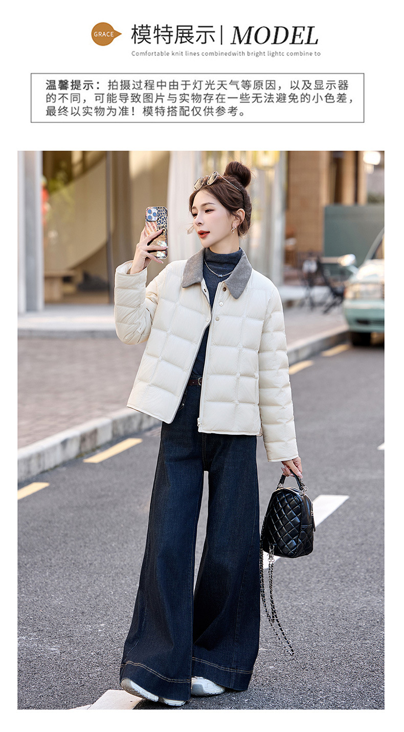 HR MUZIC19简约风羽绒服时尚韩系拼接POLO领白鸭绒羽绒外套 商品图4